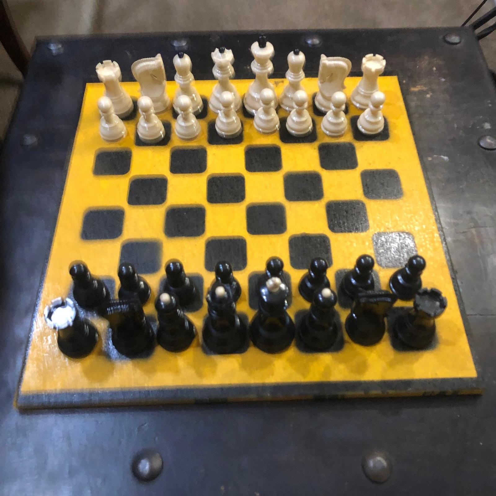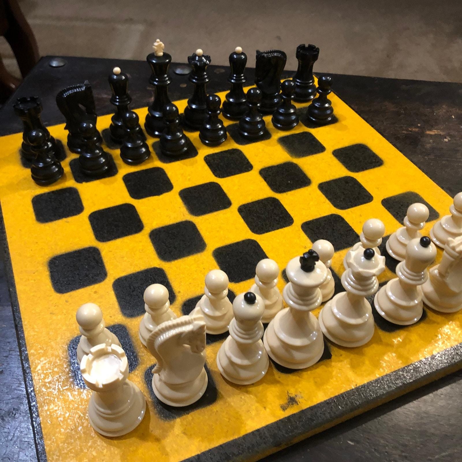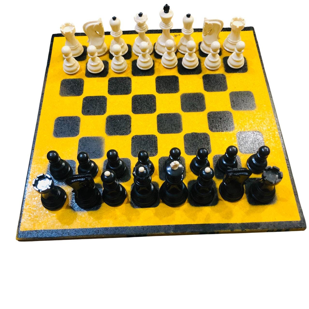Introducing our exclusive Handcrafted Painted Particle Board Chess Set, meticulously designed with precision and care. Measuring 16 inches by 16 inches, this chess set features a beautifully painted piece of particle board that doubles as a work of art. Each set is a unique, one-of-a-kind creation, crafted by hand to ensure that no two sets are alike. Elevate your gaming experience with this exceptional chess set that combines vibrant design with the touch of artisan craftsmanship.