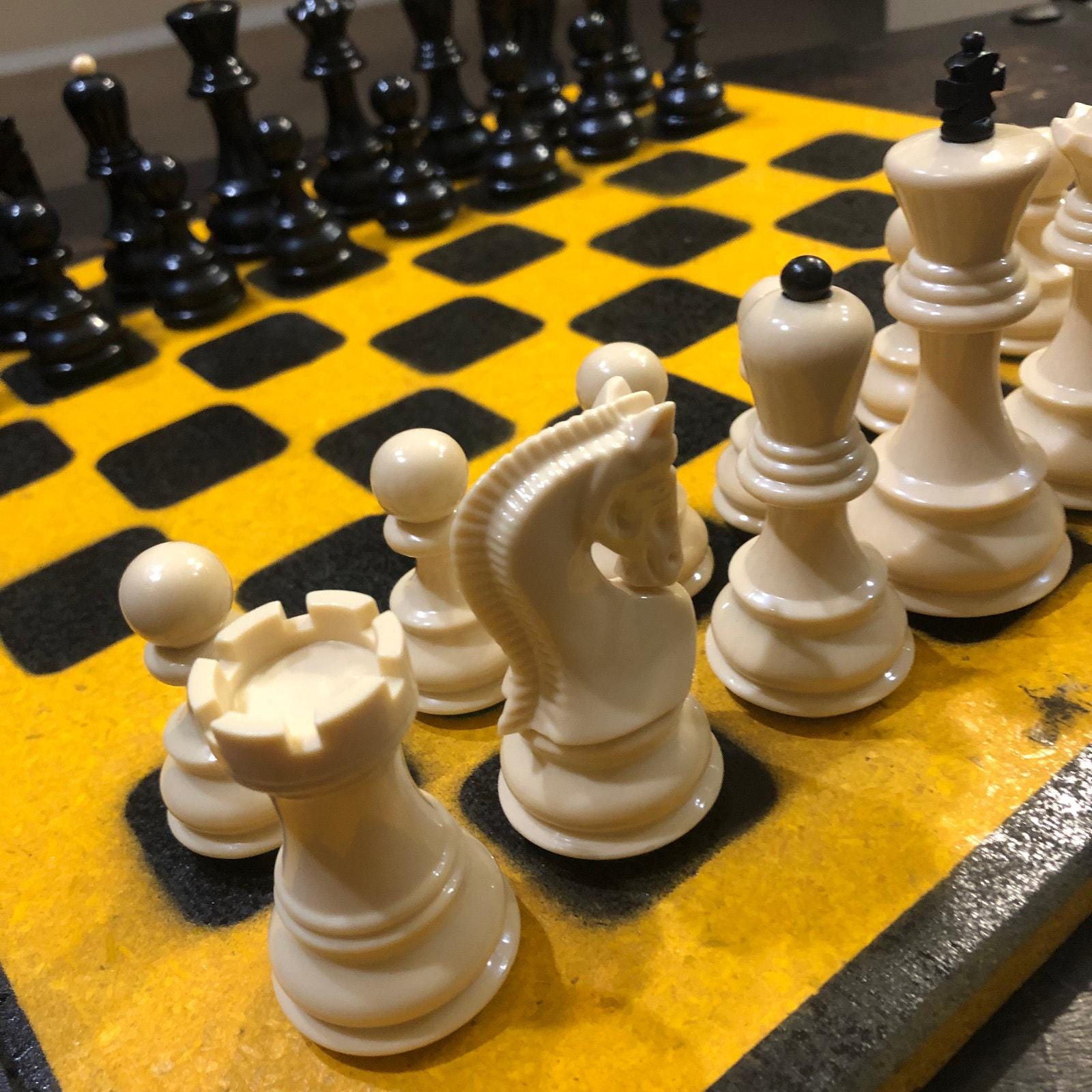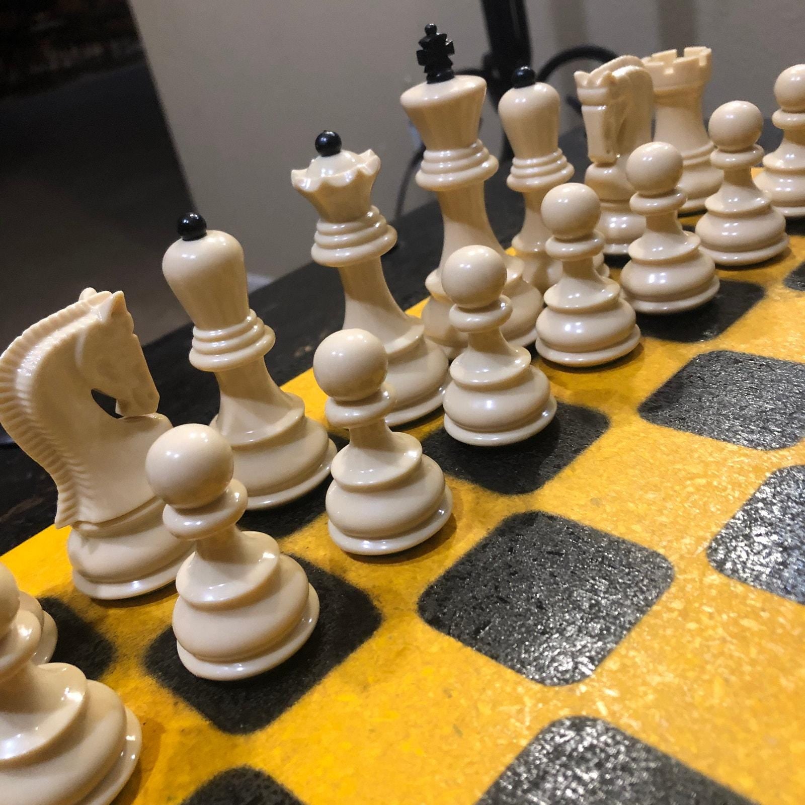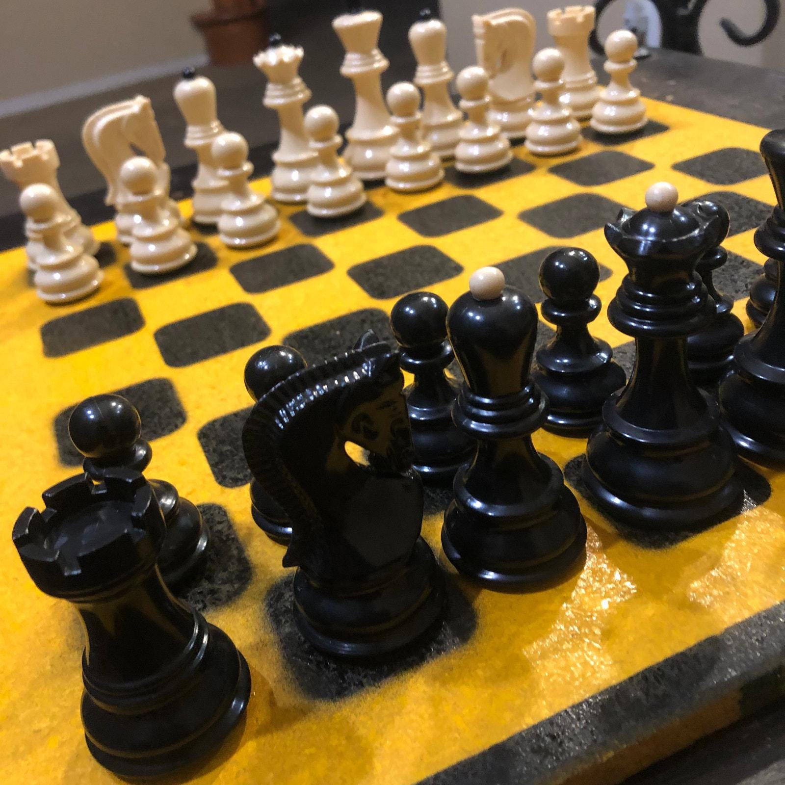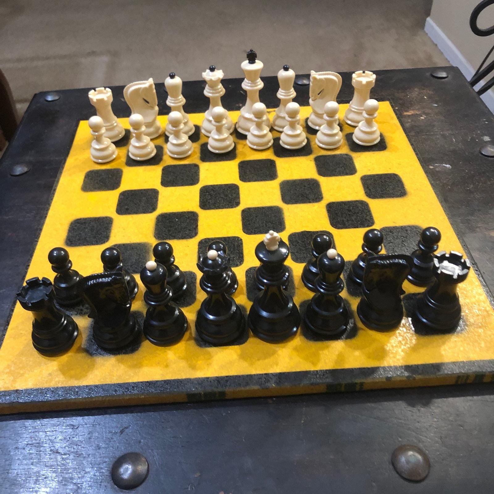 Introducing our exclusive Handcrafted Painted Particle Board Chess Set, meticulously designed with precision and care. Measuring 16 inches by 16 inches, this chess set features a beautifully painted piece of particle board that doubles as a work of art. Each set is a unique, one-of-a-kind creation, crafted by hand to ensure that no two sets are alike. Elevate your gaming experience with this exceptional chess set that combines vibrant design with the touch of artisan craftsmanship.