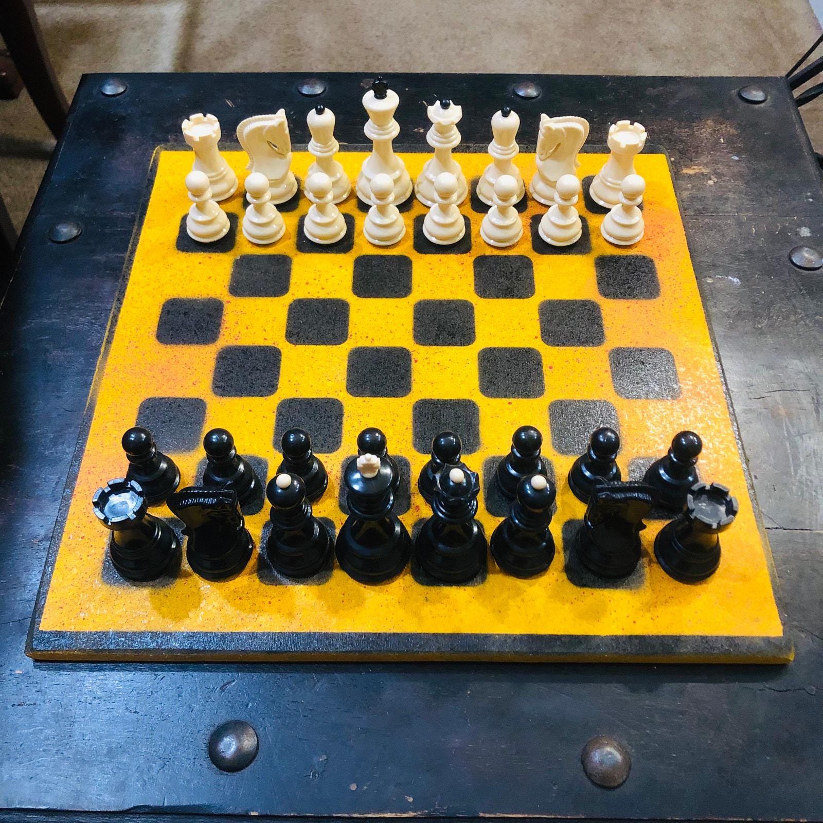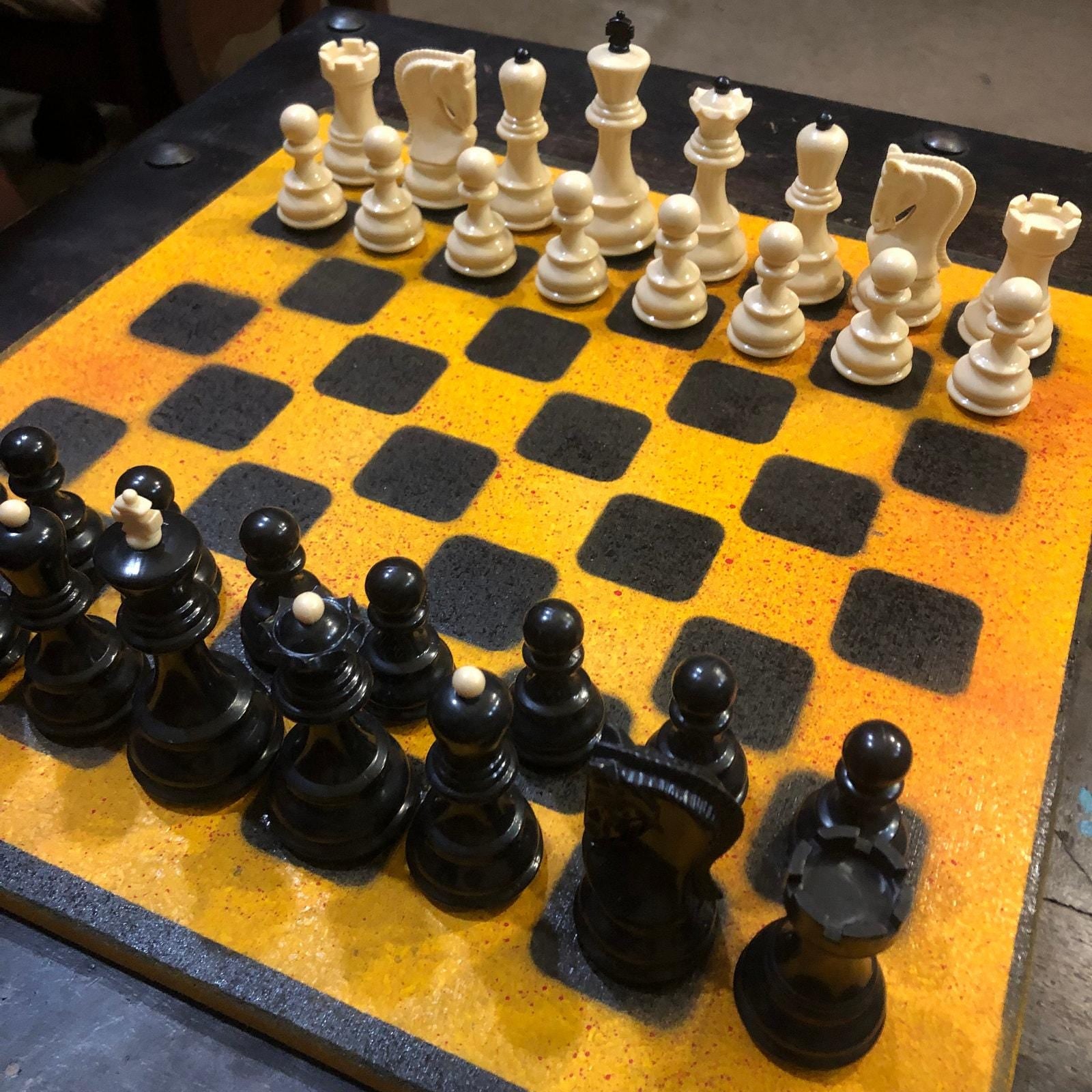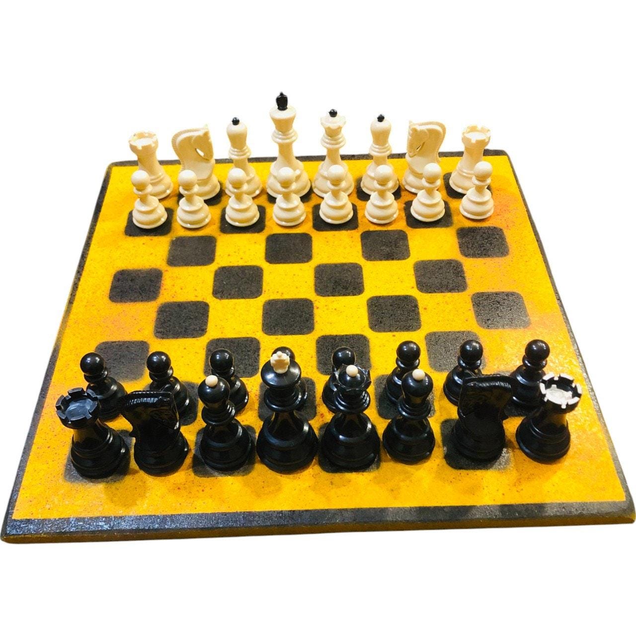 Introducing our exclusive Handcrafted Painted Particle Board Chess Set, meticulously designed with precision and care. Measuring 16 inches by 16 inches, this chess set features a beautifully painted piece of particle board that doubles as a work of art. Each set is a unique, one-of-a-kind creation, crafted by hand to ensure that no two sets are alike. Elevate your gaming experience with this exceptional chess set that combines vibrant design with the touch of artisan craftsmanship.