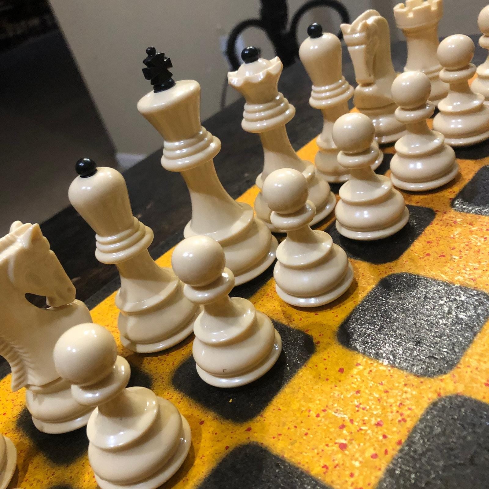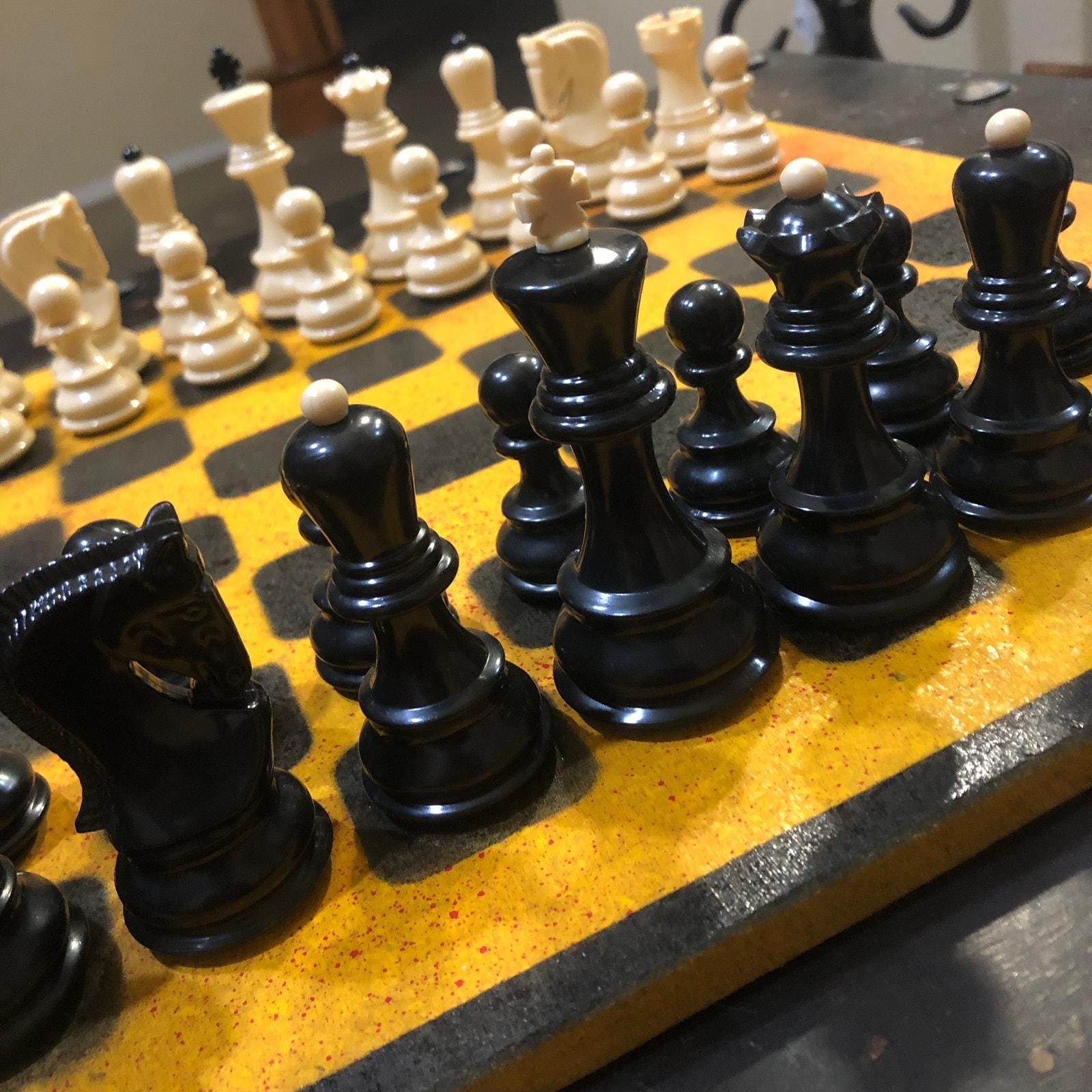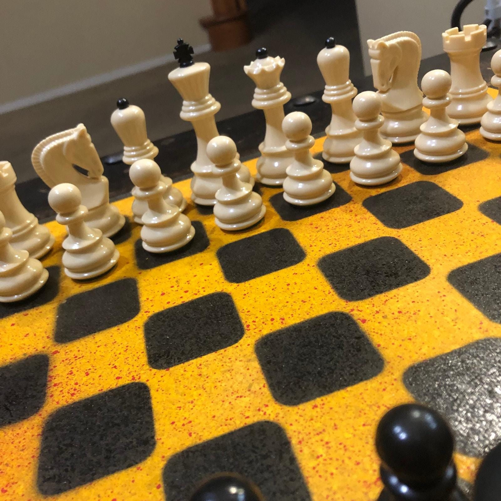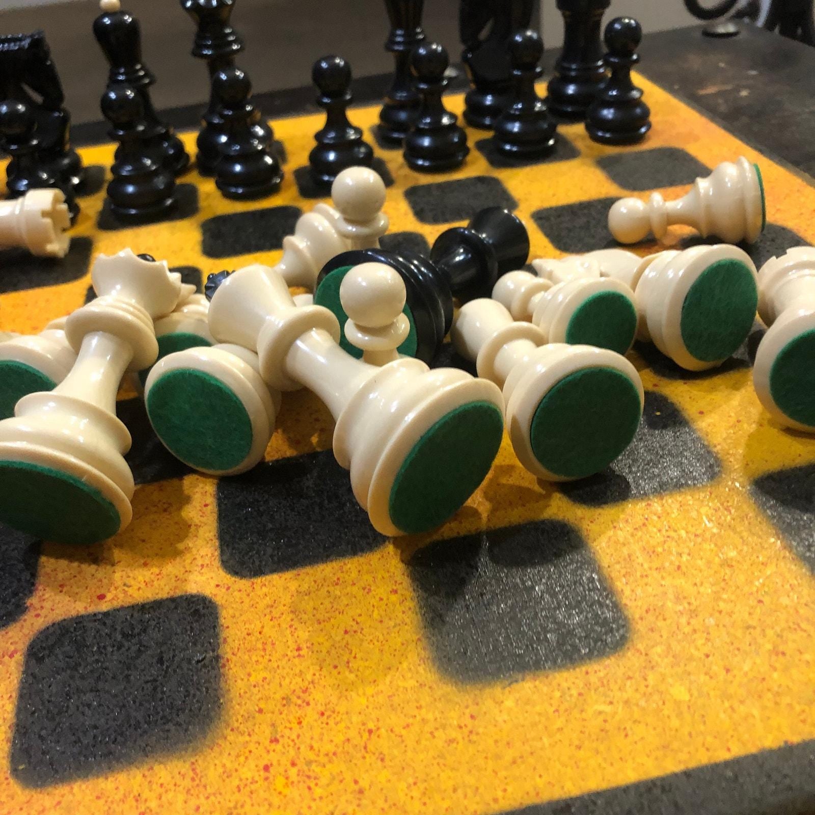 Introducing our exclusive Handcrafted Painted Particle Board Chess Set, meticulously designed with precision and care. Measuring 16 inches by 16 inches, this chess set features a beautifully painted piece of particle board that doubles as a work of art. Each set is a unique, one-of-a-kind creation, crafted by hand to ensure that no two sets are alike. Elevate your gaming experience with this exceptional chess set that combines vibrant design with the touch of artisan craftsmanship.
