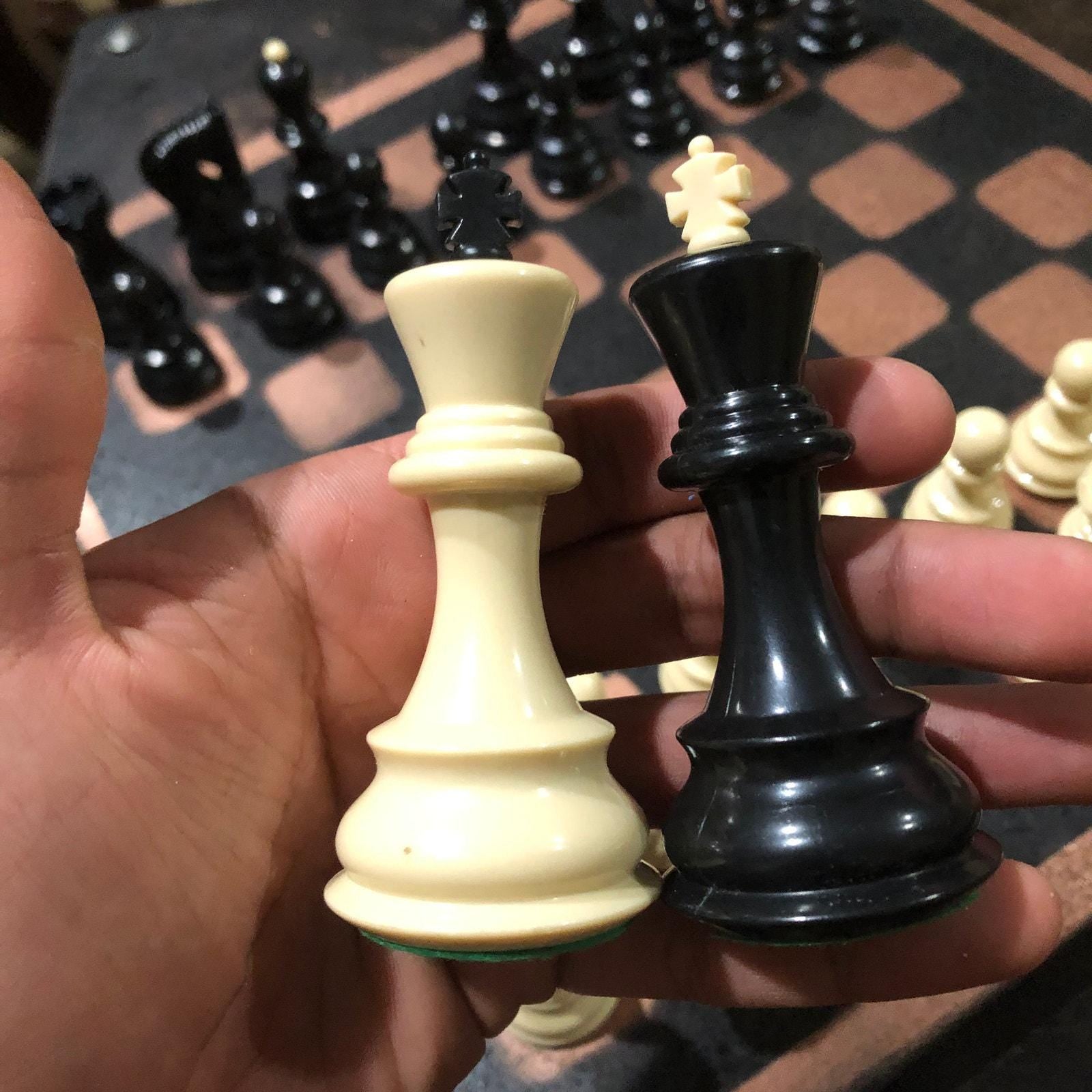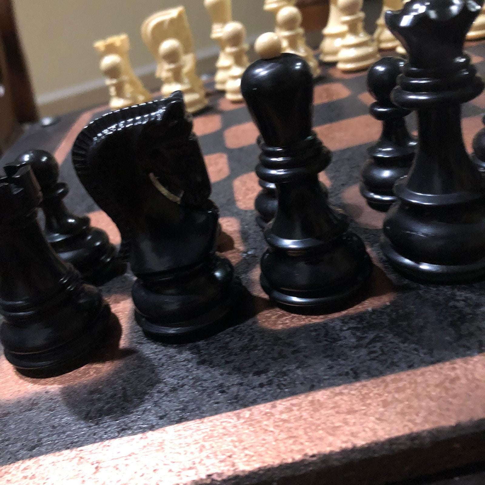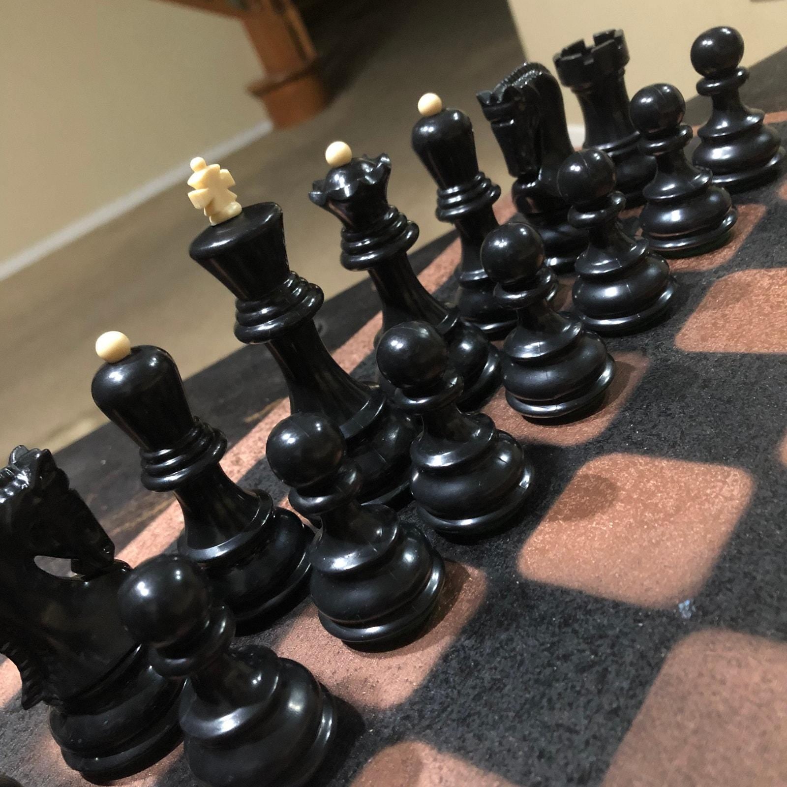 Large Painted Chess Set - Black & Bronze