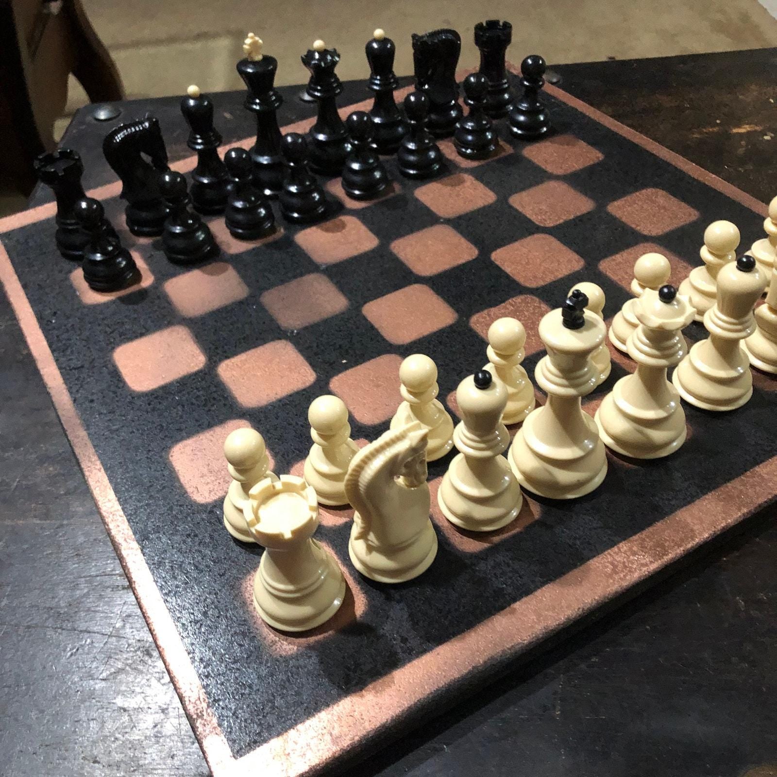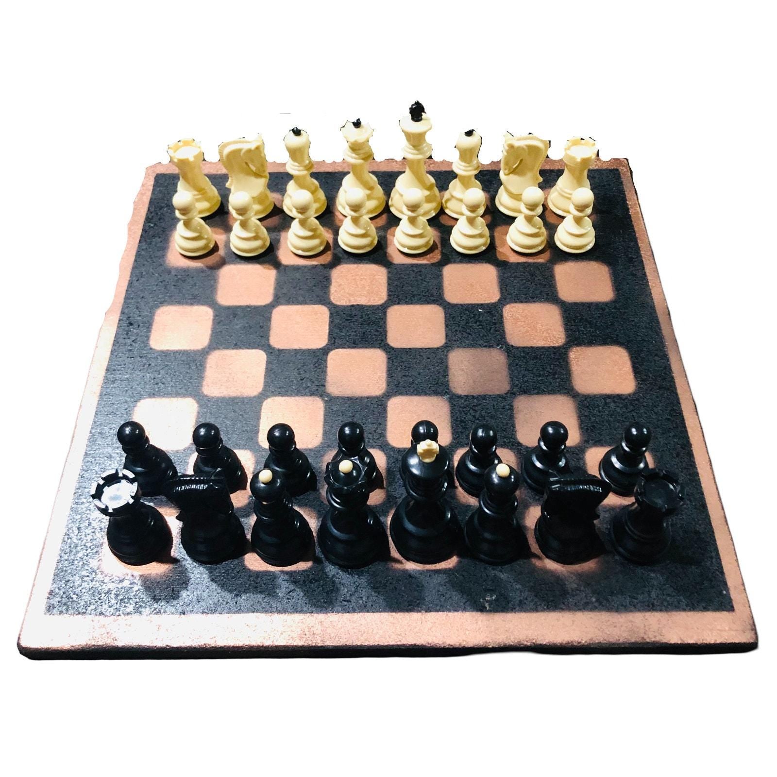 Introducing our exclusive Handcrafted Painted Particle Board Chess Set, meticulously designed with precision and care. Measuring 16 inches by 16 inches, this chess set features a beautifully painted piece of particle board that doubles as a work of art. Each set is a unique, one-of-a-kind creation, crafted by hand to ensure that no two sets are alike. Elevate your gaming experience with this exceptional chess set that combines vibrant design with the touch of artisan craftsmanship.