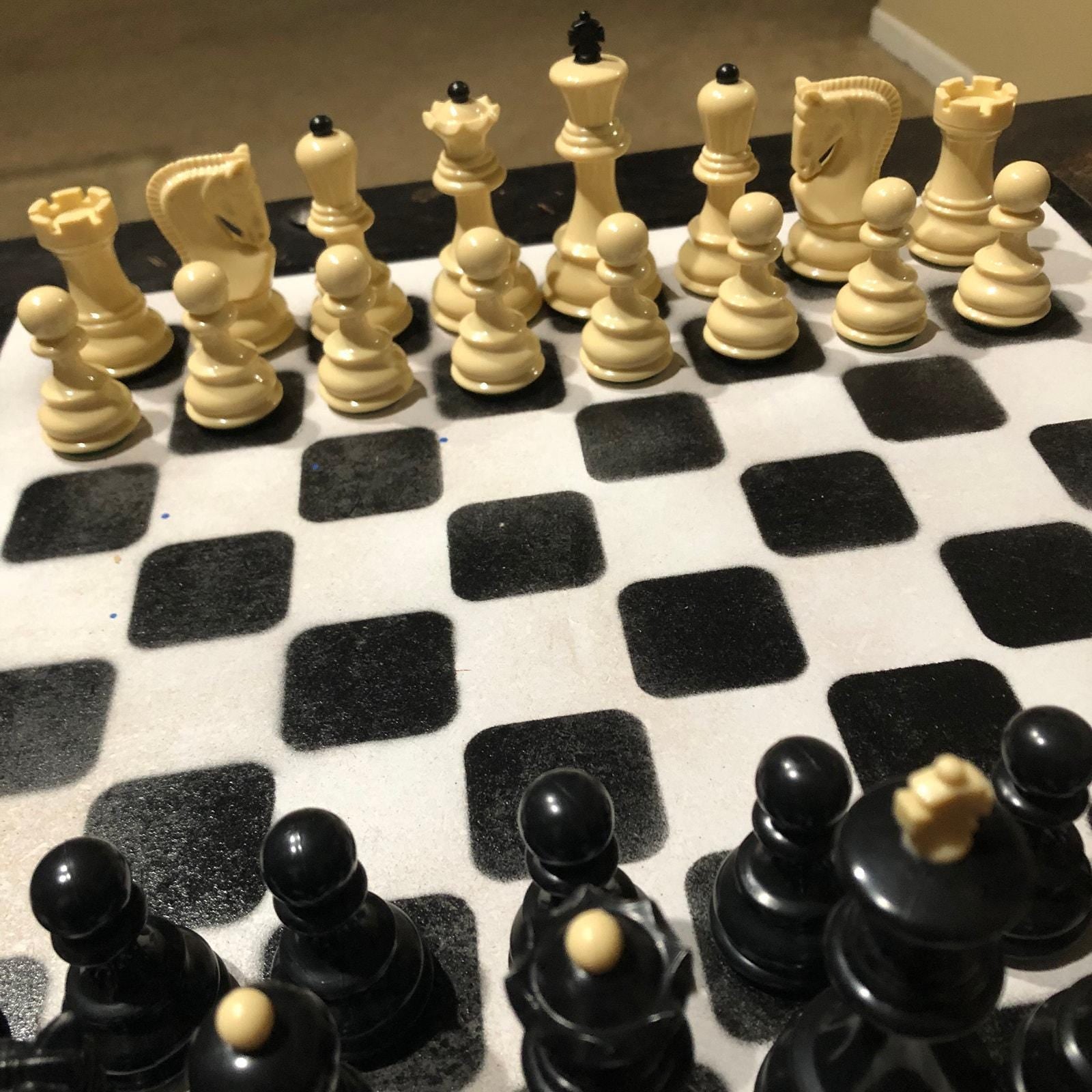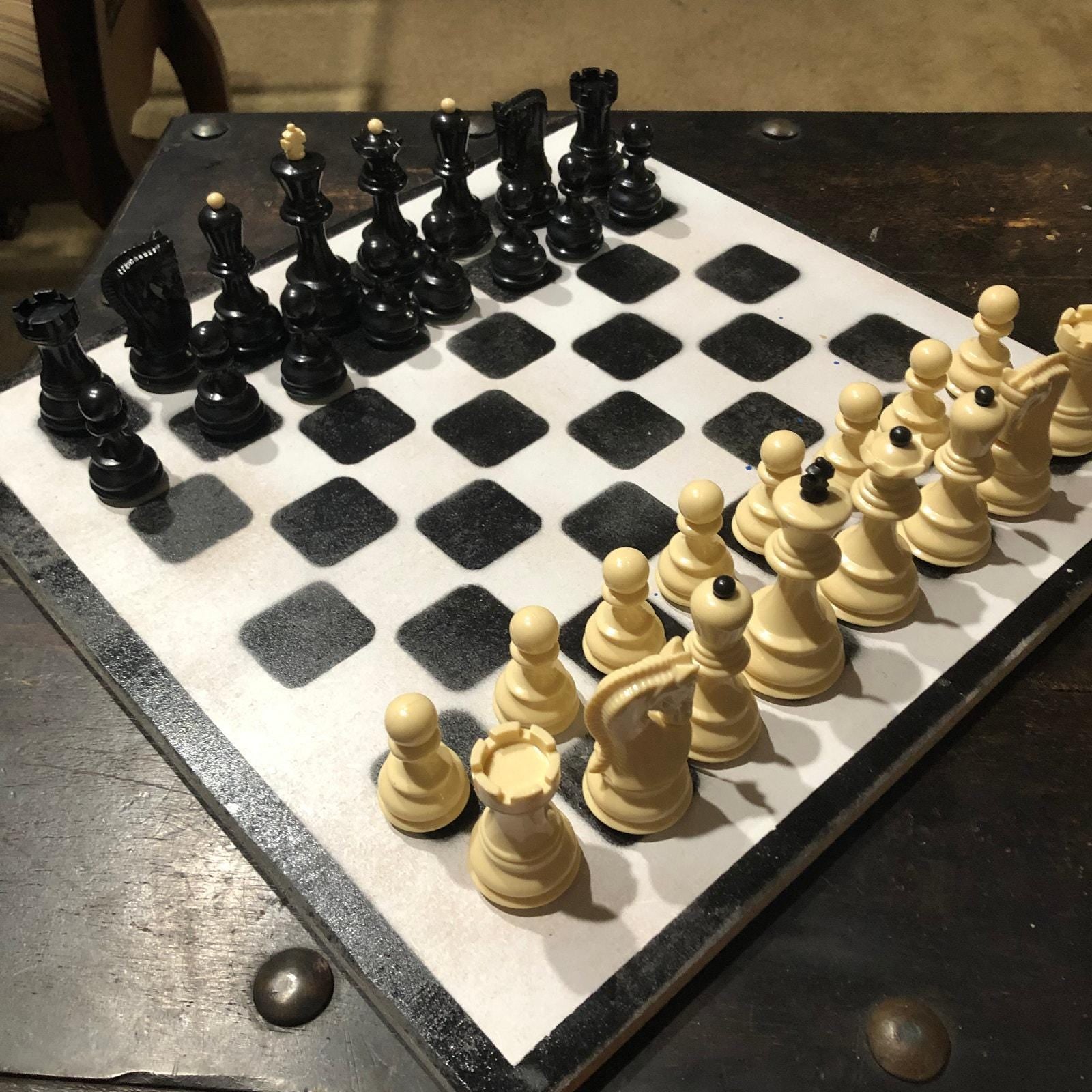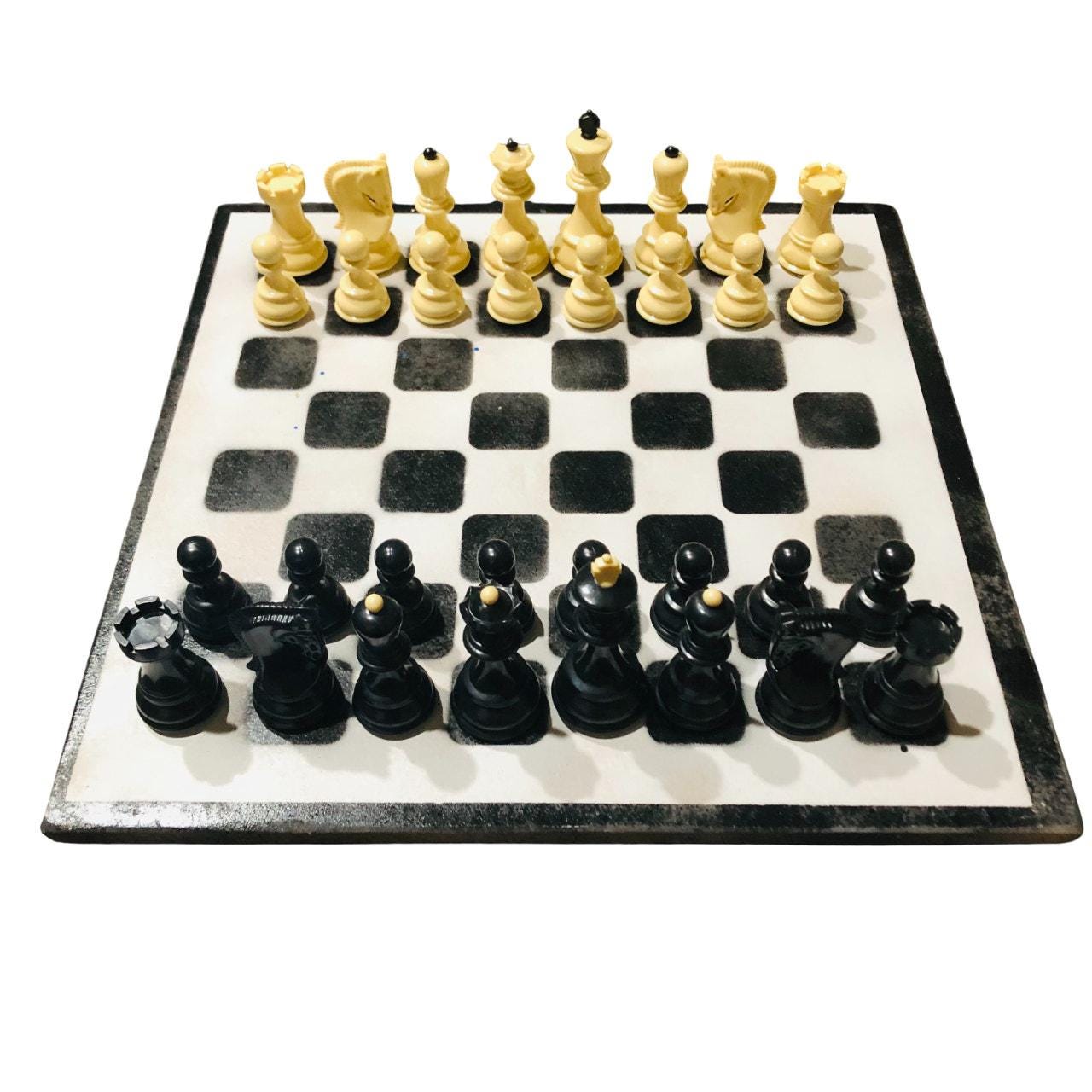 Introducing our exclusive Handcrafted Painted Particle Board Chess Set, meticulously designed with precision and care. Measuring 16 inches by 16 inches, this chess set features a beautifully painted piece of particle board that doubles as a work of art. Each set is a unique, one-of-a-kind creation, crafted by hand to ensure that no two sets are alike. Elevate your gaming experience with this exceptional chess set that combines vibrant design with the touch of artisan craftsmanship.