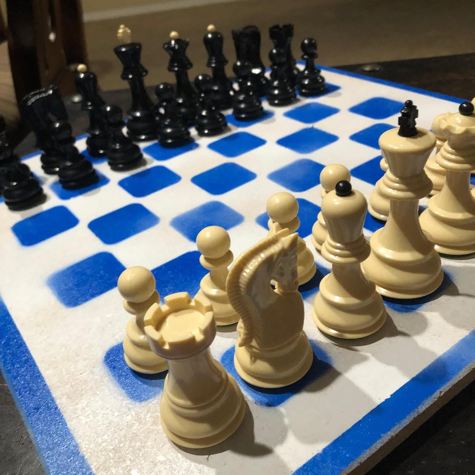 Introducing our exclusive Handcrafted Painted Particle Board Chess Set, meticulously designed with precision and care. Measuring 16 inches by 16 inches, this chess set features a beautifully painted piece of particle board that doubles as a work of art. Each set is a unique, one-of-a-kind creation, crafted by hand to ensure that no two sets are alike. Elevate your gaming experience with this exceptional chess set that combines vibrant design with the touch of artisan craftsmanship.