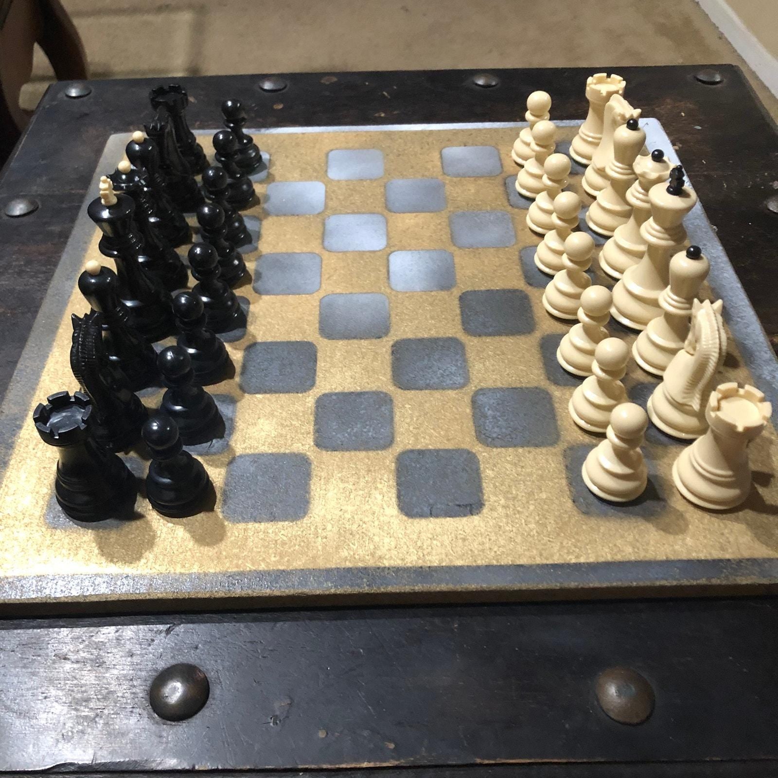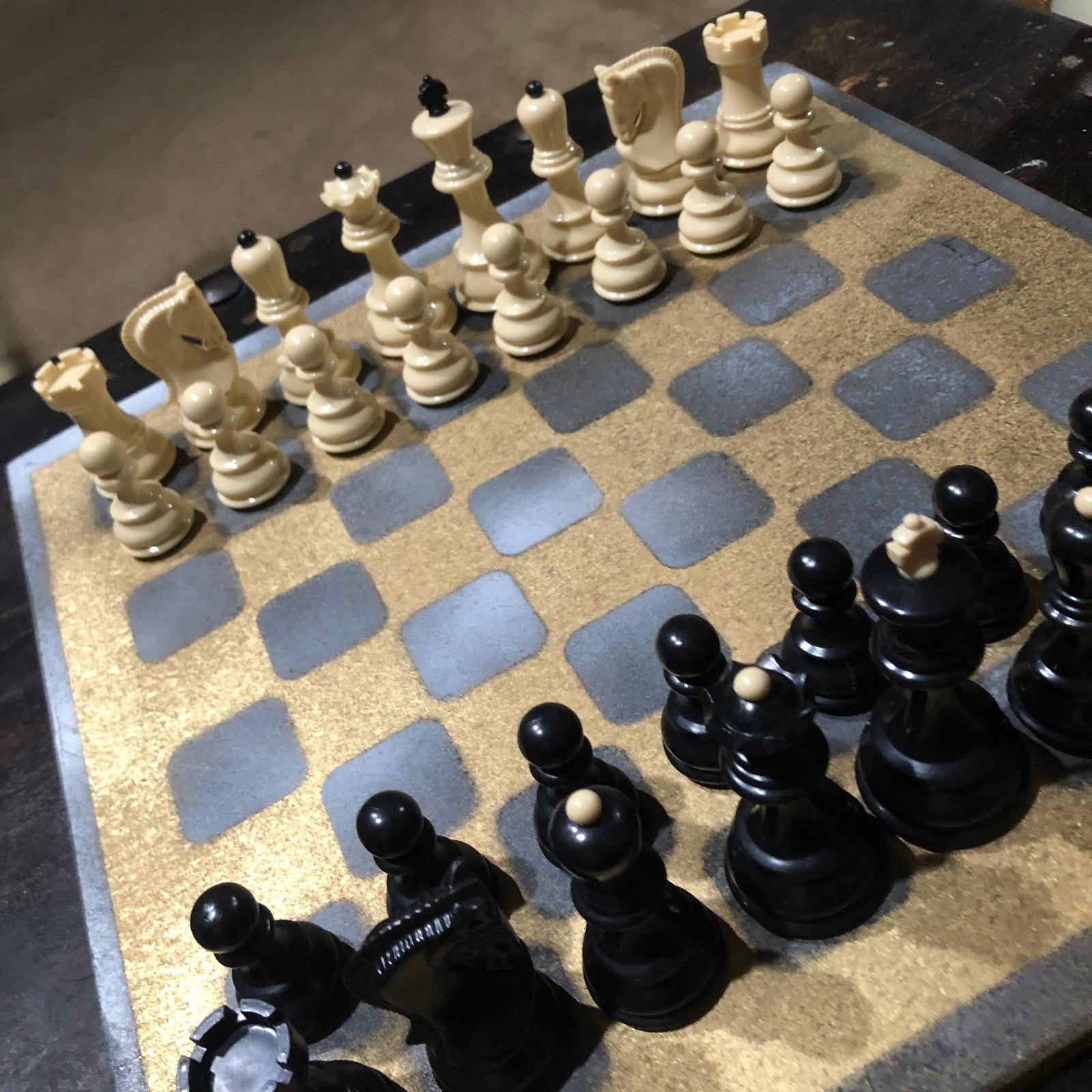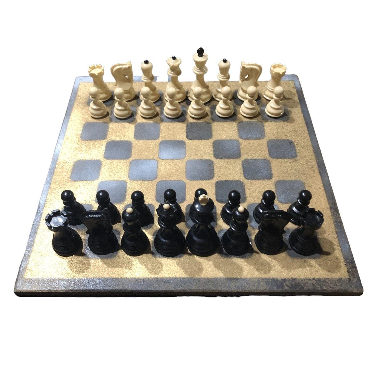 Introducing our exclusive Handcrafted Painted Particle Board Chess Set, meticulously designed with precision and care. Measuring 16 inches by 16 inches, this chess set features a beautifully painted piece of particle board that doubles as a work of art. Each set is a unique, one-of-a-kind creation, crafted by hand to ensure that no two sets are alike. Elevate your gaming experience with this exceptional chess set that combines vibrant design with the touch of artisan craftsmanship.