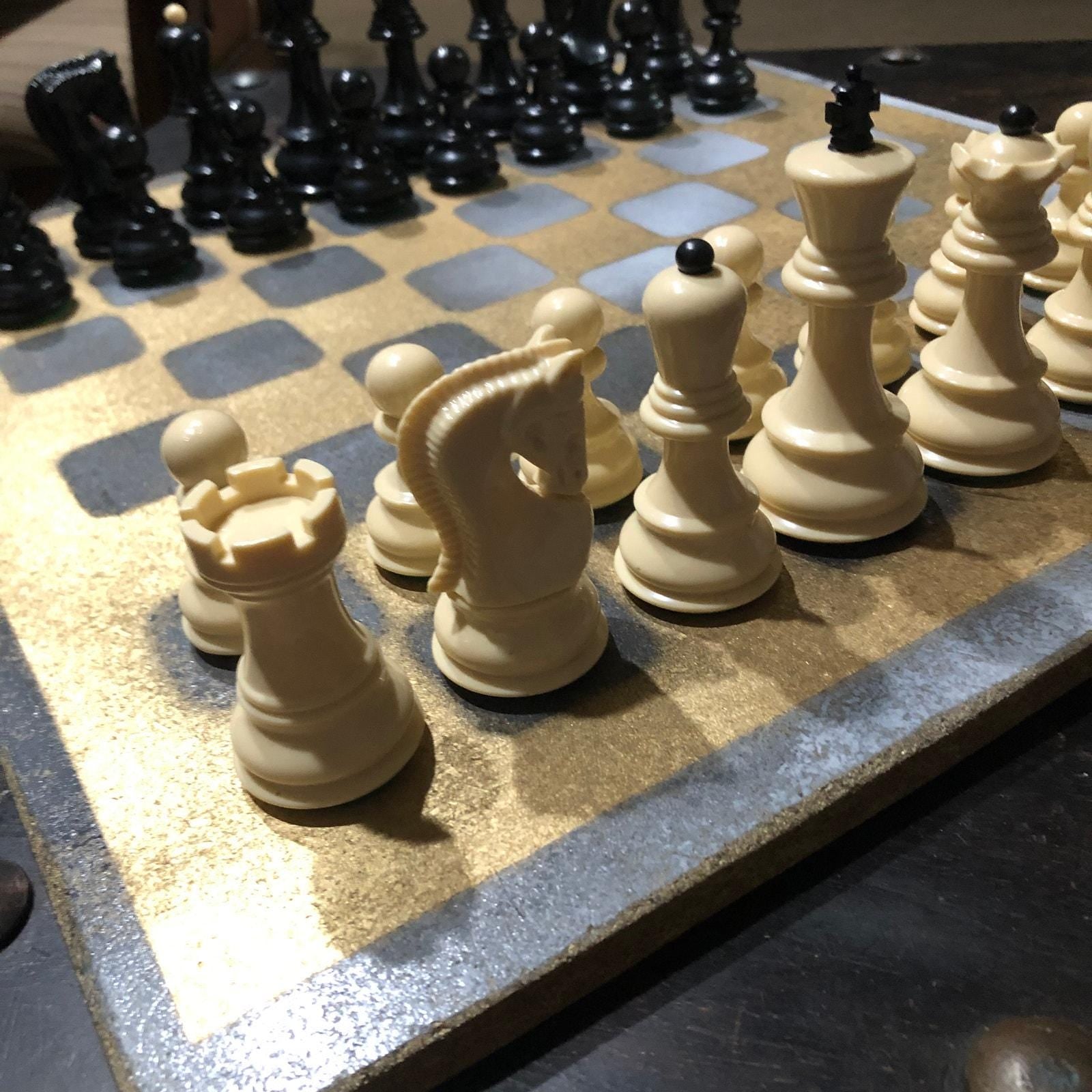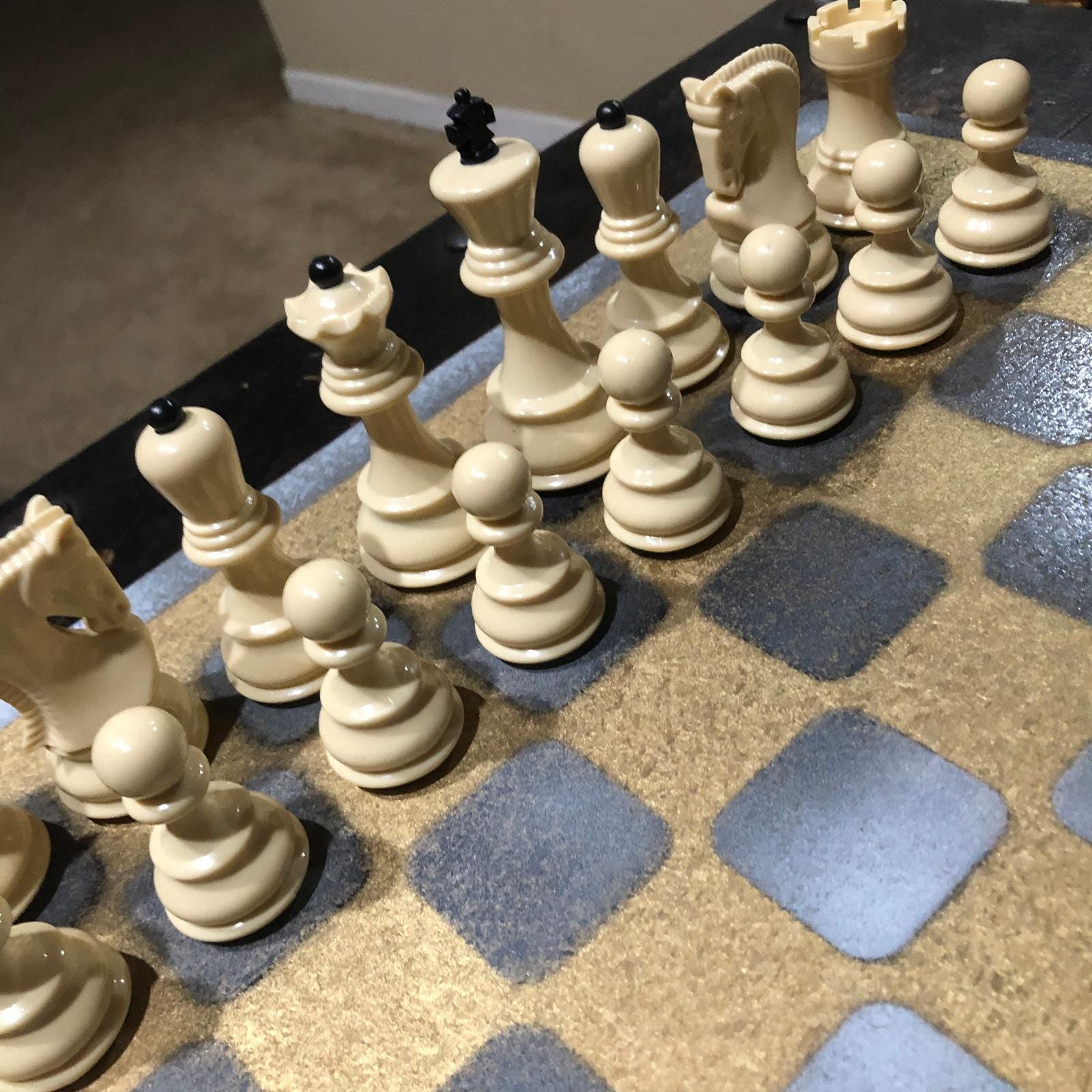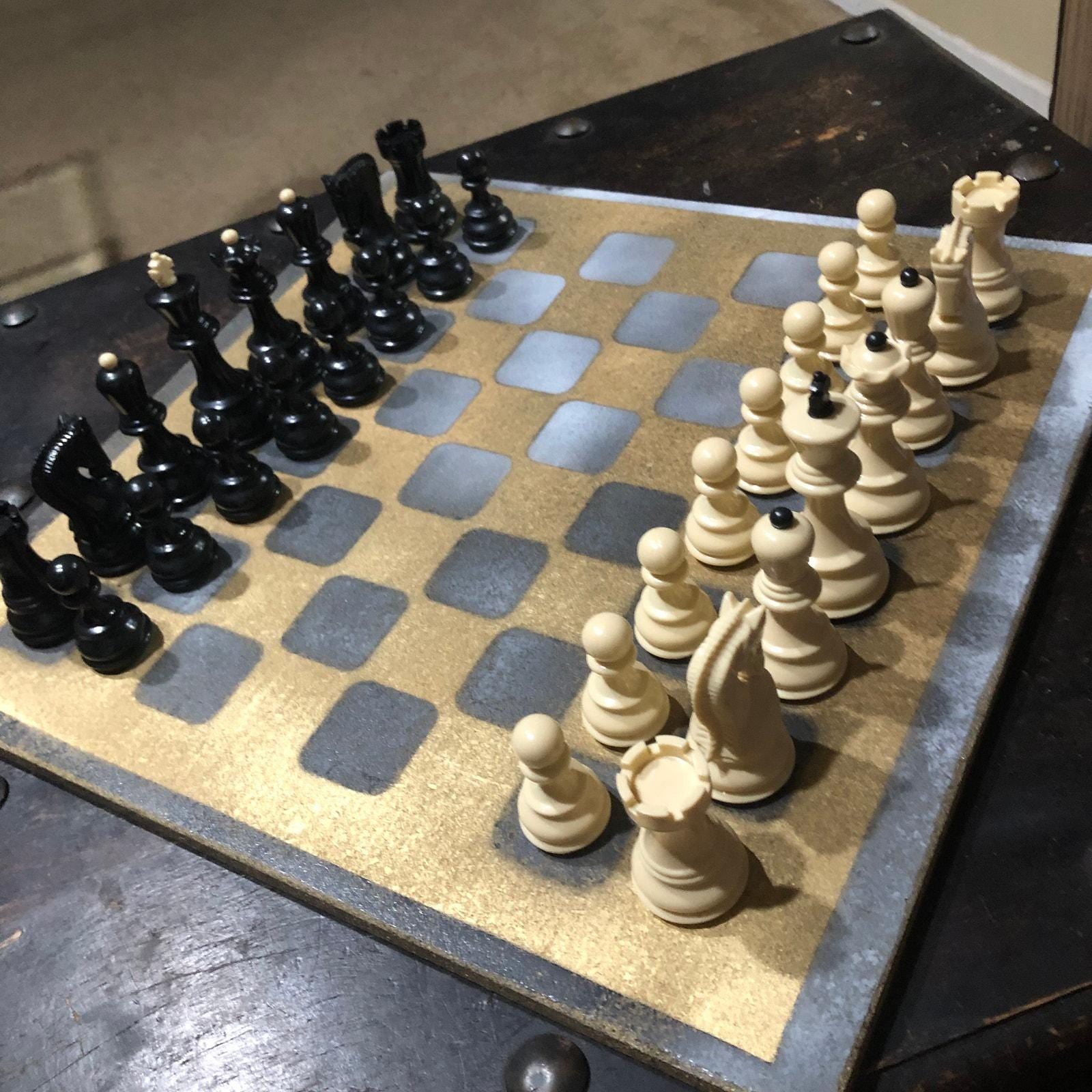 Introducing our exclusive Handcrafted Painted Particle Board Chess Set, meticulously designed with precision and care. Measuring 16 inches by 16 inches, this chess set features a beautifully painted piece of particle board that doubles as a work of art. Each set is a unique, one-of-a-kind creation, crafted by hand to ensure that no two sets are alike. Elevate your gaming experience with this exceptional chess set that combines vibrant design with the touch of artisan craftsmanship.