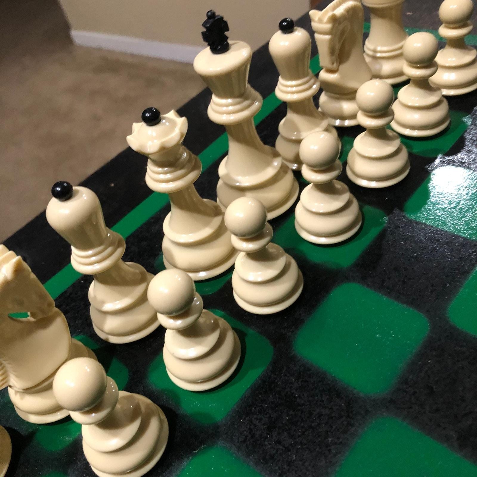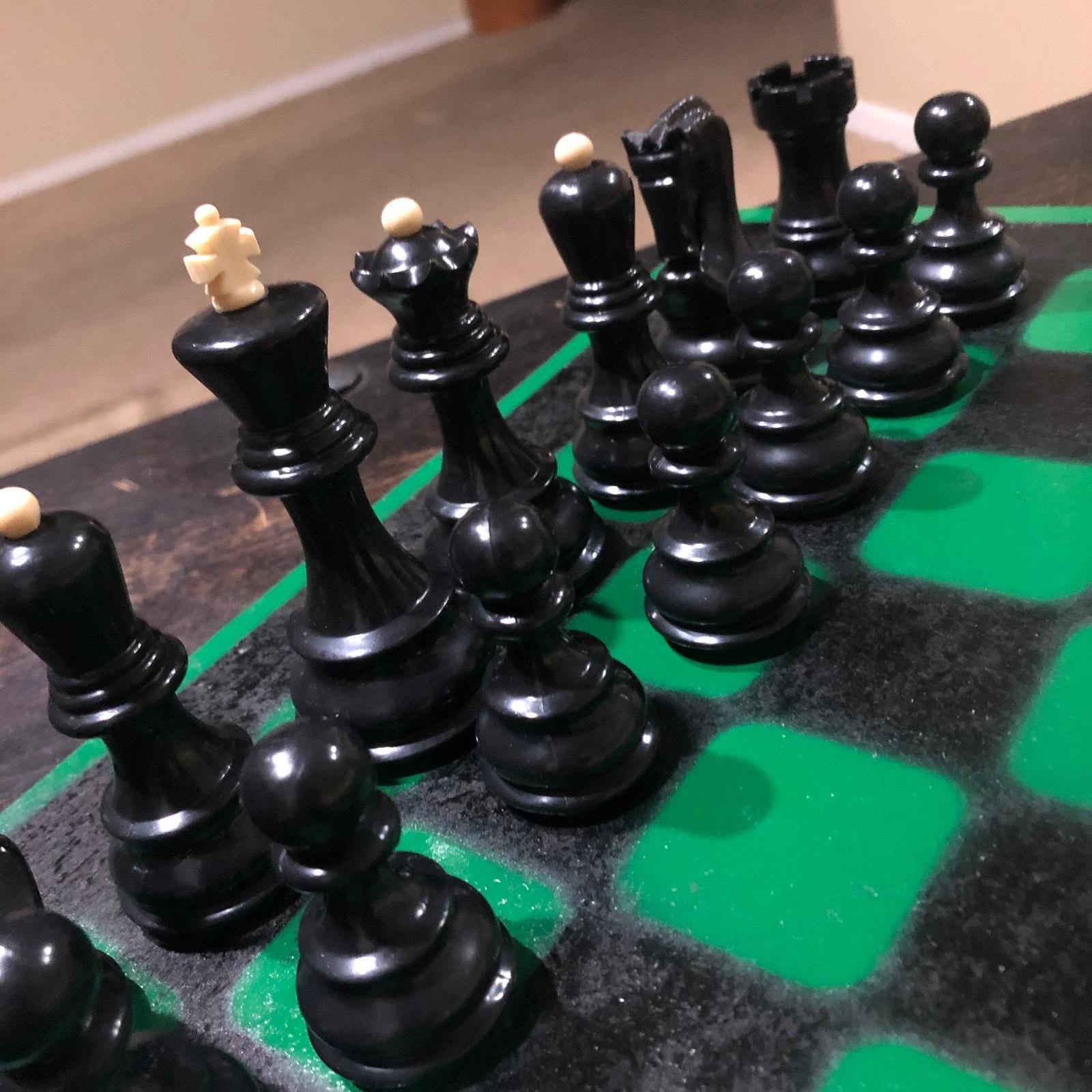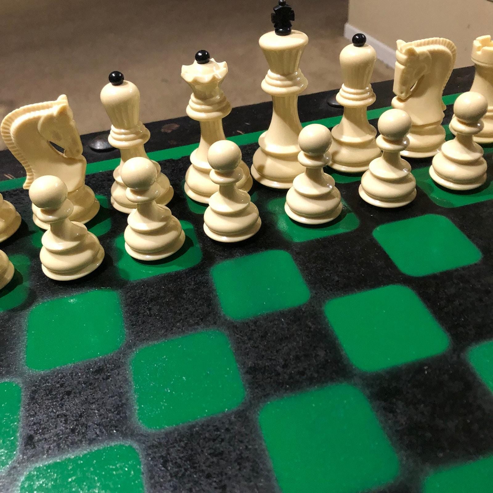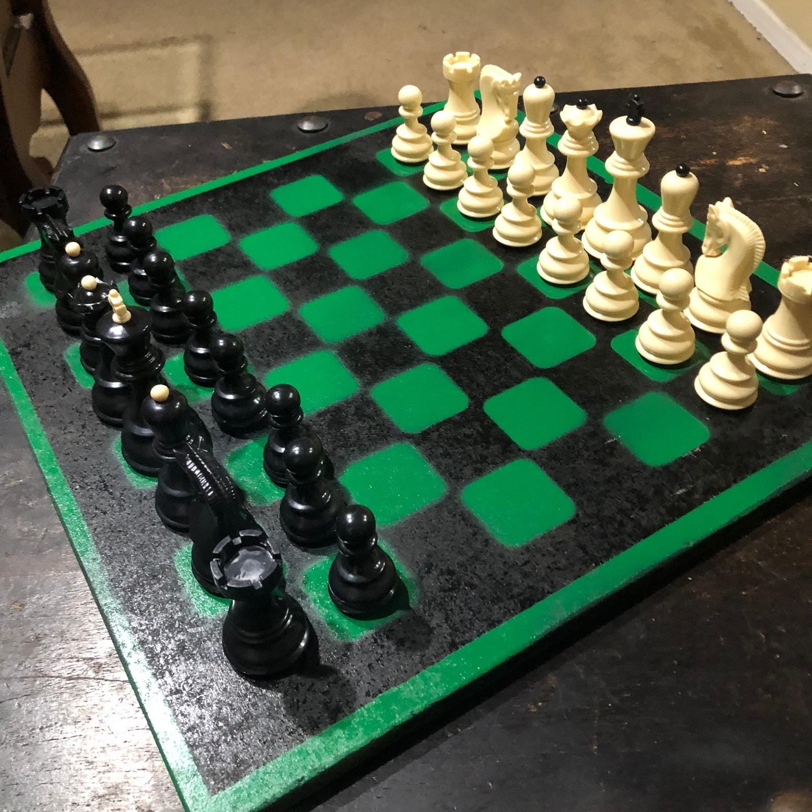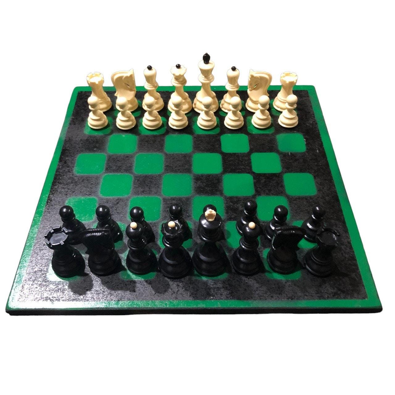 Introducing our exclusive Handcrafted Painted Particle Board Chess Set, meticulously designed with precision and care. Measuring 16 inches by 16 inches, this chess set features a beautifully painted piece of particle board that doubles as a work of art. Each set is a unique, one-of-a-kind creation, crafted by hand to ensure that no two sets are alike. Elevate your gaming experience with this exceptional chess set that combines vibrant design with the touch of artisan craftsmanship.