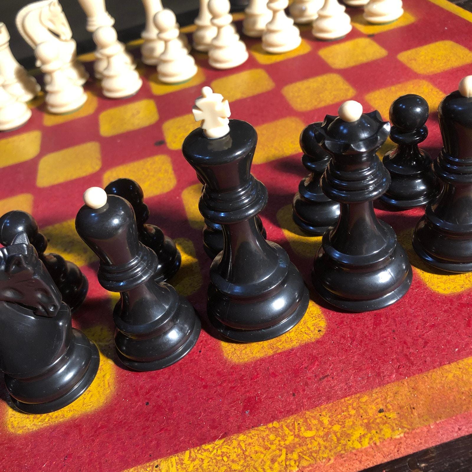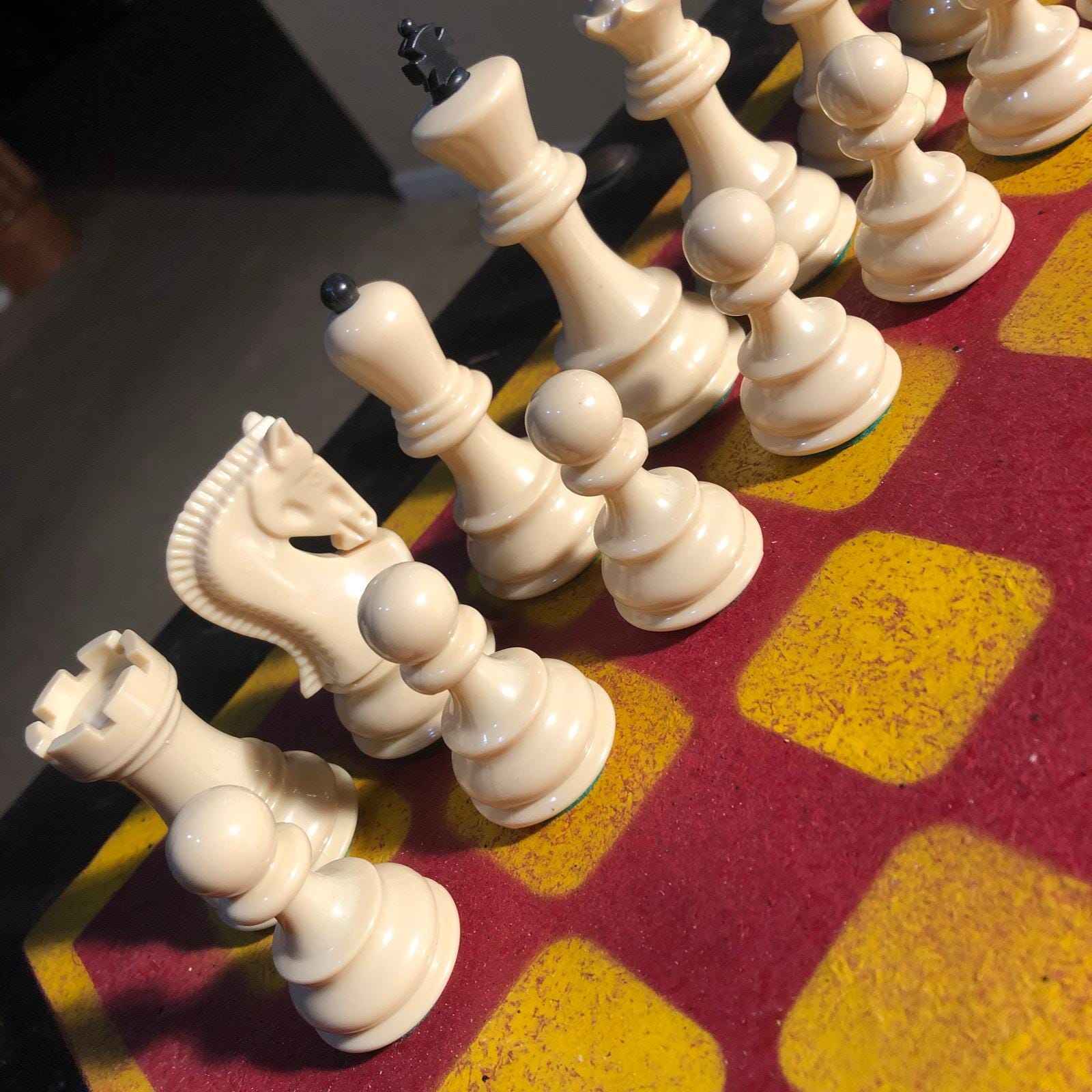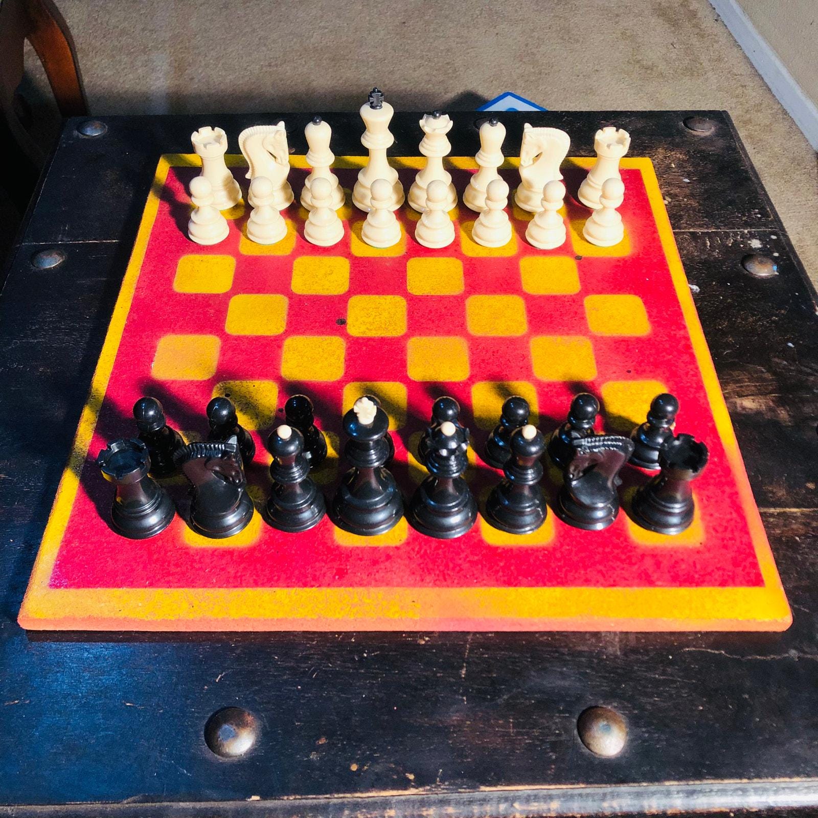 Introducing our exclusive Handcrafted Painted Particle Board Chess Set, meticulously designed with precision and care. Measuring 16 inches by 16 inches, this chess set features a beautifully painted piece of particle board that doubles as a work of art. Each set is a unique, one-of-a-kind creation, crafted by hand to ensure that no two sets are alike. Elevate your gaming experience with this exceptional chess set that combines vibrant design with the touch of artisan craftsmanship.