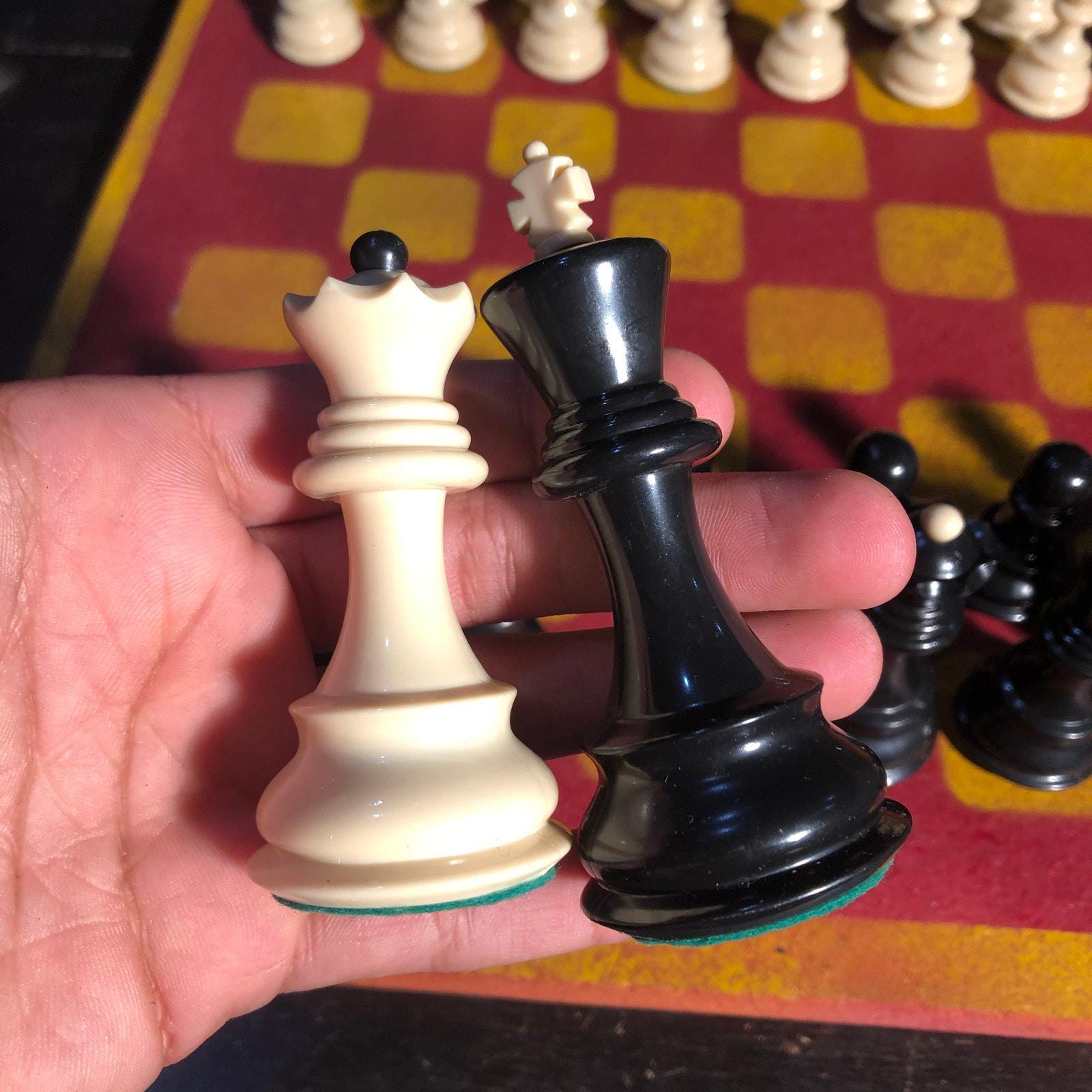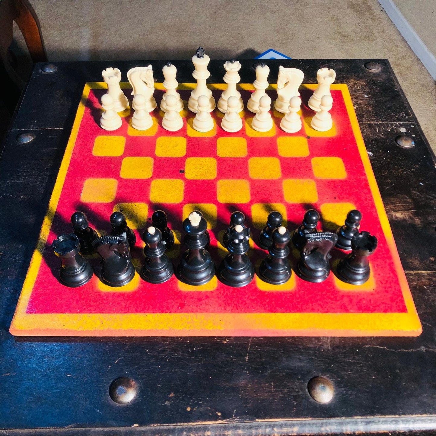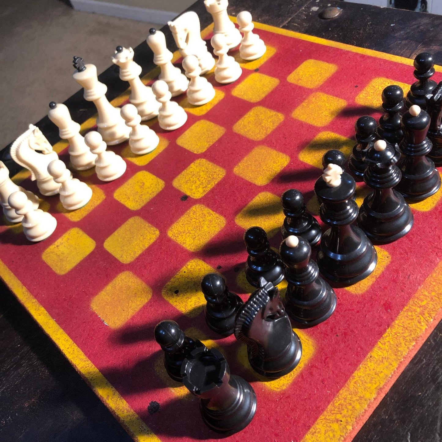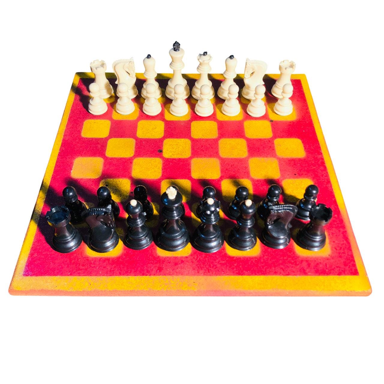 Large Painted Chess Set - Red & Yellow