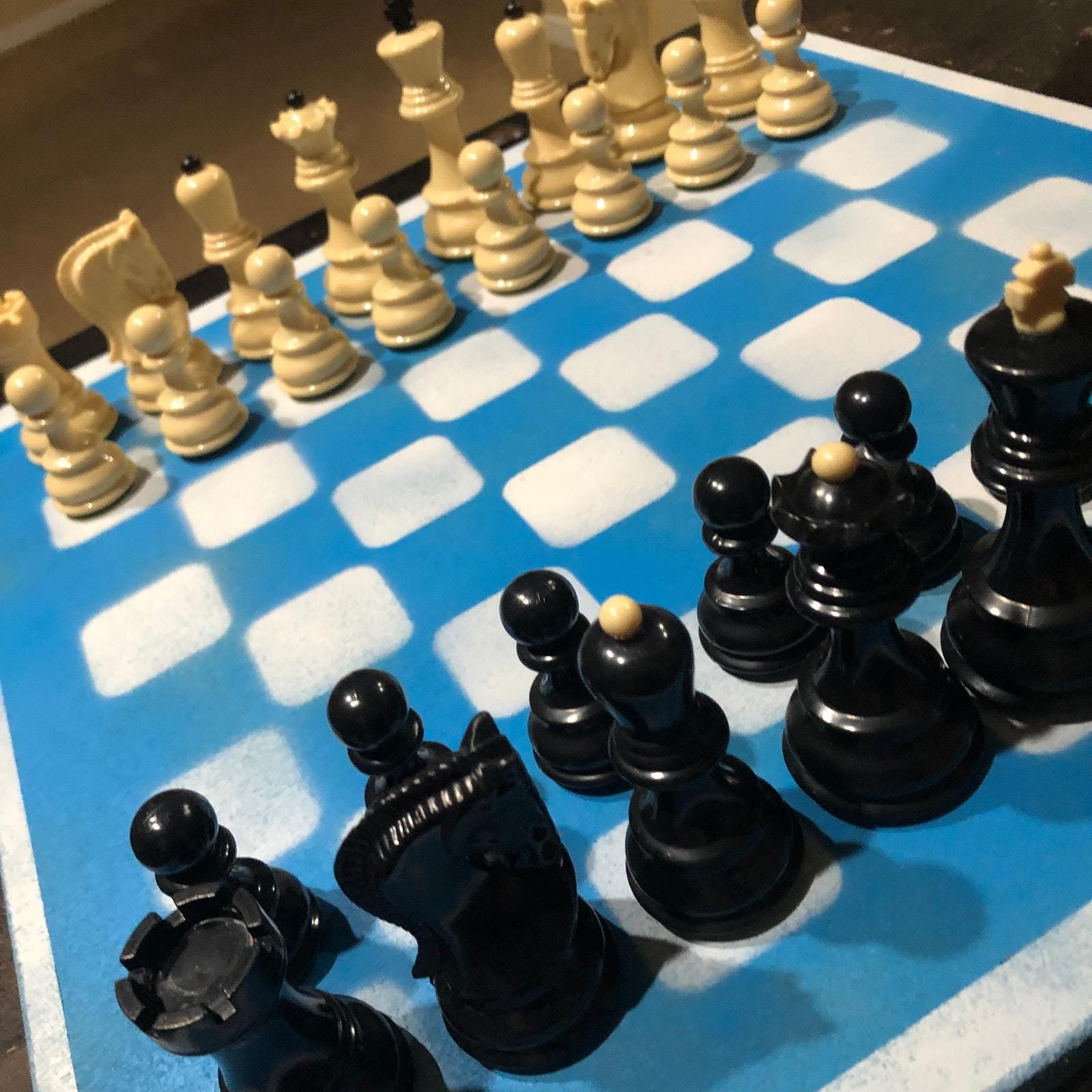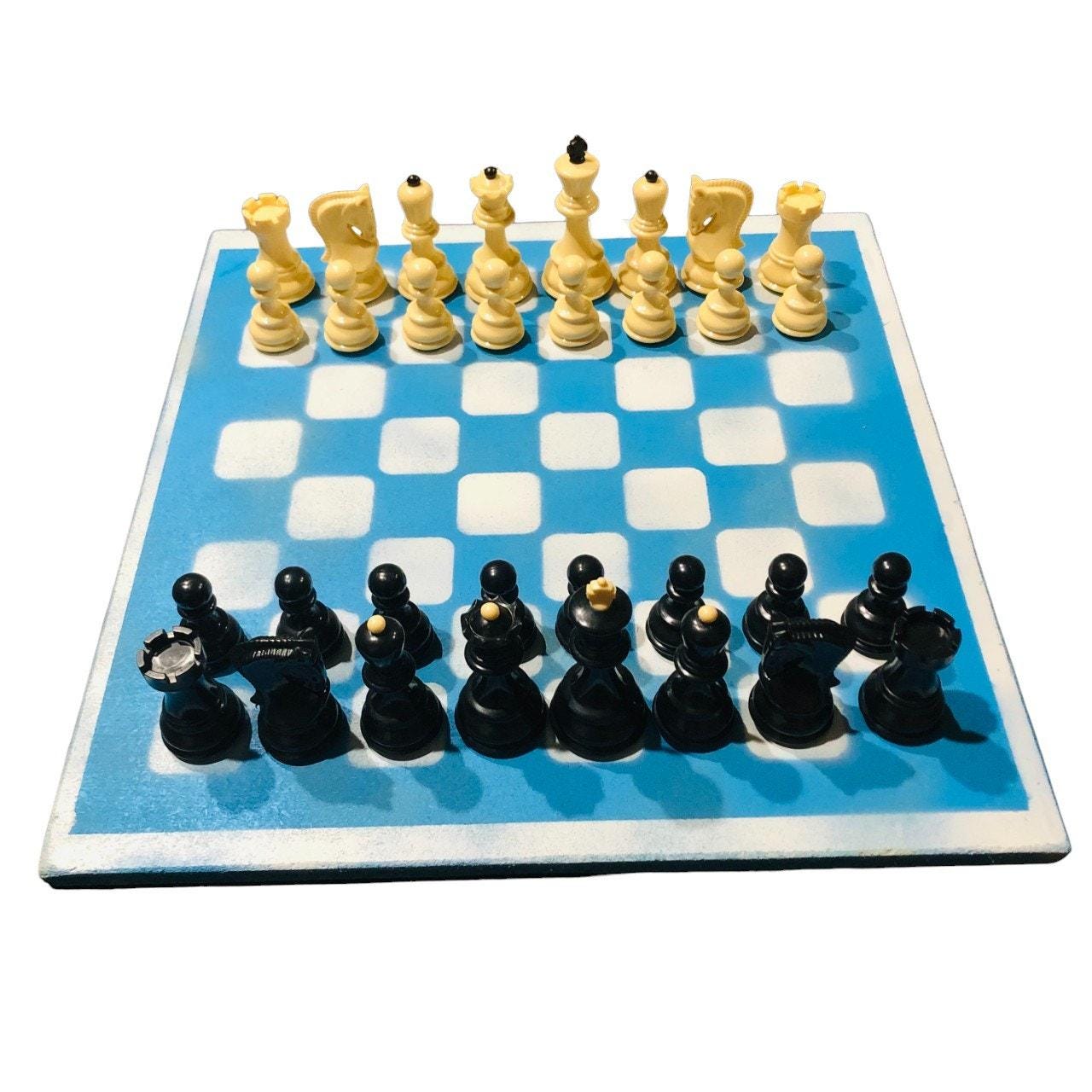 Introducing our exclusive Handcrafted Painted Particle Board Chess Set, meticulously designed with precision and care. Measuring 16 inches by 16 inches, this chess set features a beautifully painted piece of particle board that doubles as a work of art. Each set is a unique, one-of-a-kind creation, crafted by hand to ensure that no two sets are alike. Elevate your gaming experience with this exceptional chess set that combines vibrant design with the touch of artisan craftsmanship.