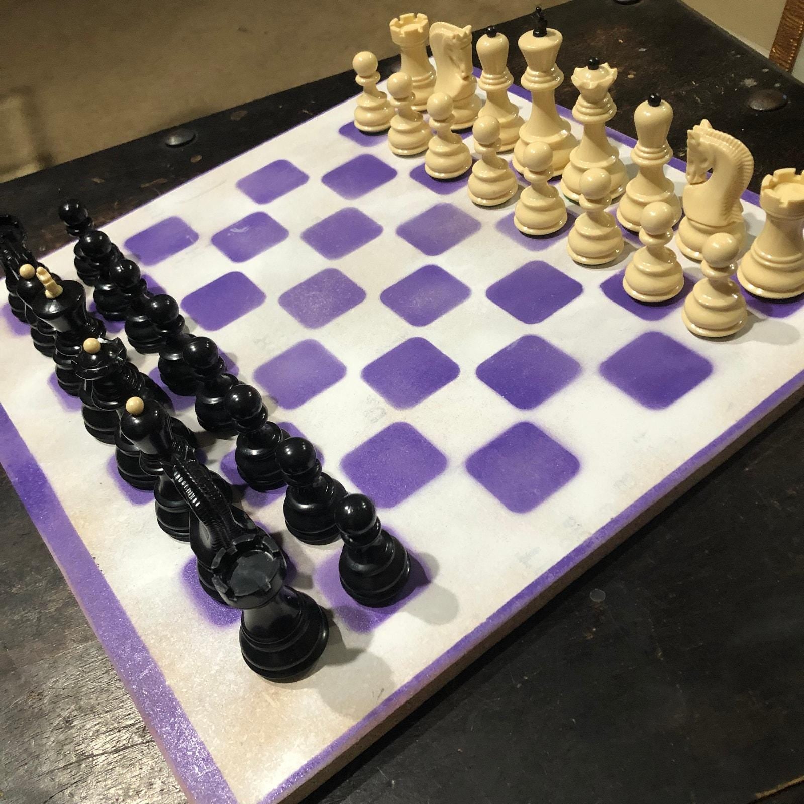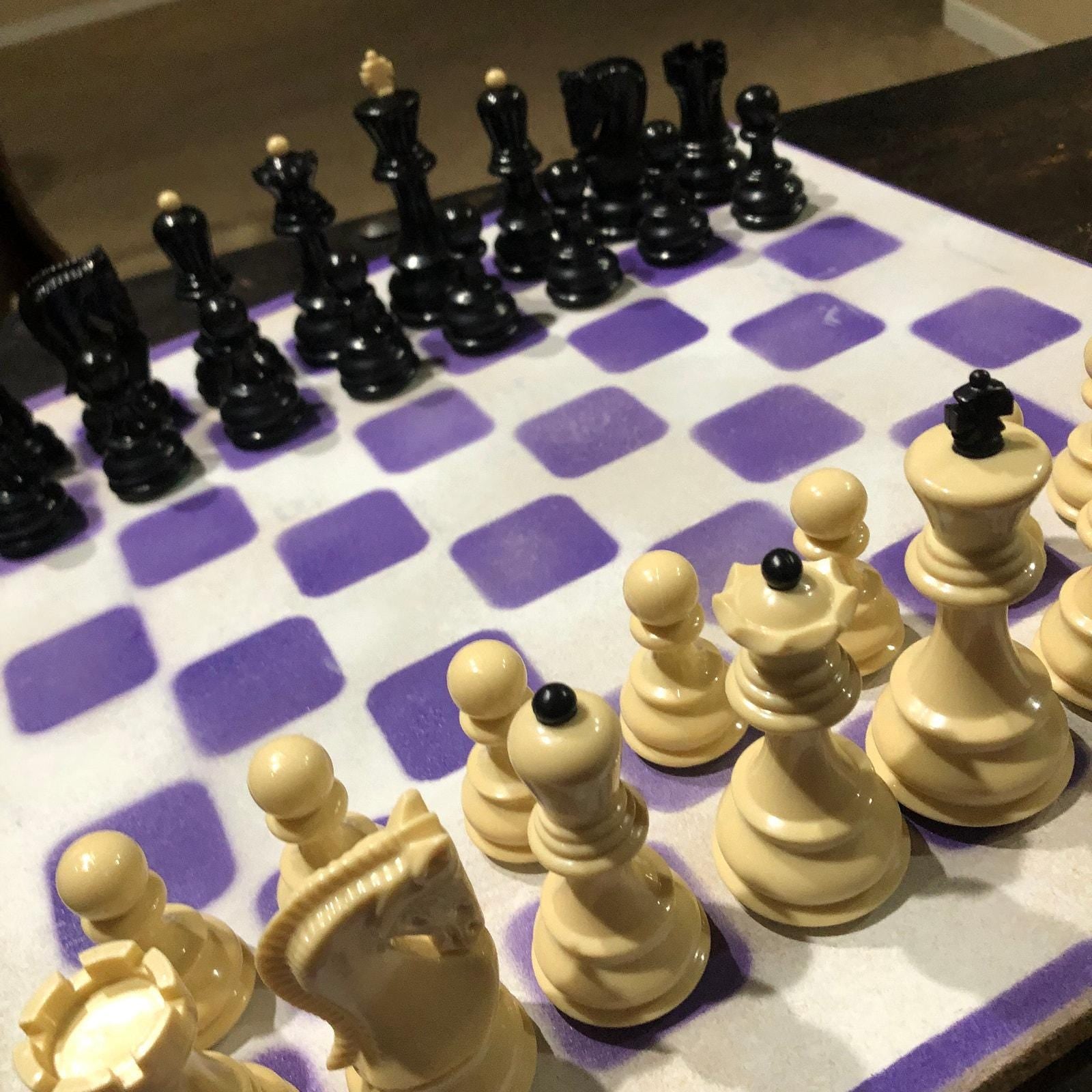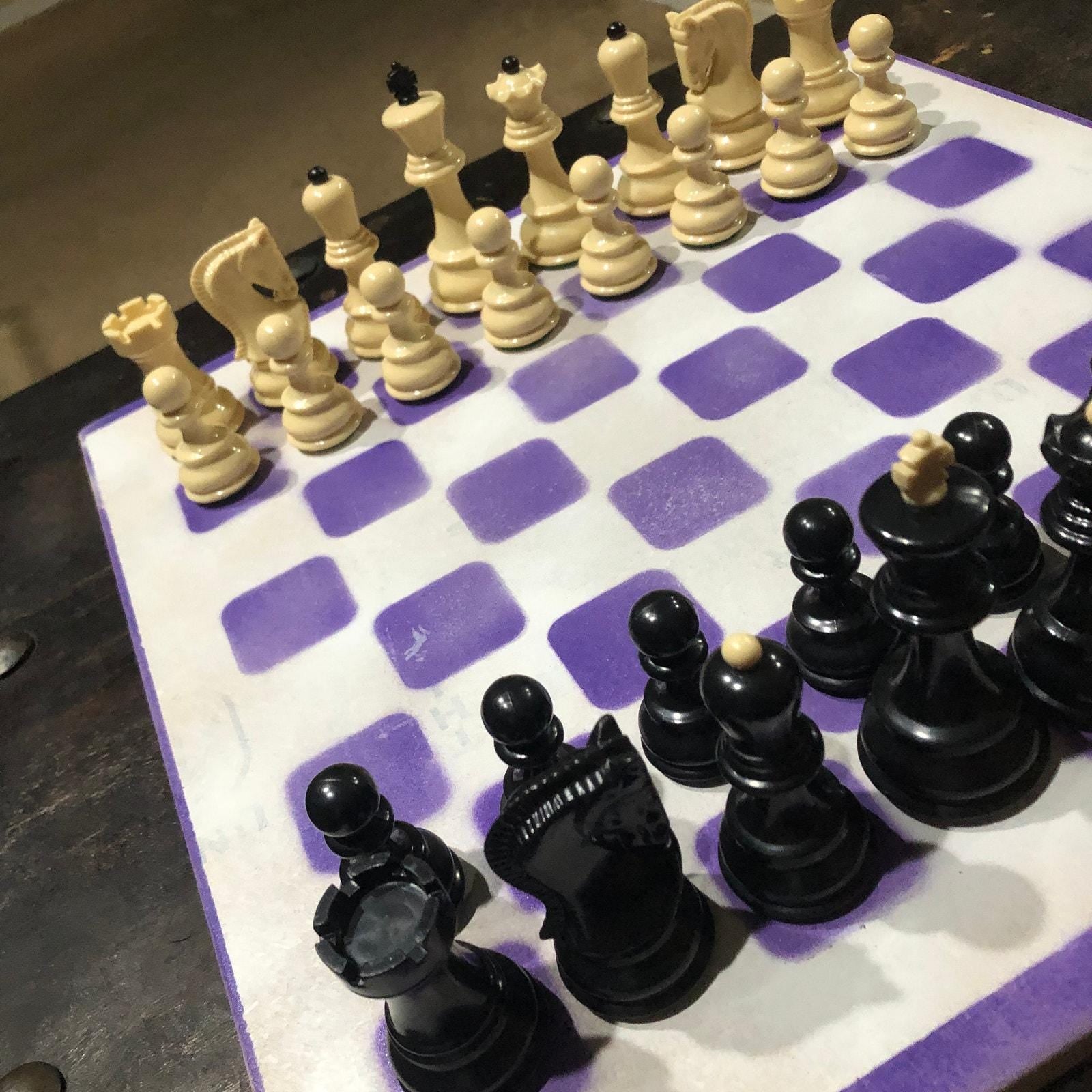 Introducing our exclusive Handcrafted Painted Particle Board Chess Set, meticulously designed with precision and care. Measuring 16 inches by 16 inches, this chess set features a beautifully painted piece of particle board that doubles as a work of art. Each set is a unique, one-of-a-kind creation, crafted by hand to ensure that no two sets are alike. Elevate your gaming experience with this exceptional chess set that combines vibrant design with the touch of artisan craftsmanship.