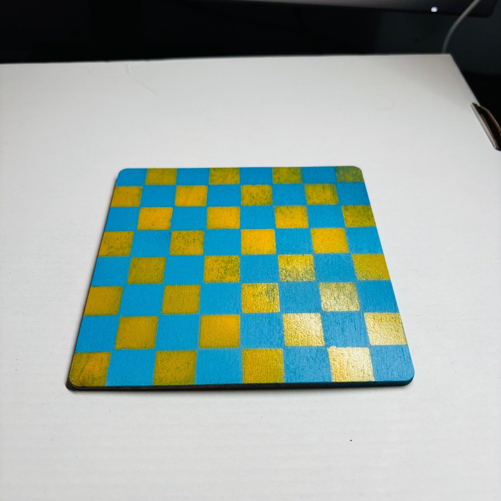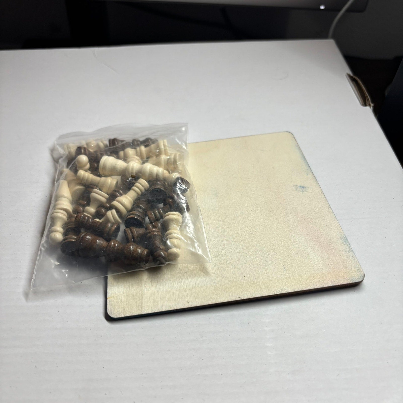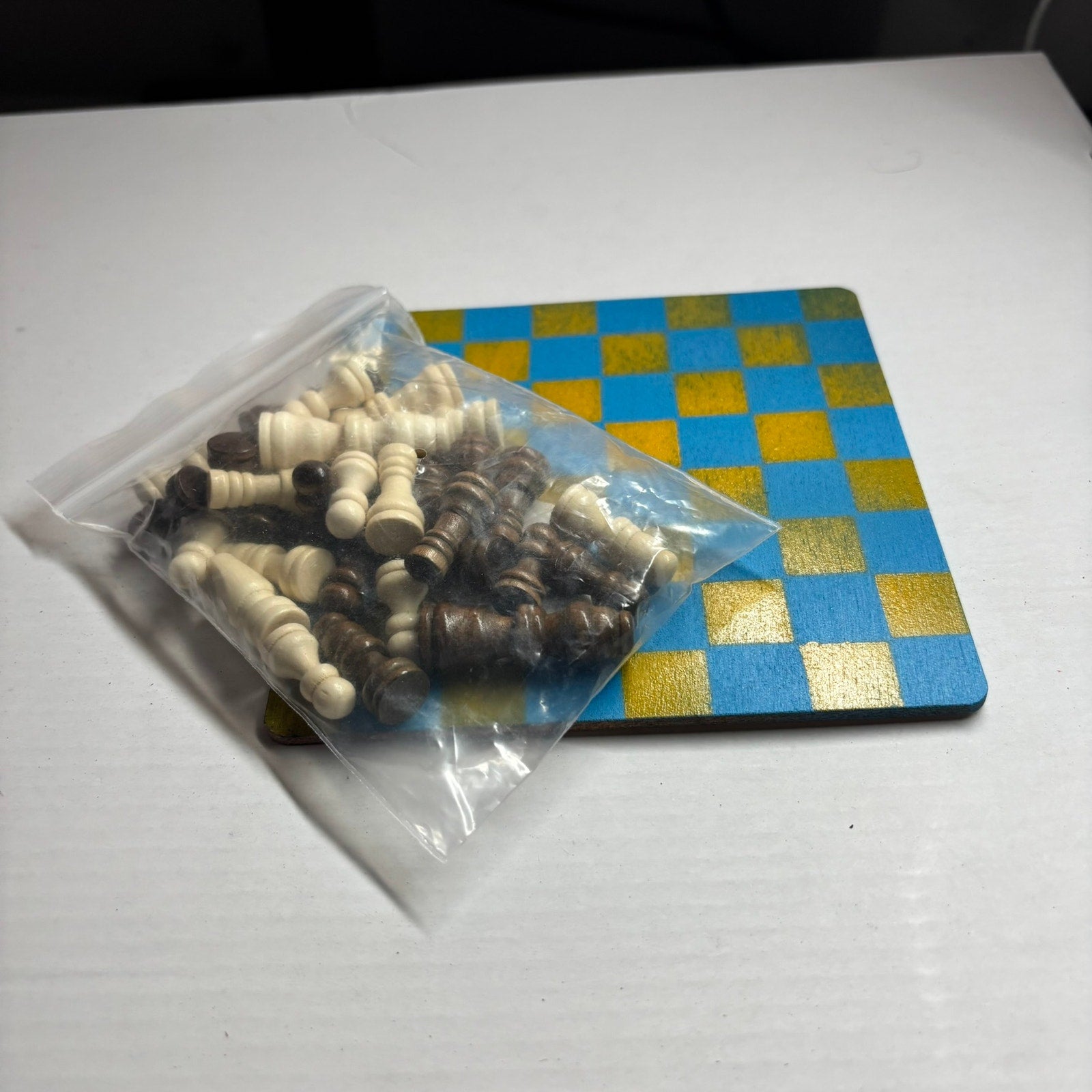 The board is made of a thin piece of wood and has been lovingly hand-painted, giving it a unique and charming touch. This chess set is perfect for collectors, travel enthusiasts, or anyone who appreciates a touch of whimsy.