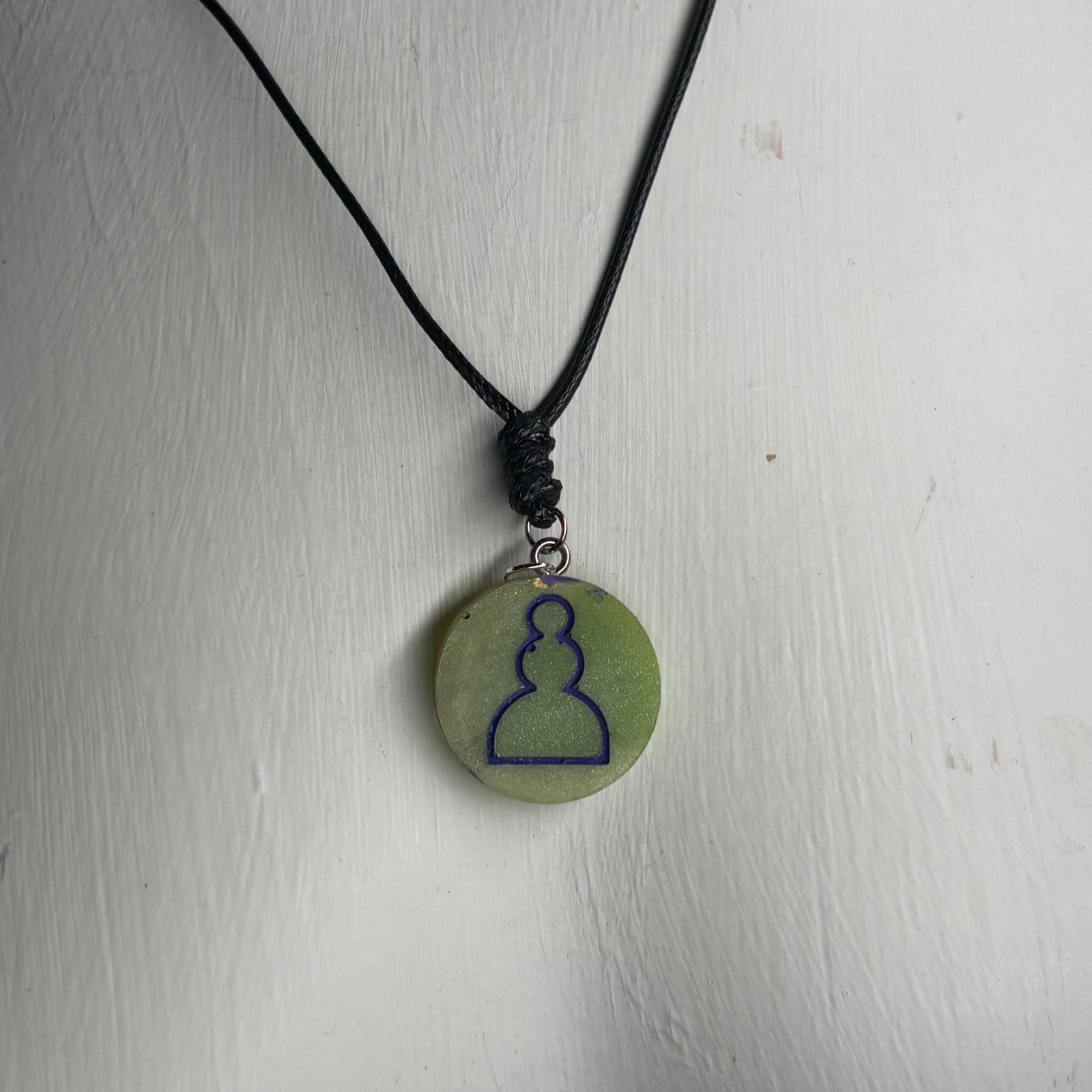 Lime Green Pawn - Handmade Resin Chess Necklace