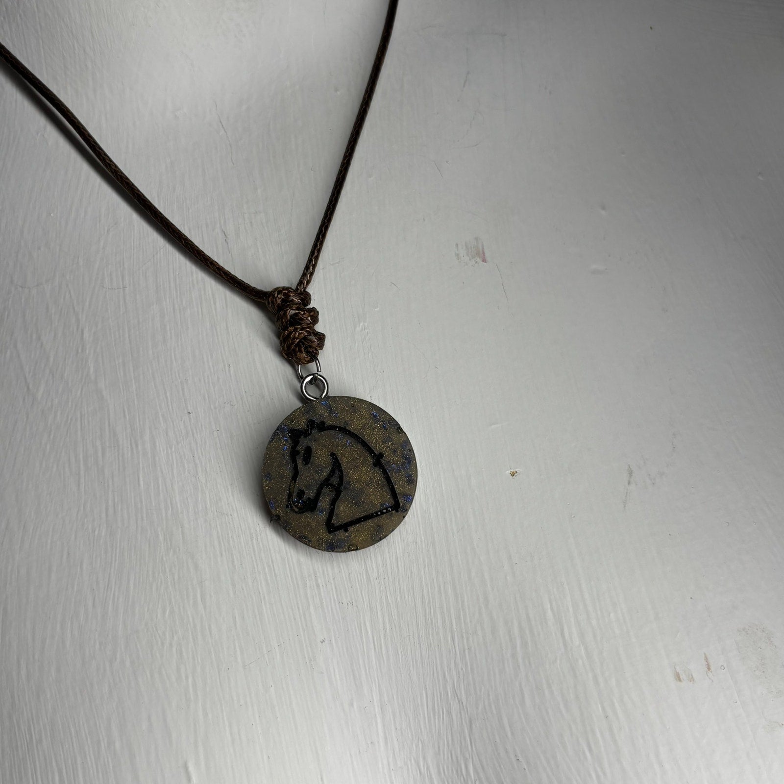 Luxury Brown Knight - Handmade Resin Chess Necklace