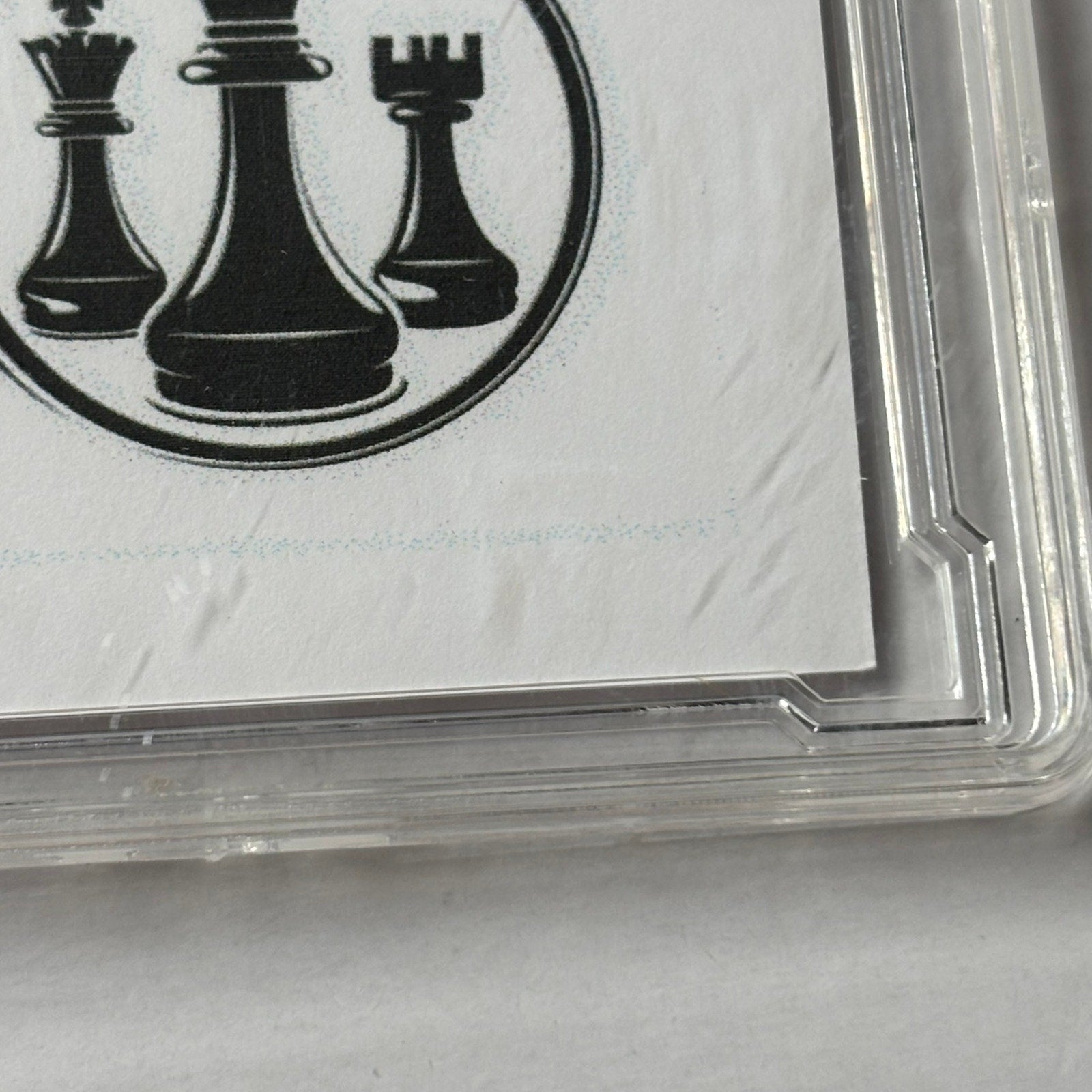 This card is chess-themed, making it a great addition for chess enthusiasts and collectors alike. With over 10,000 cards in the series, finding the perfectly cut card is part of the fun. Start your collection today and enjoy the thrill of the hunt!