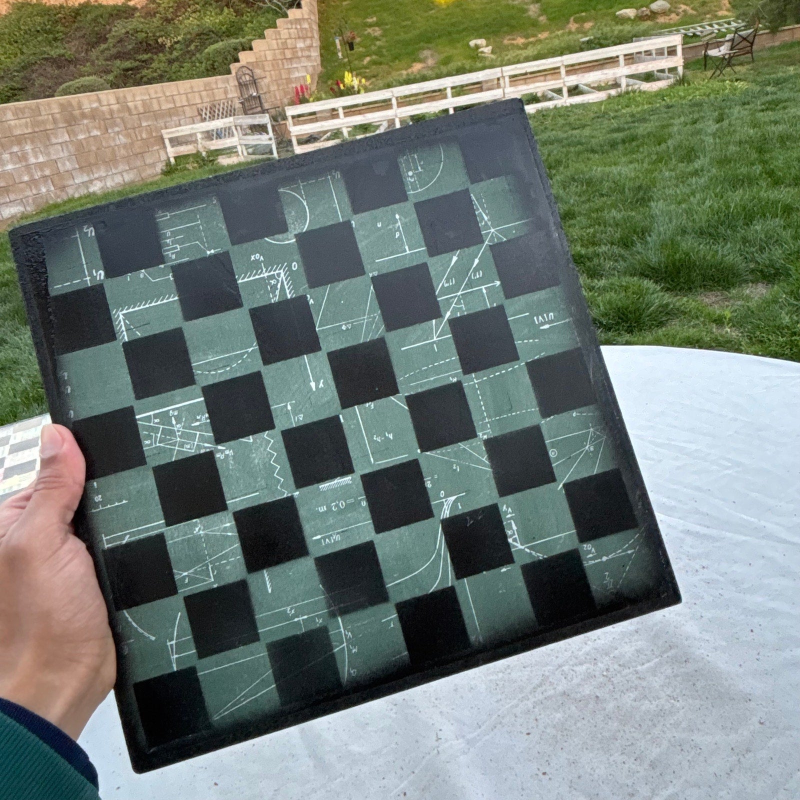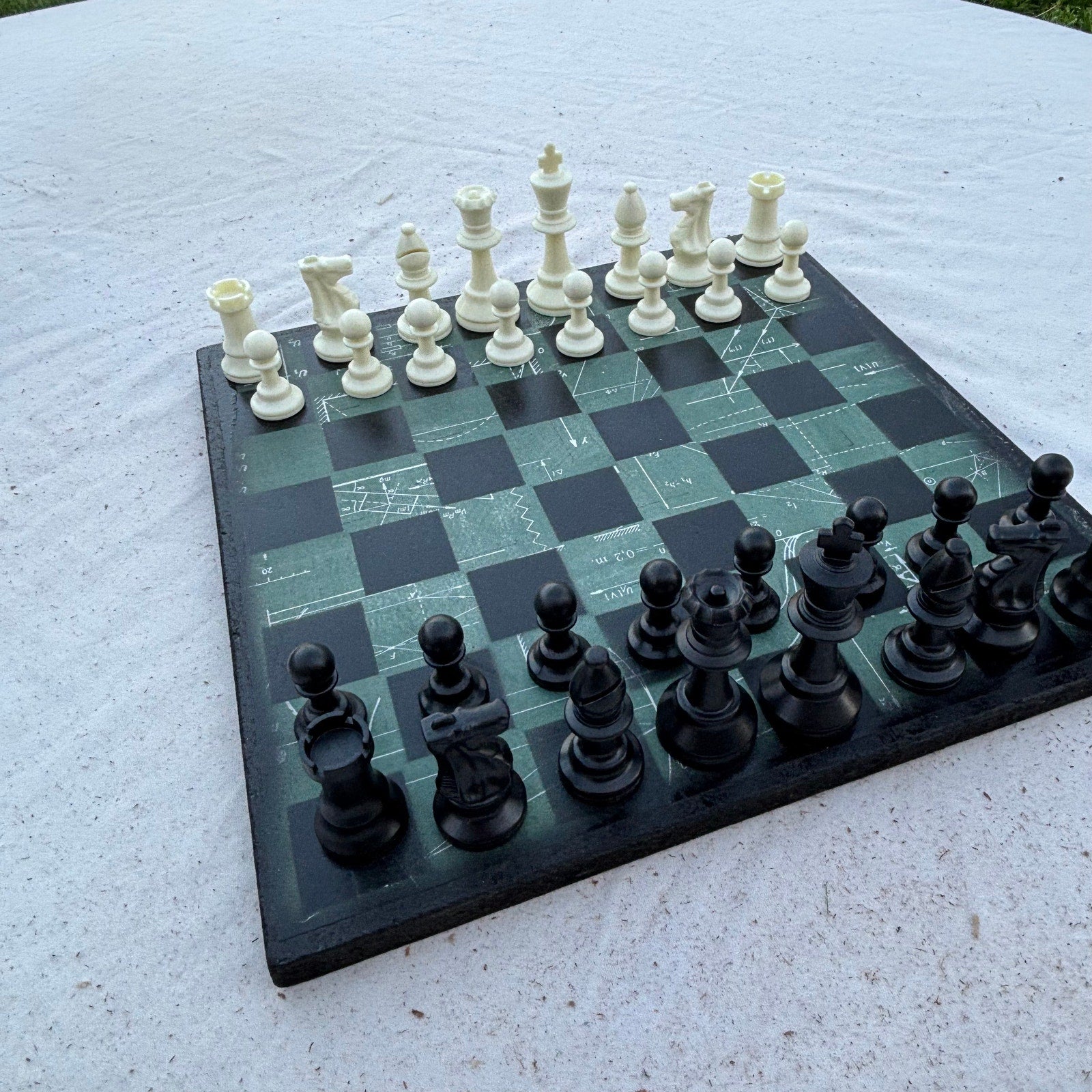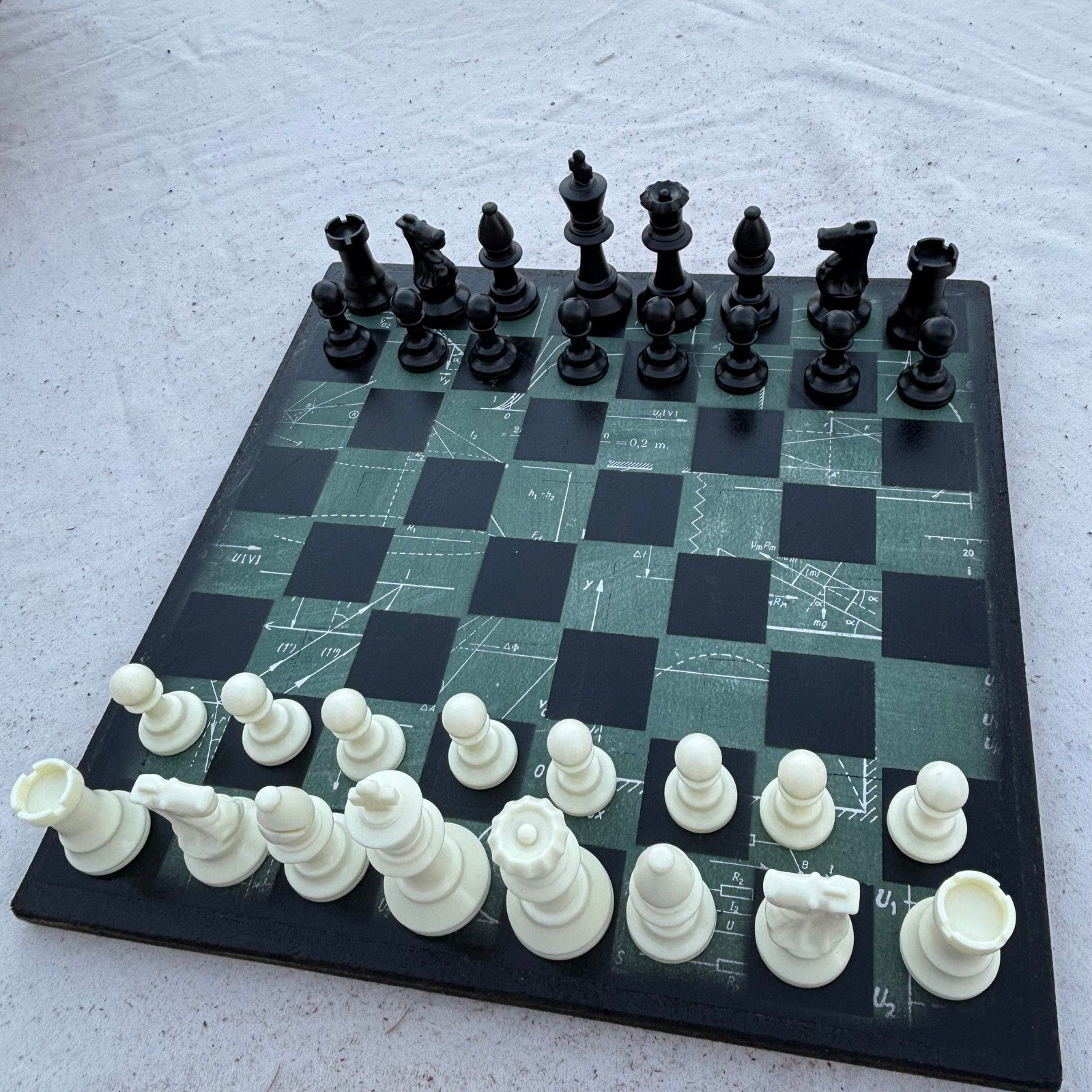 Introducing our exclusive Handcrafted Wooden Chess Set, meticulously designed with precision and care. Measuring 12 inches by 12 inches, this chess set features a beautifully painted particle board layered with a sheet of scrapbook paper board that doubles as a work of art. Each set is a unique, one-of-a-kind creation, crafted by hand to ensure that no two sets are alike. Elevate your gaming experience with this exceptional chess set that combines vibrant design with the touch of artisan craftsmanship. This chess board comes with chess pieces and is handcrafted as a one of one