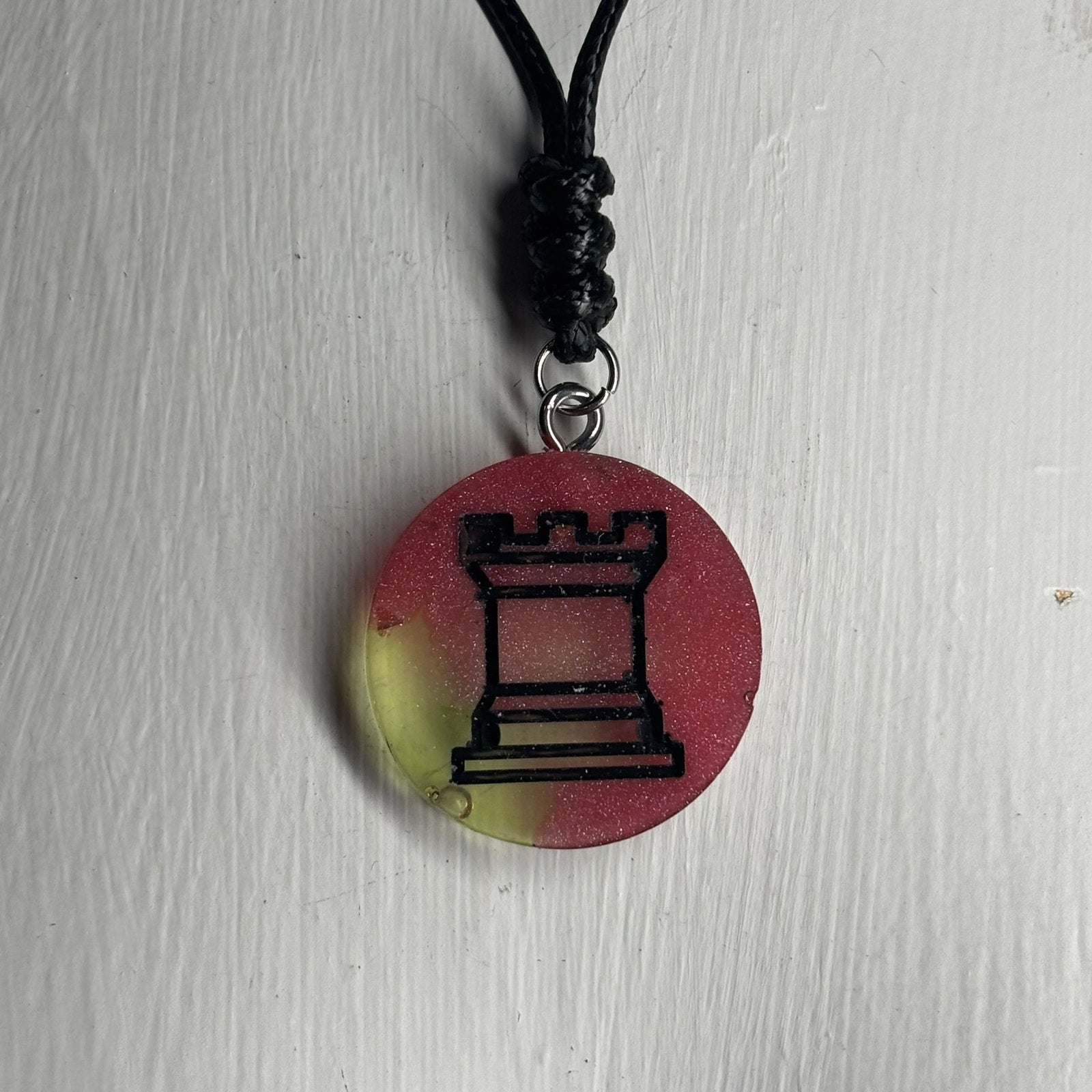Mesh Red Rook - Handmade Resin Chess Necklace