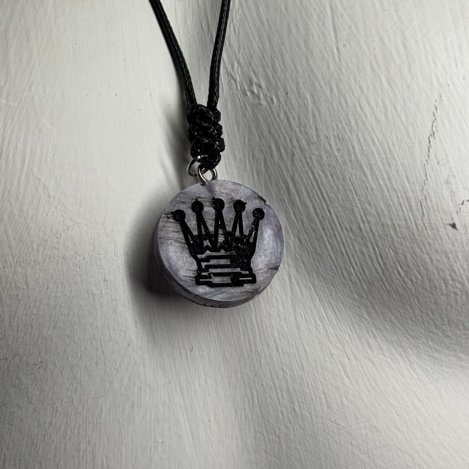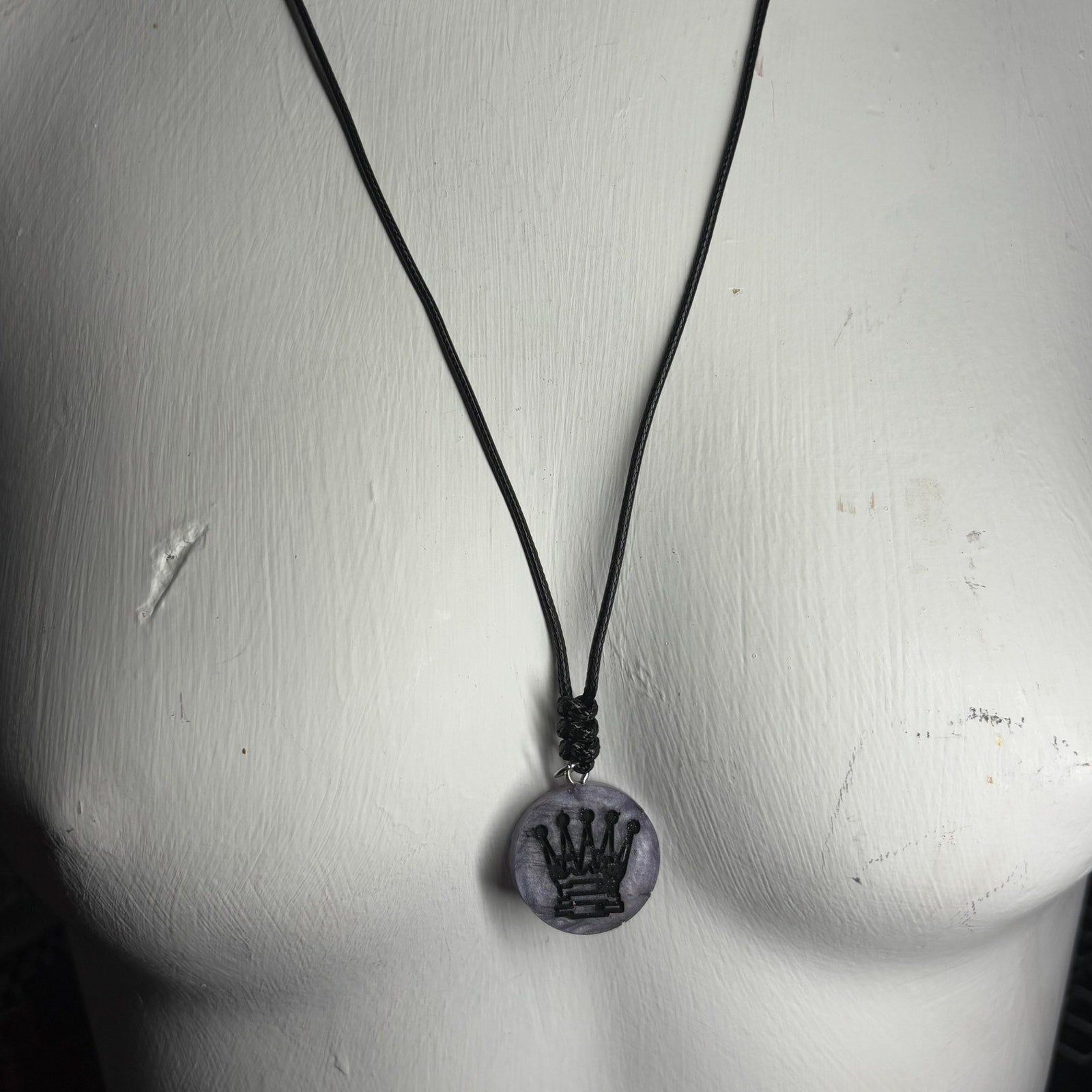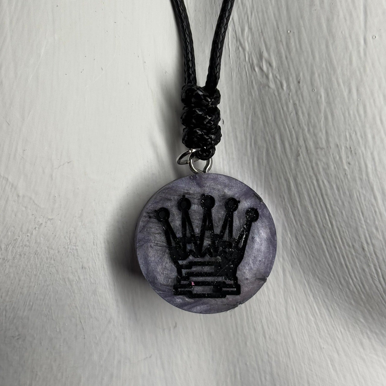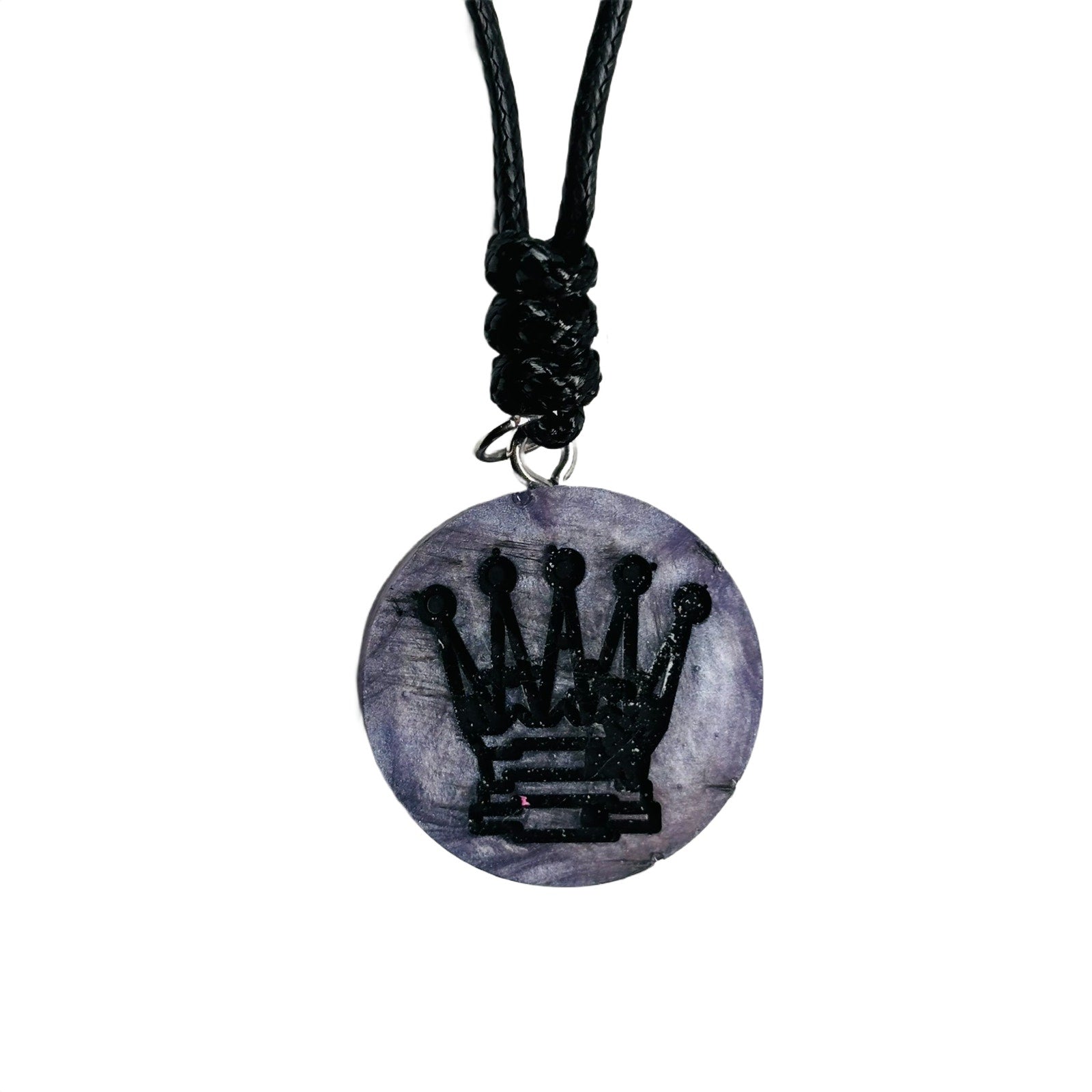 Midnight Purple Queen - Handmade Resin Chess Necklace - Flat Edition
