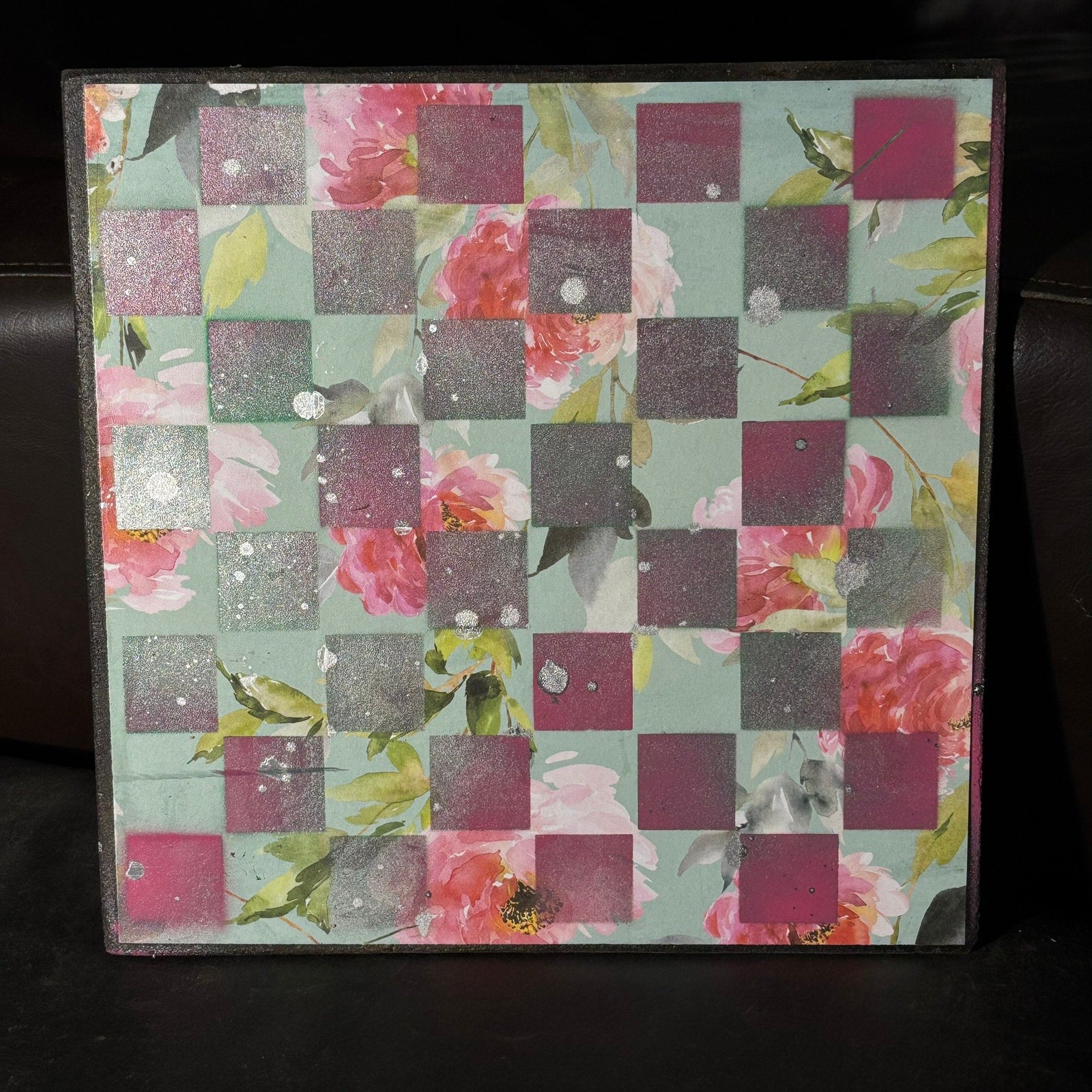 Mint Green Flowers - Scrapbook Chess Board