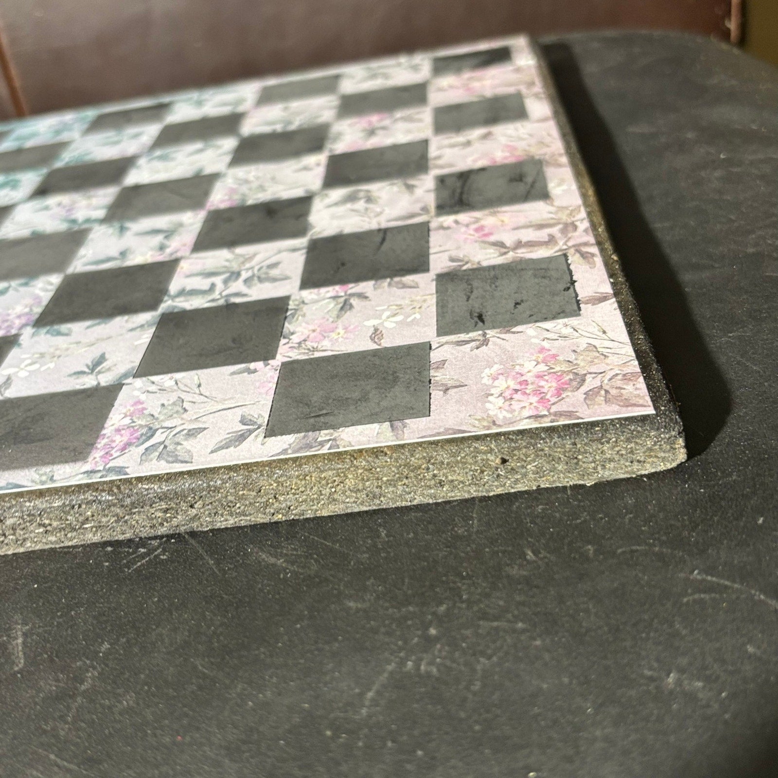 Each board features a layer of beautifully Scrapbook Paper Fused/Glued with particle board to give it a unique pretty pattern. We then paint squares onto the board to make them into fabulous chess boards. Made with a sturdy particle board base and smooth, beveled edges, this board is stunning.