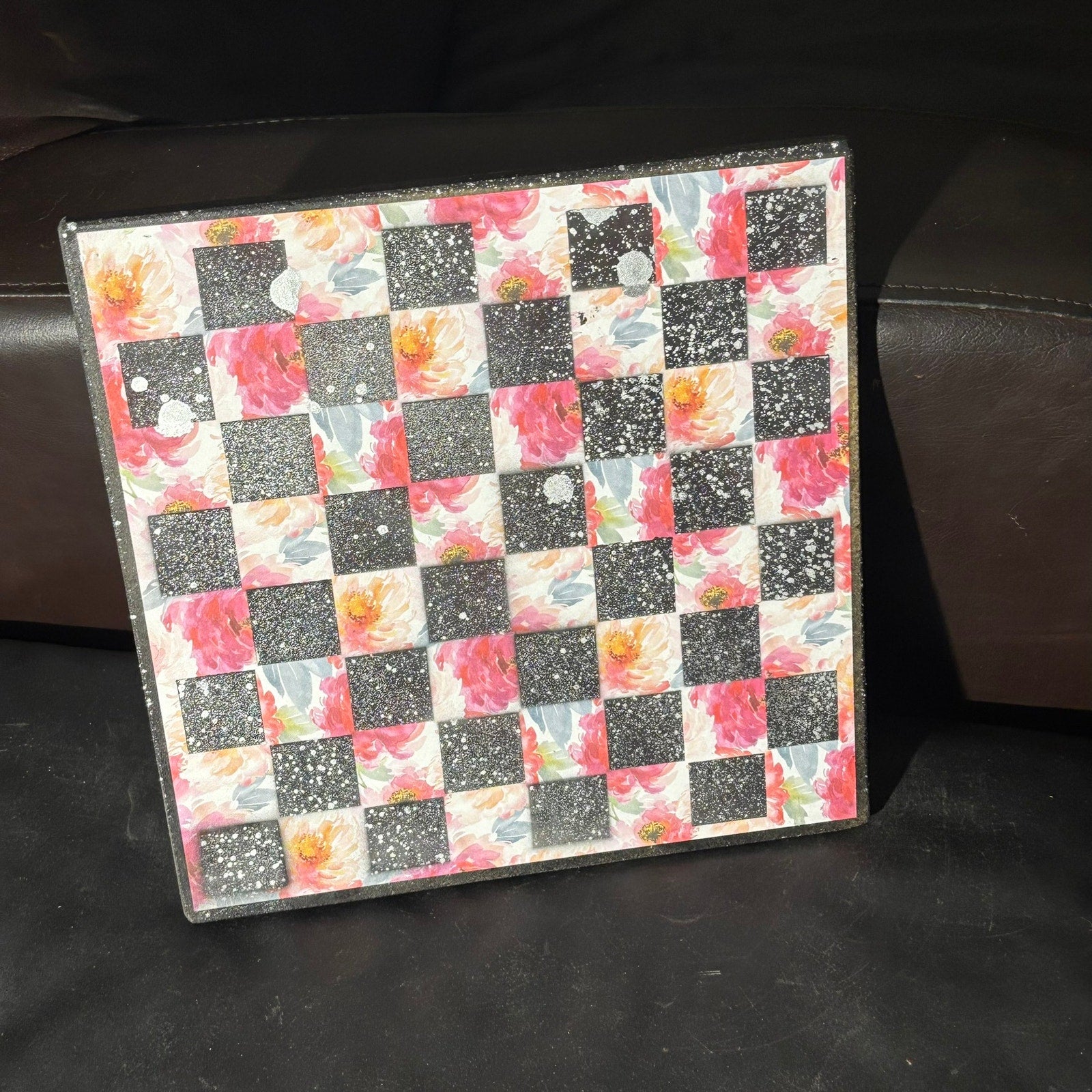 Each board features a layer of beautifully Scrapbook Paper Fused/Glued with particle board to give it a unique pretty pattern. We then paint squares onto the board to make them into fabulous chess boards. Made with a sturdy particle board base and smooth, beveled edges, this board is stunning.