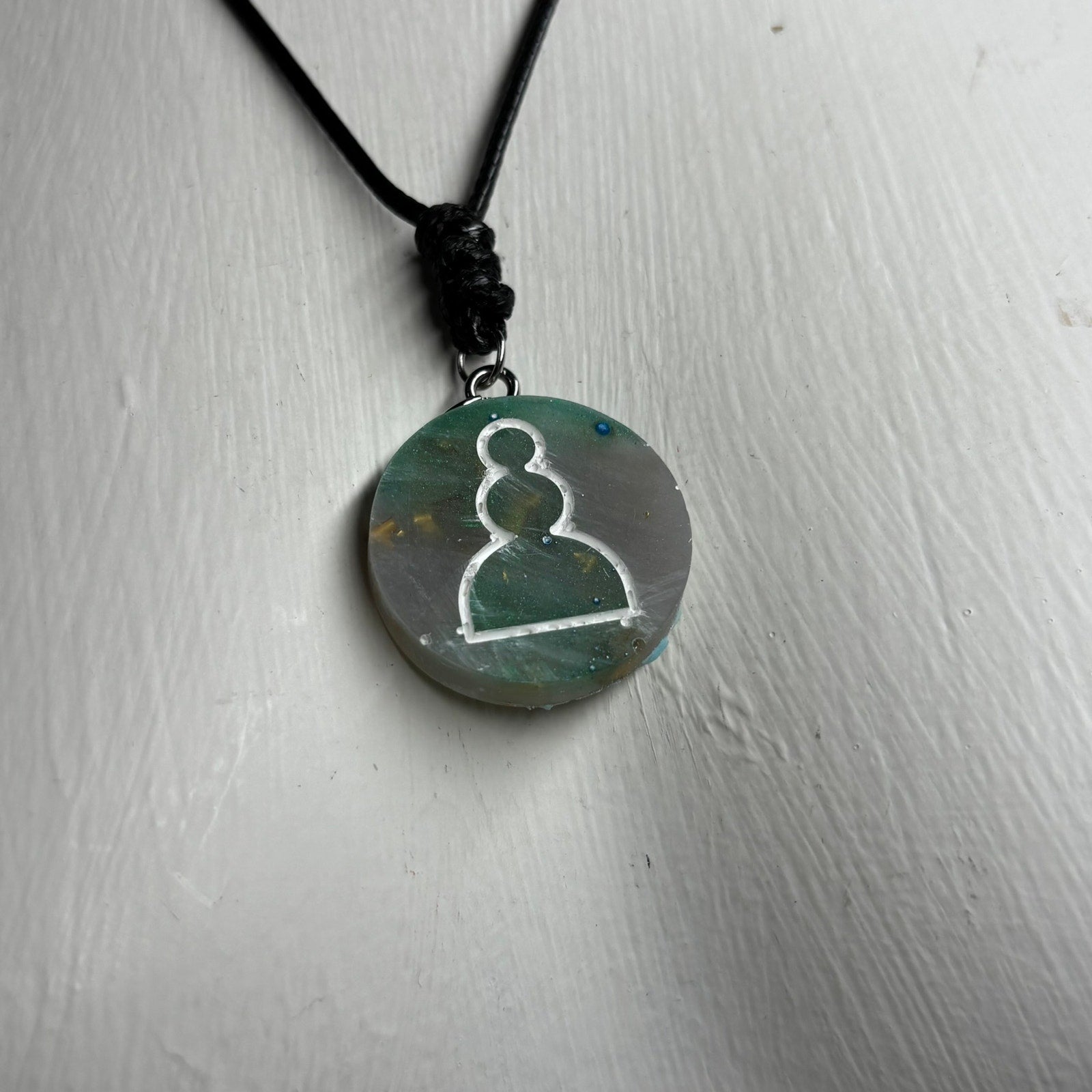 Moon Green Pawn - Handmade Resin Chess Necklace