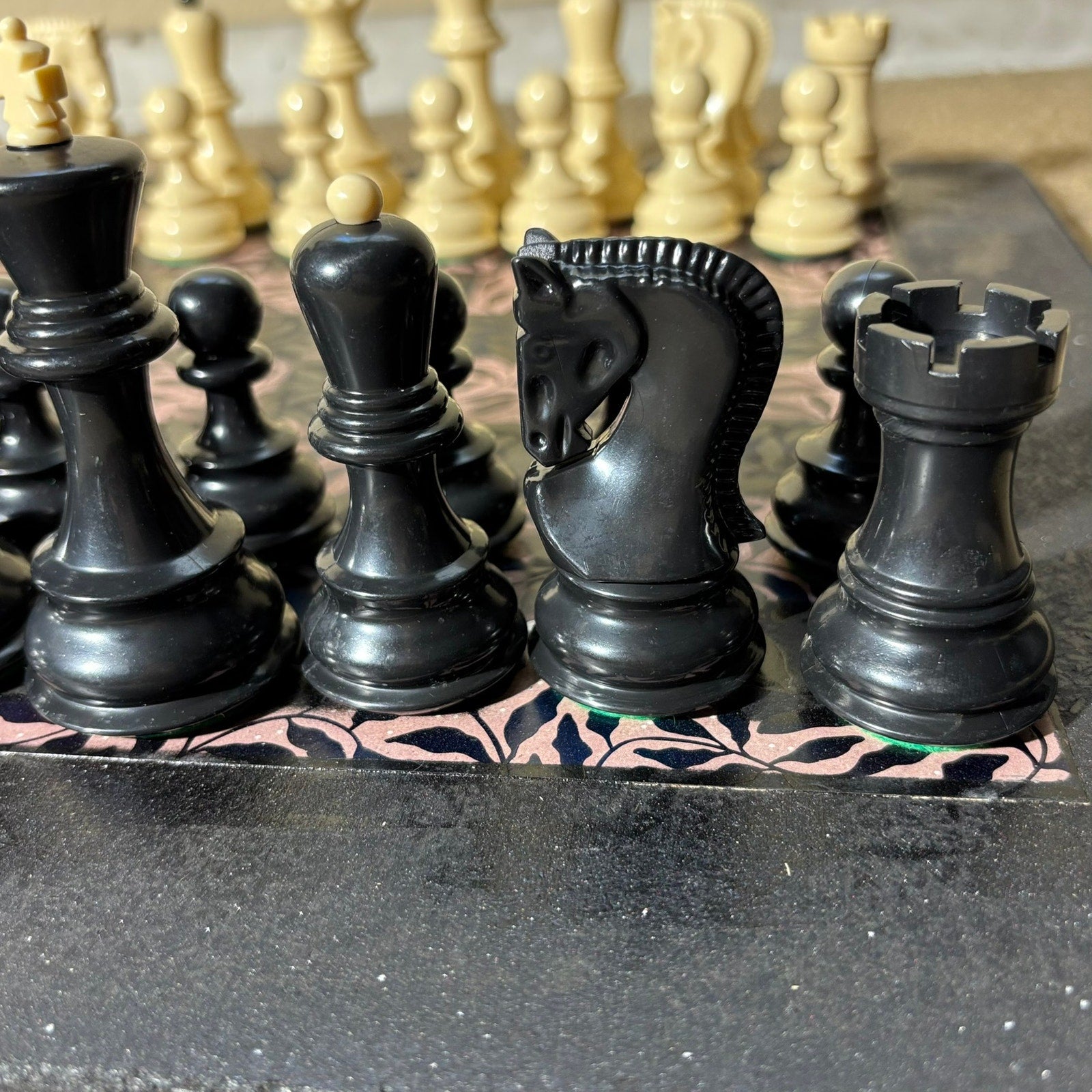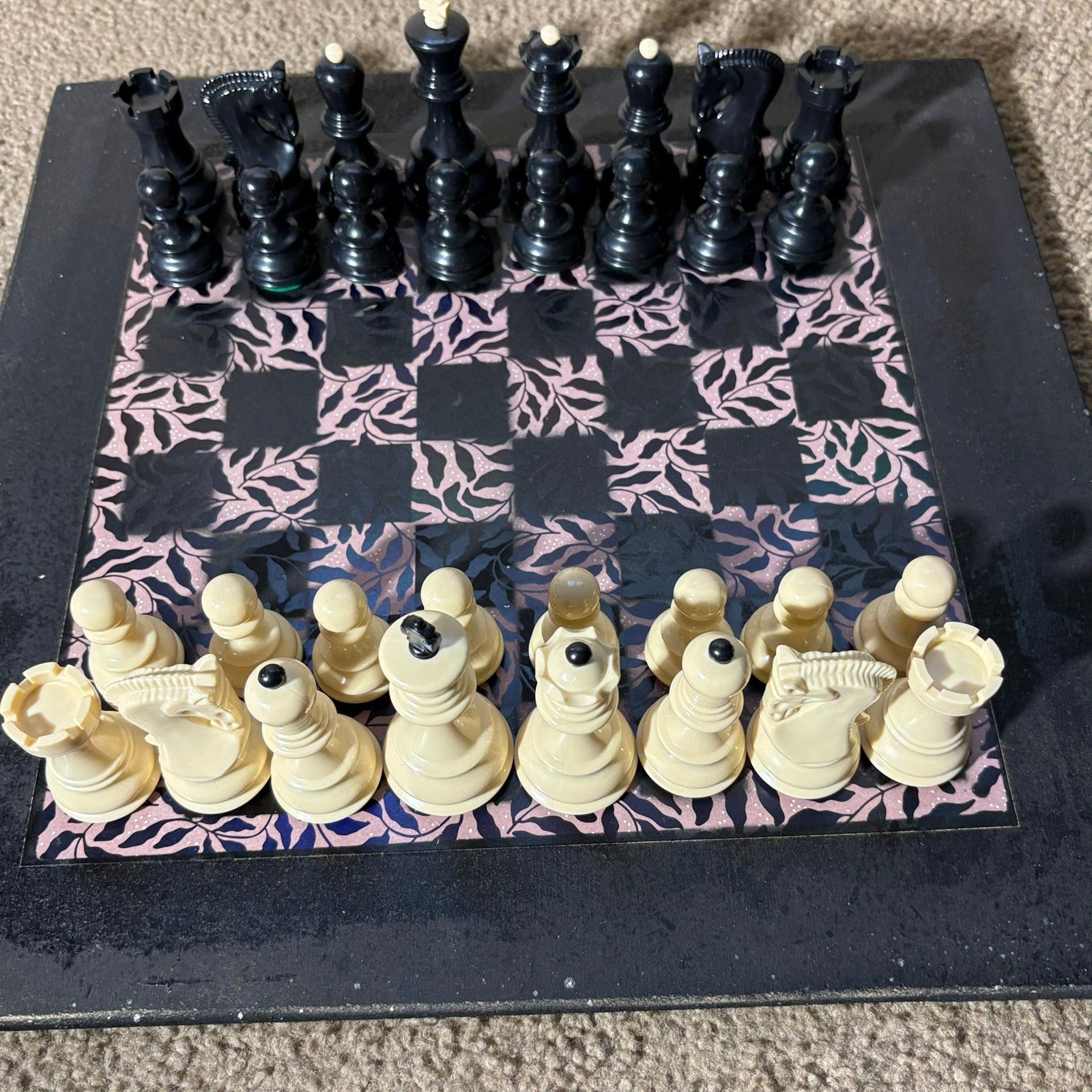 This unique chess set is a one-of-a-kind creation, perfect for chess enthusiasts and collectors! The chess pieces are large and have triple weight and a extra Queen!
