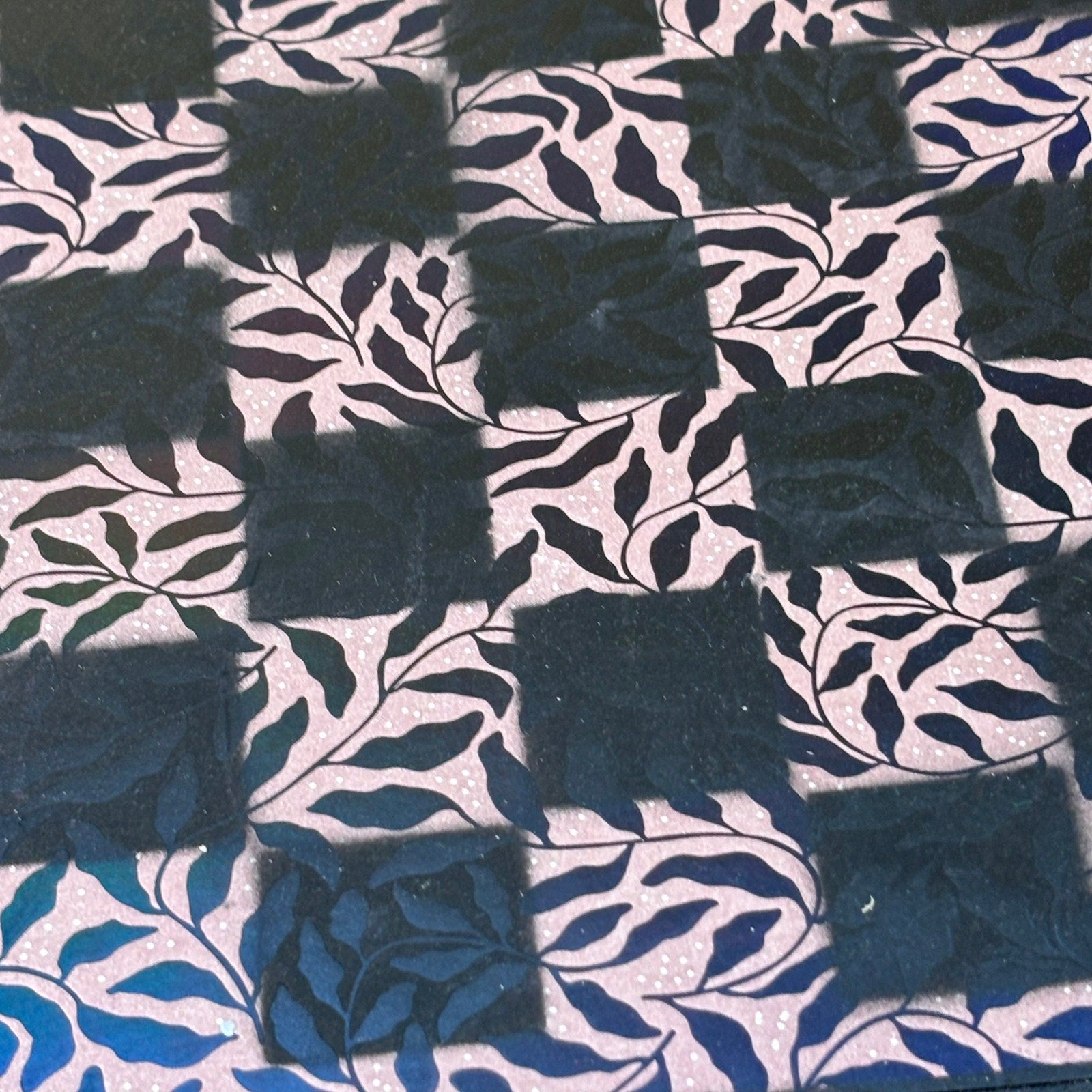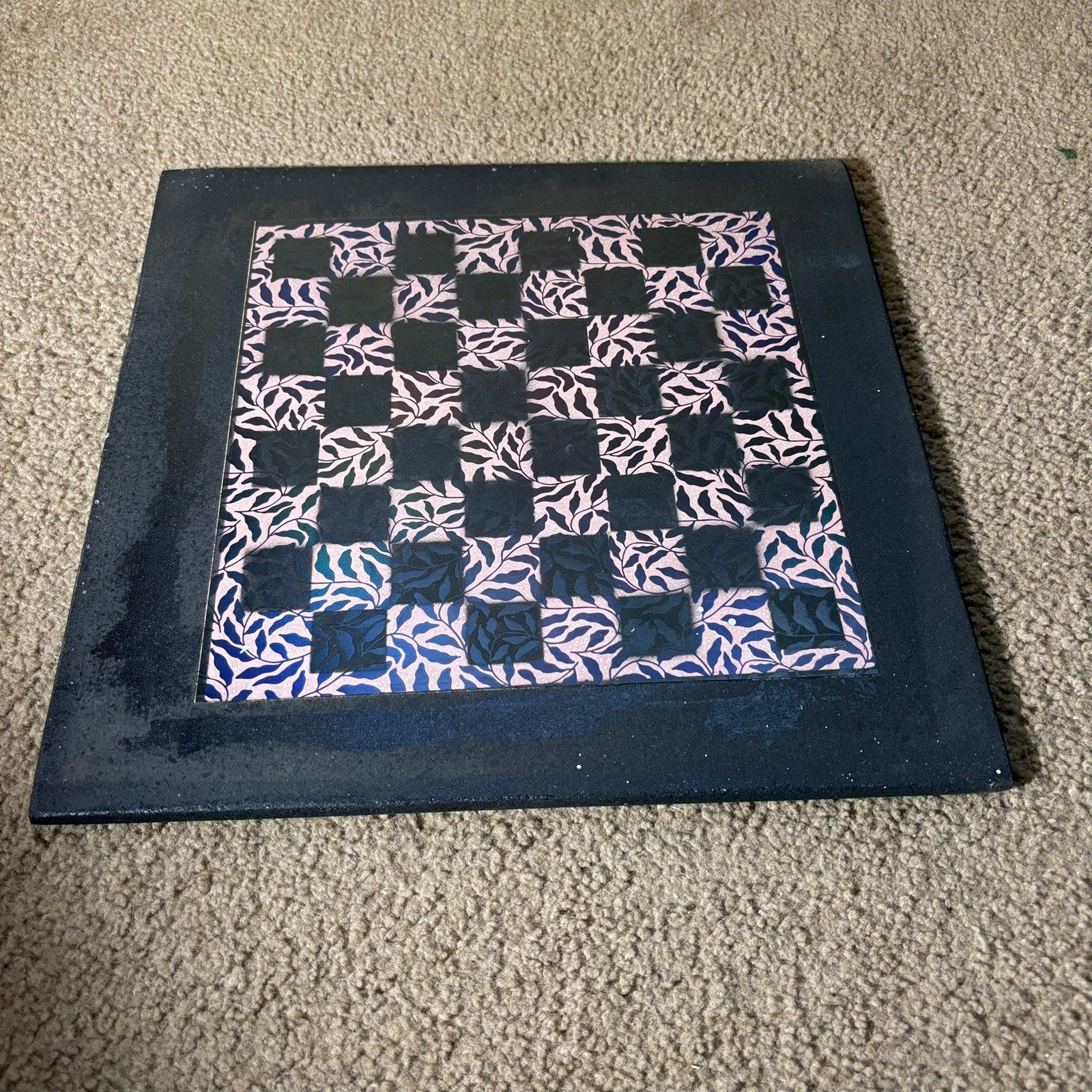The chessboard is crafted from a 16x16 inch particle board, featuring a 12x12 inch scrapbook paper playing area. Both the board and squares are hand-painted with care, making each set truly unique. Add a touch of artistry to your game night with this beautiful chess set!