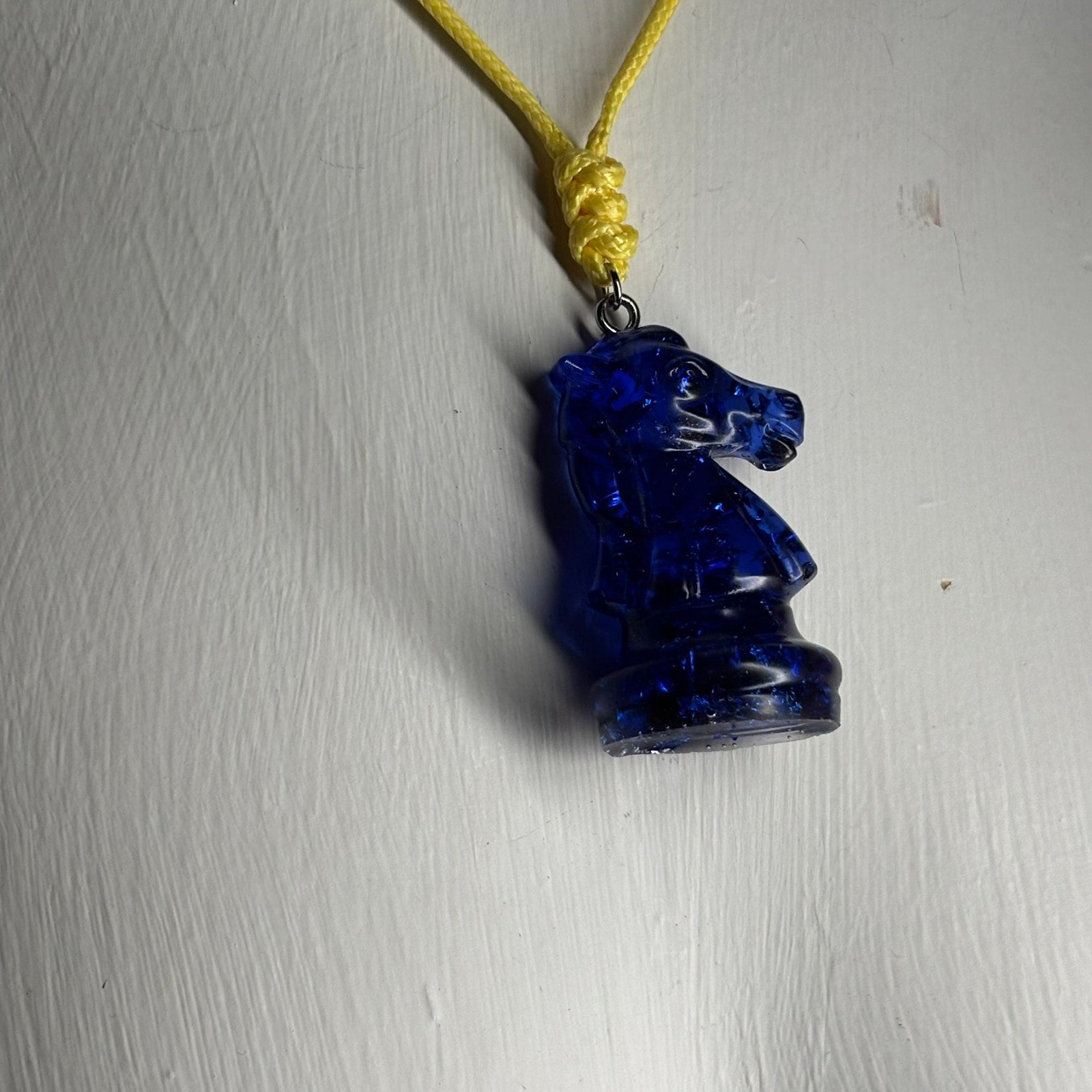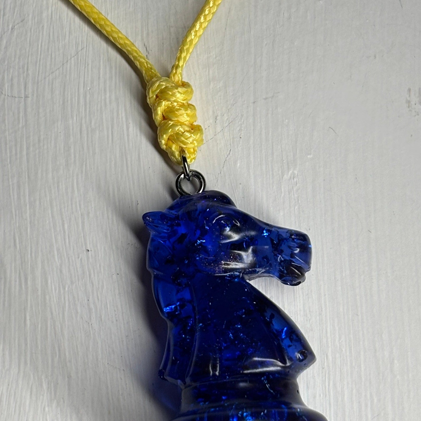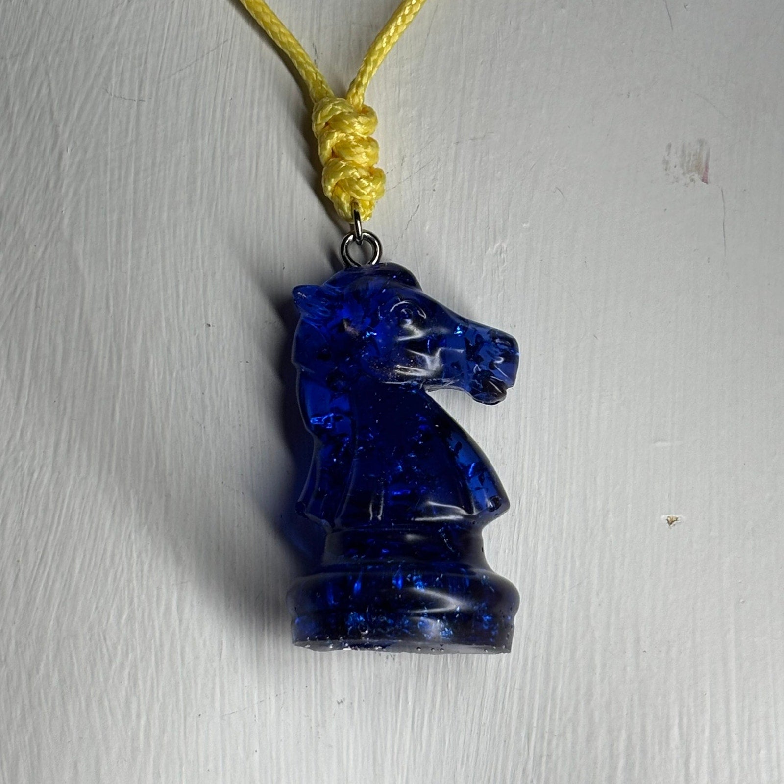 Navy Blue Knight - Handmade Resin Chess Necklace