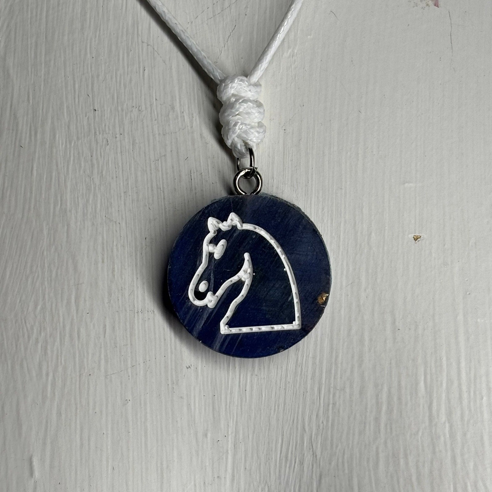Navy Blue Knight - Handmade Resin Chess Necklace - Flat Edition