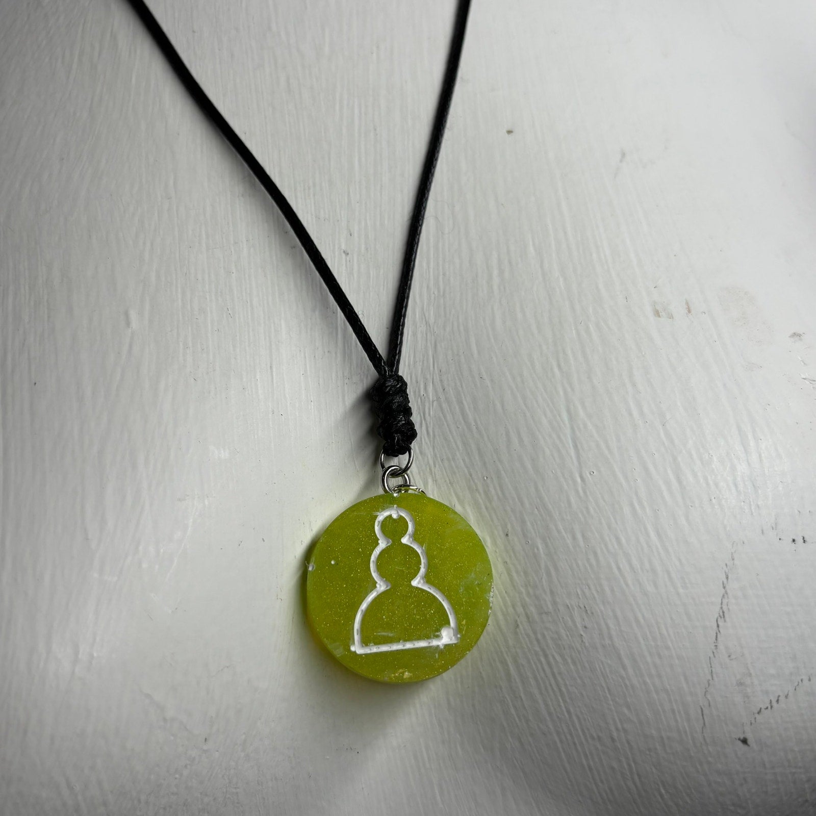 Neon Green Pawn - Handmade Resin Chess Necklace