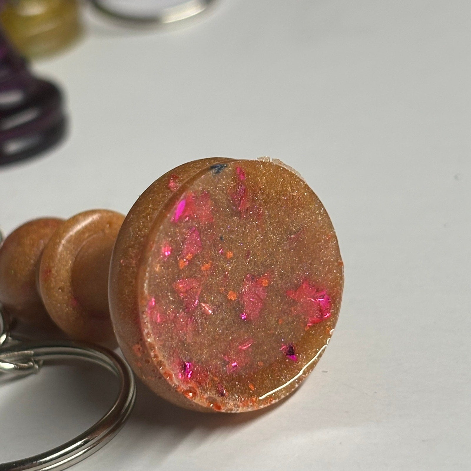 Each keychain is carefully crafted with high-quality resin, resulting in a durable and eye-catching piece. The design is completely unique, so you can be sure that no one else will have the exact same keychain.
