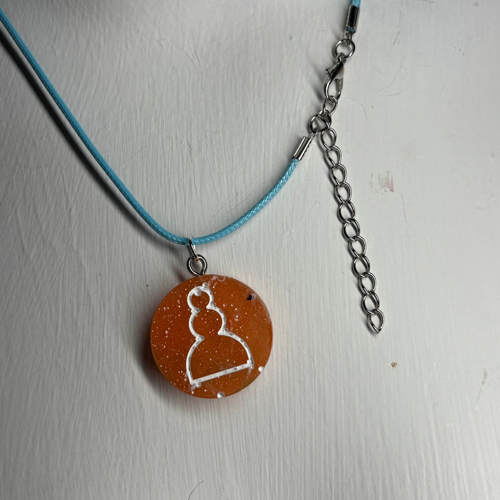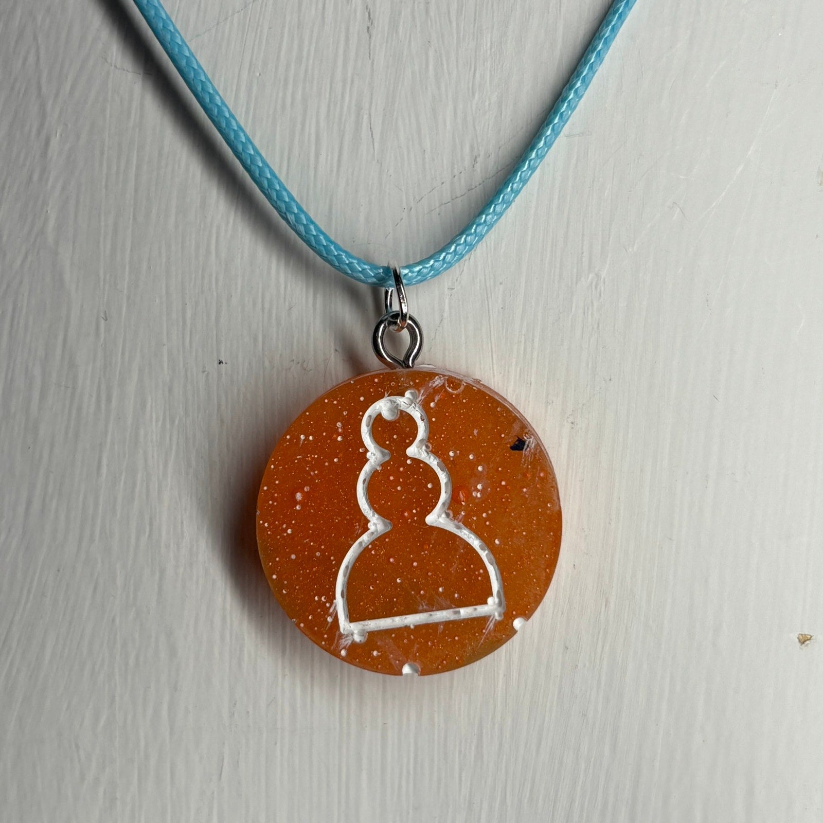 Orange/Blue Pawn - Handmade Resin Chess Necklace
