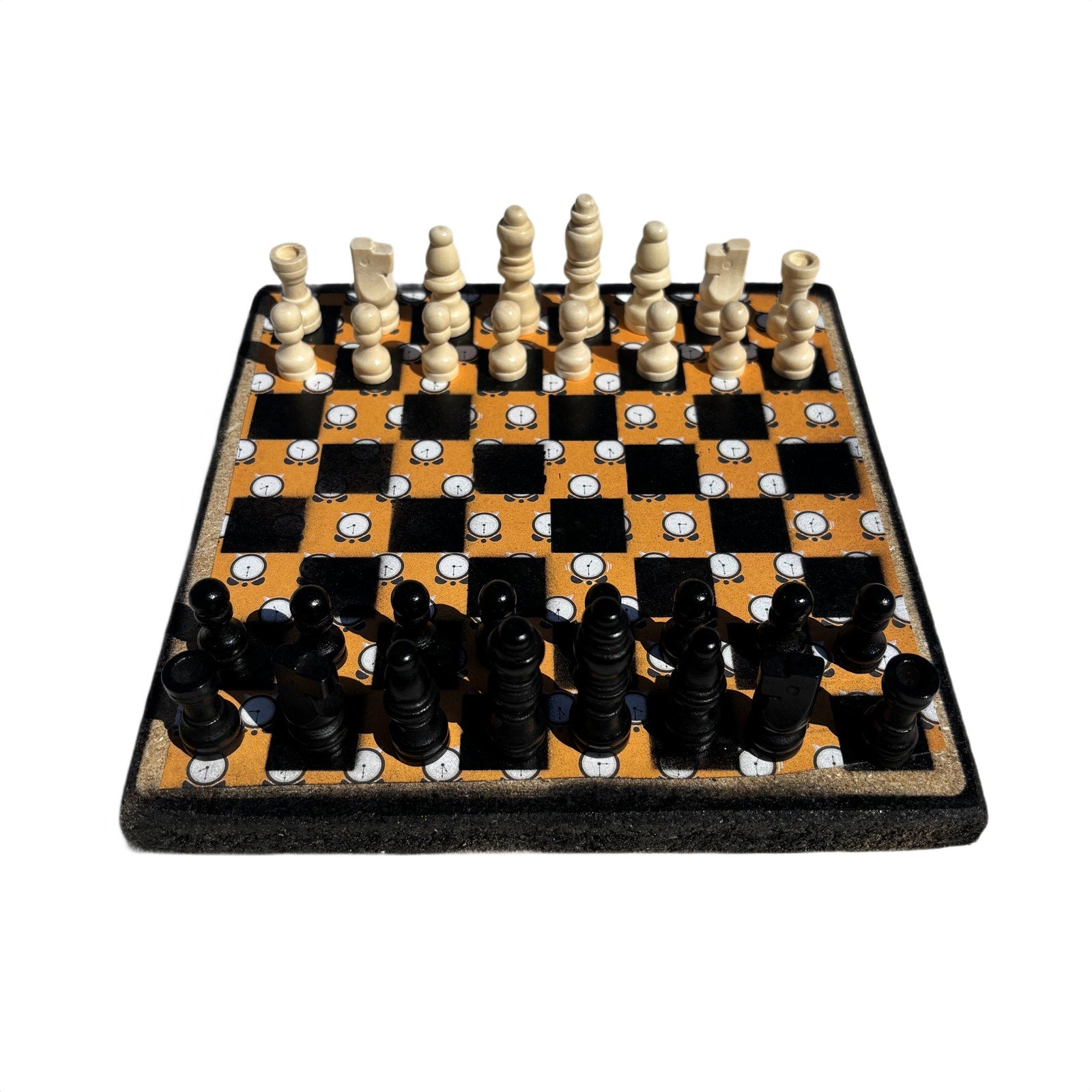 Introducing our exclusive Handcrafted Wooden Chess Set, meticulously designed with precision and care. Measuring 8 inches by 8 inches, this chess set features a beautifully painted particle board layered with a sheet of scrapbook paper board that doubles as a work of art. Each set is a unique, one-of-a-kind creation, crafted by hand to ensure that no two sets are alike. Elevate your gaming experience with this exceptional chess set that combines vibrant design with the touch of artisan craftsmanship. This chess board comes with chess pieces and is handcrafted as a one of one
