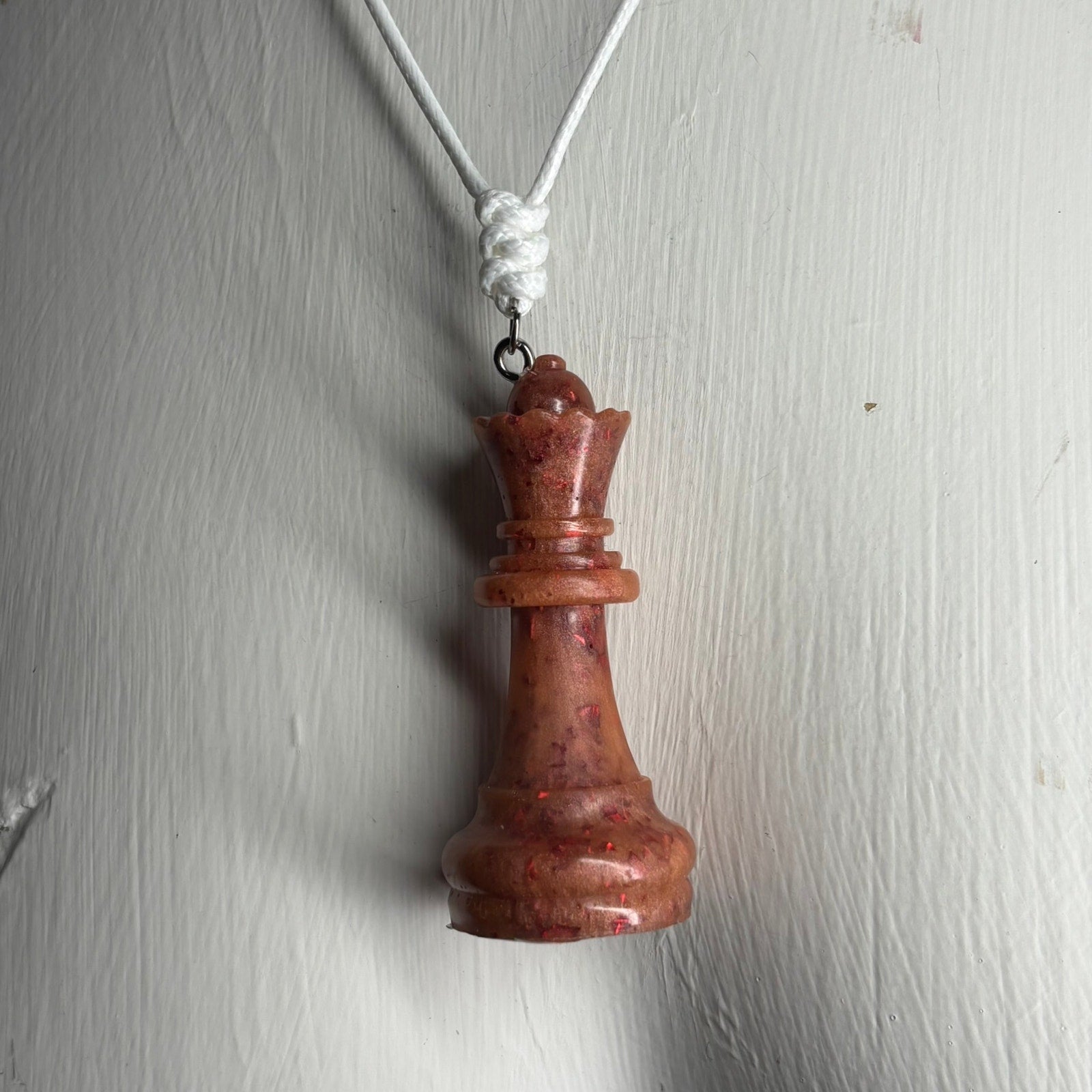 Add a touch of strategy and style to your look with this unique, handcrafted chess pendant necklace! Each necklace features a resin chess piece pendant, lovingly handmade to ensure quality and individuality.