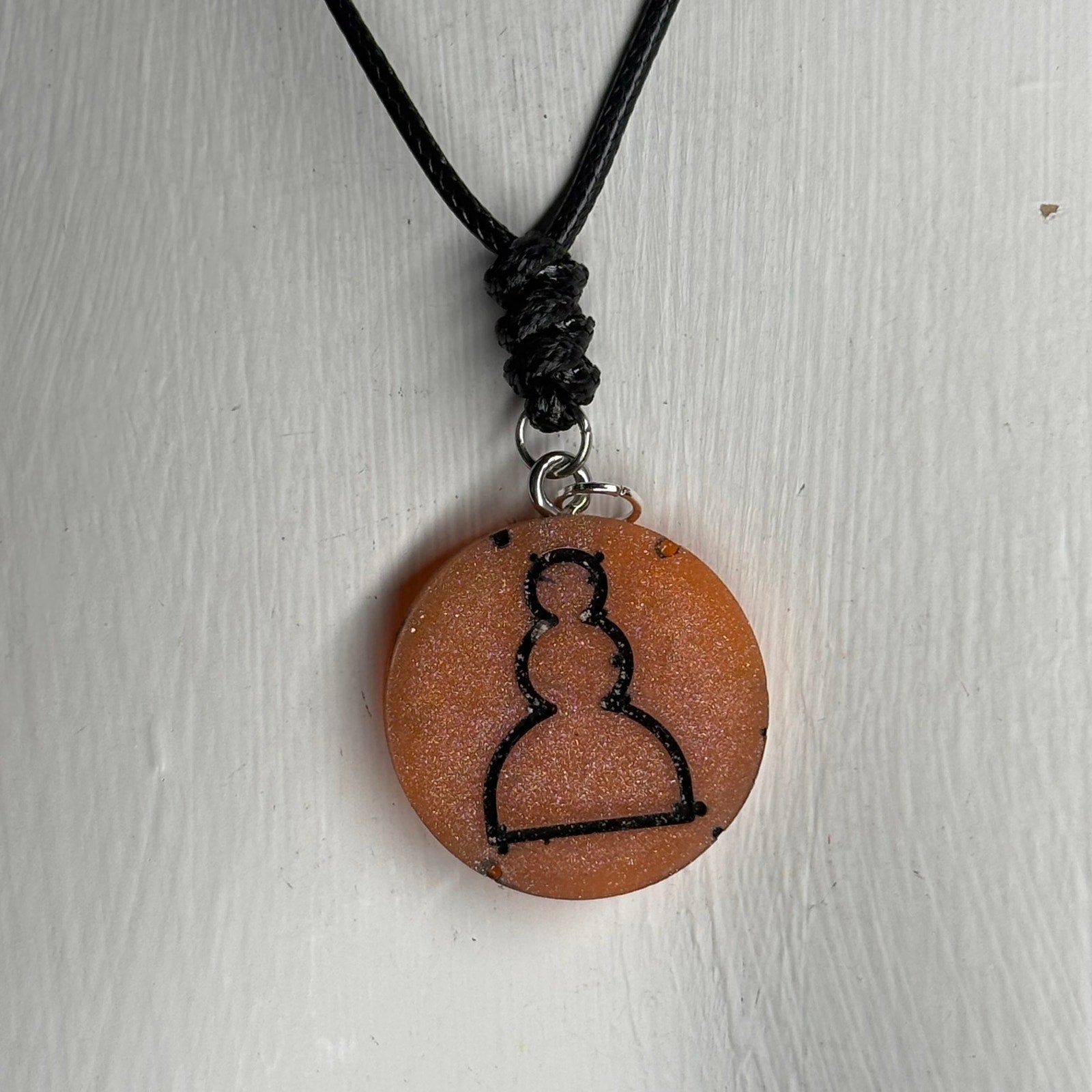 Add a touch of strategy and style to your look with this unique, handcrafted chess pendant necklace! Each necklace features a resin chess piece pendant, lovingly handmade to ensure quality and individuality.