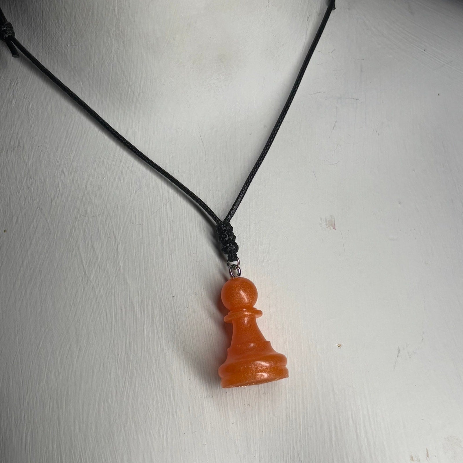 Add a touch of strategy and style to your look with this unique, handcrafted chess pendant necklace! Each necklace features a resin chess piece pendant, lovingly handmade to ensure quality and individuality.