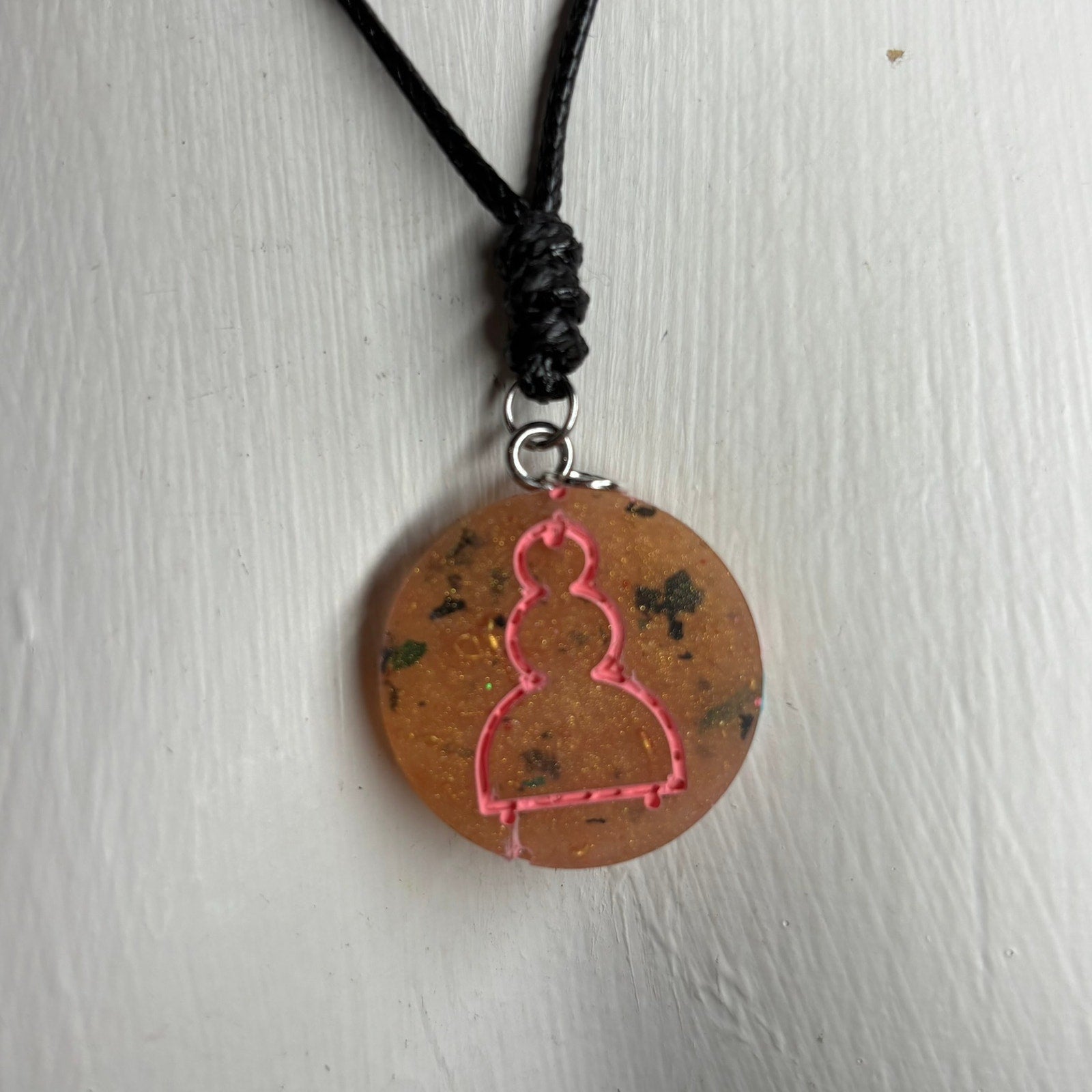 Orange/Pink Pawn - Handmade Resin Chess Necklace
