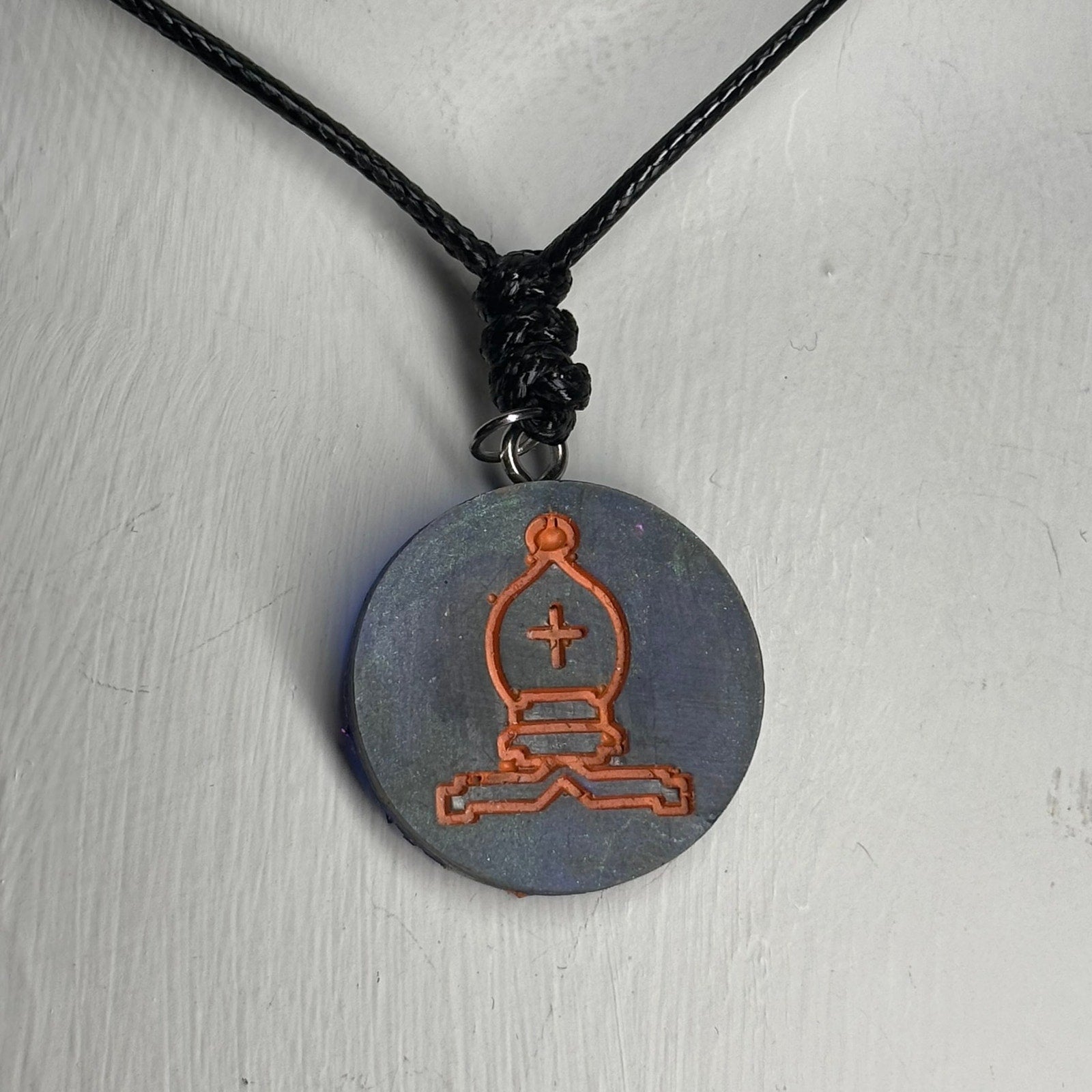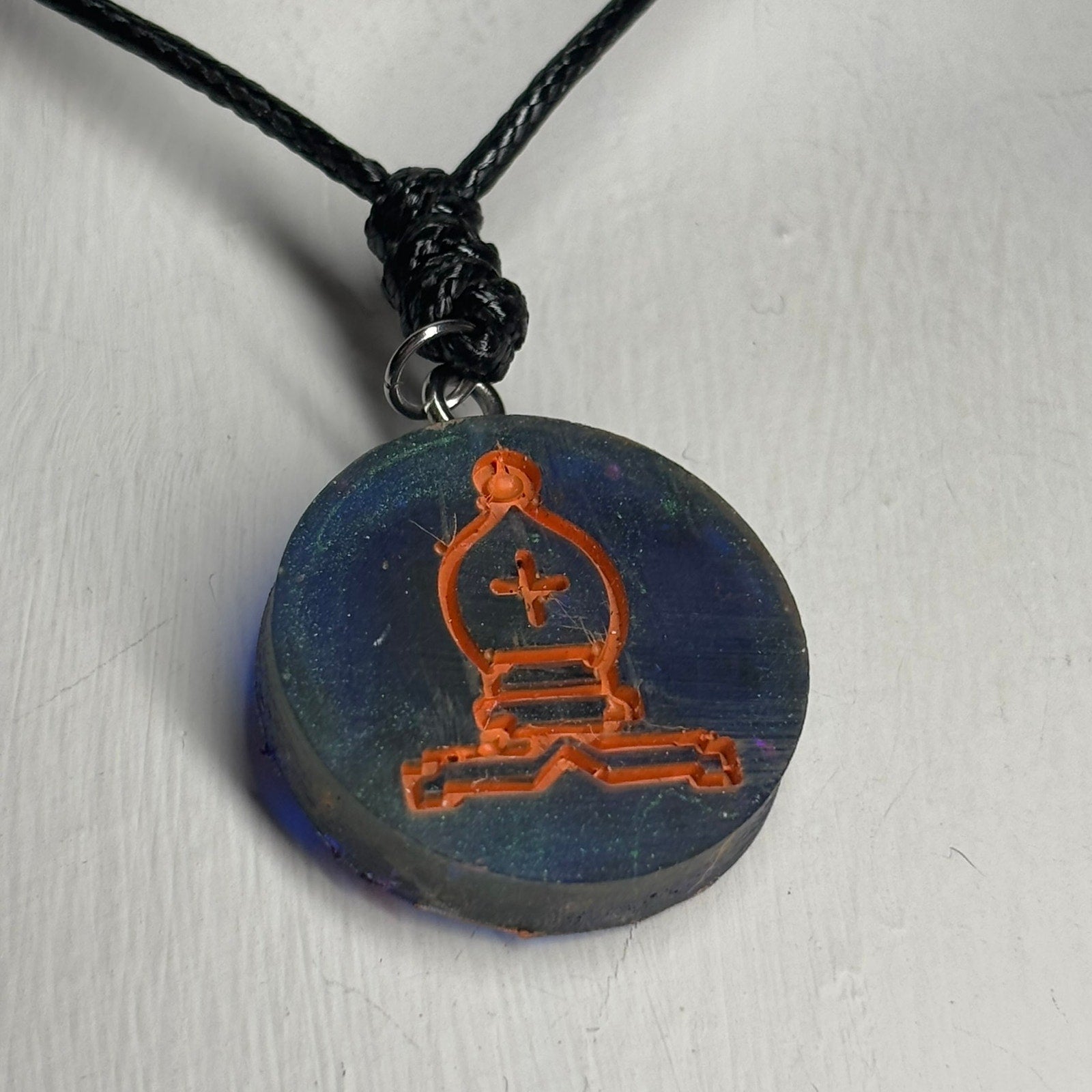 Orange Print Bishop - Handmade Resin Chess Necklace