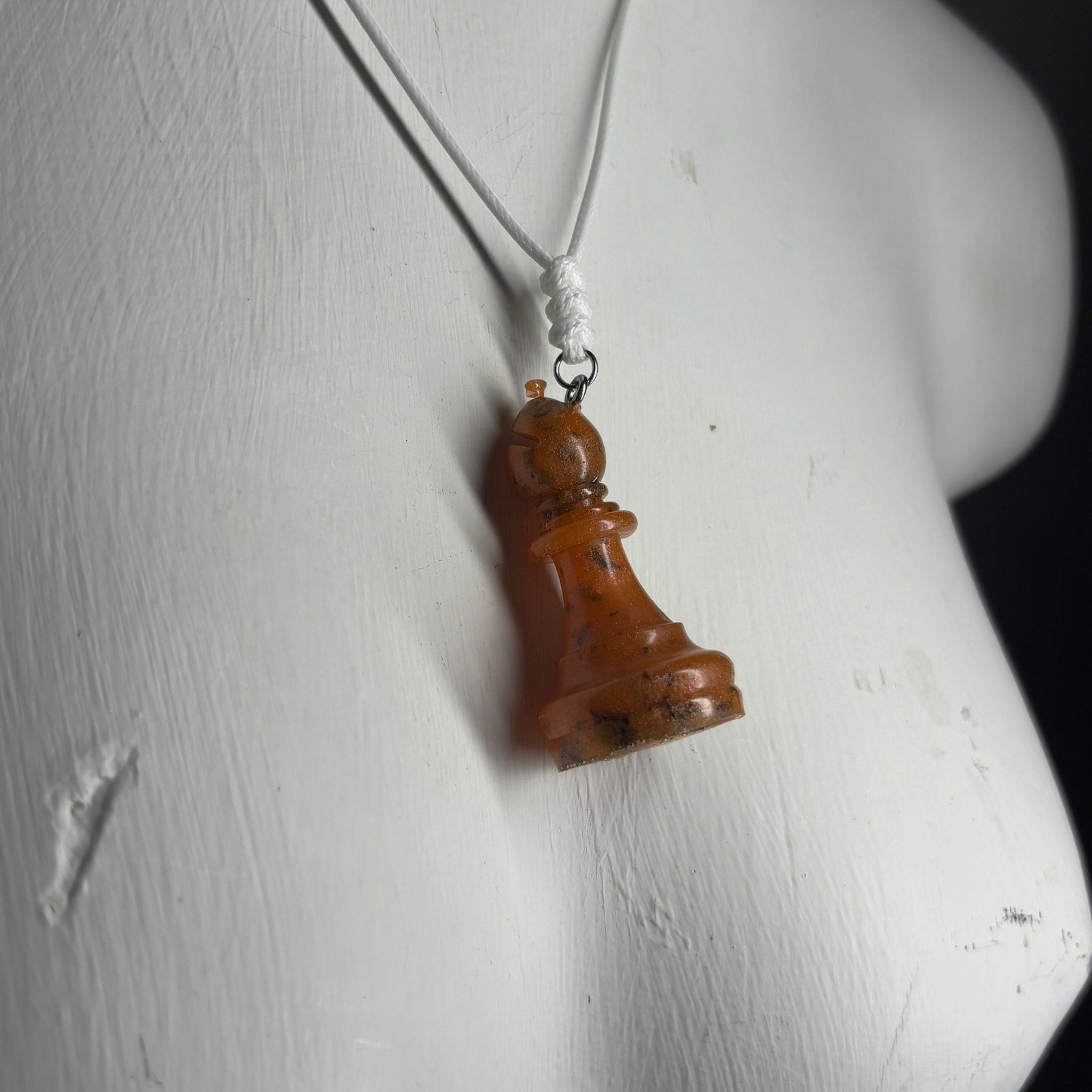 Add a touch of strategy and style to your look with this unique, handcrafted chess pendant necklace! Each necklace features a resin chess piece pendant, lovingly handmade to ensure quality and individuality.