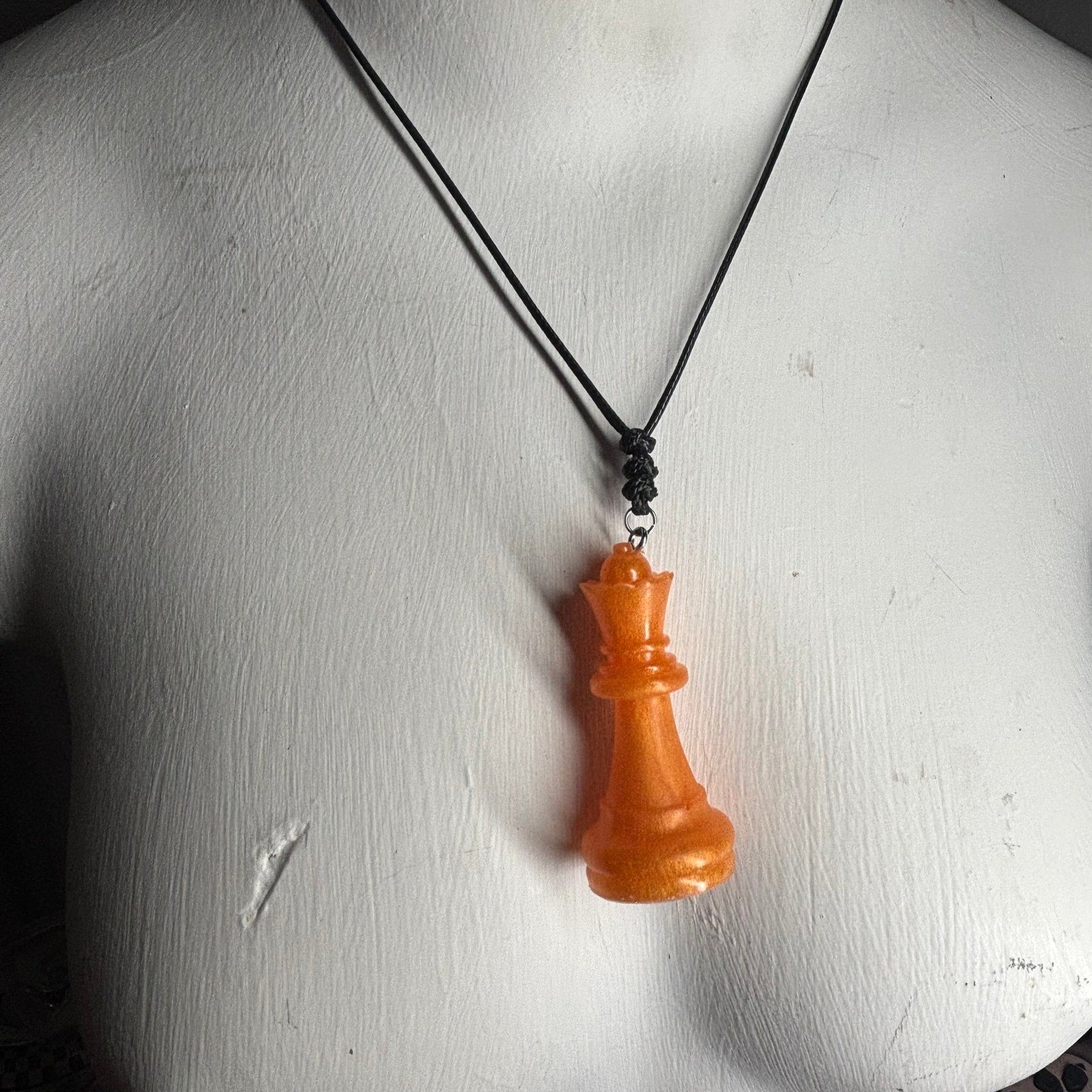 Add a touch of strategy and style to your look with this unique, handcrafted chess pendant necklace! Each necklace features a resin chess piece pendant, lovingly handmade to ensure quality and individuality.