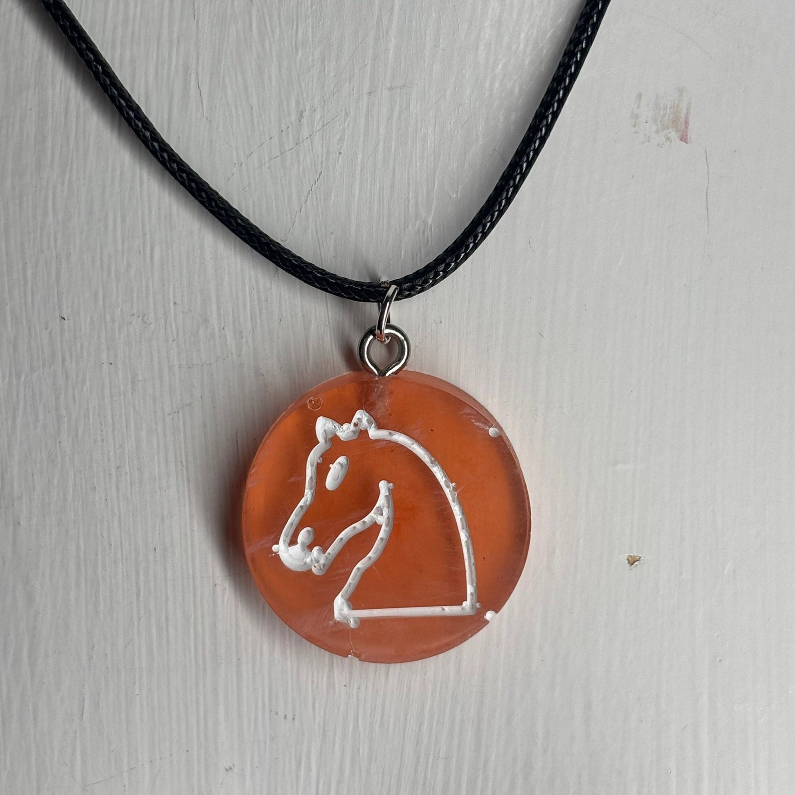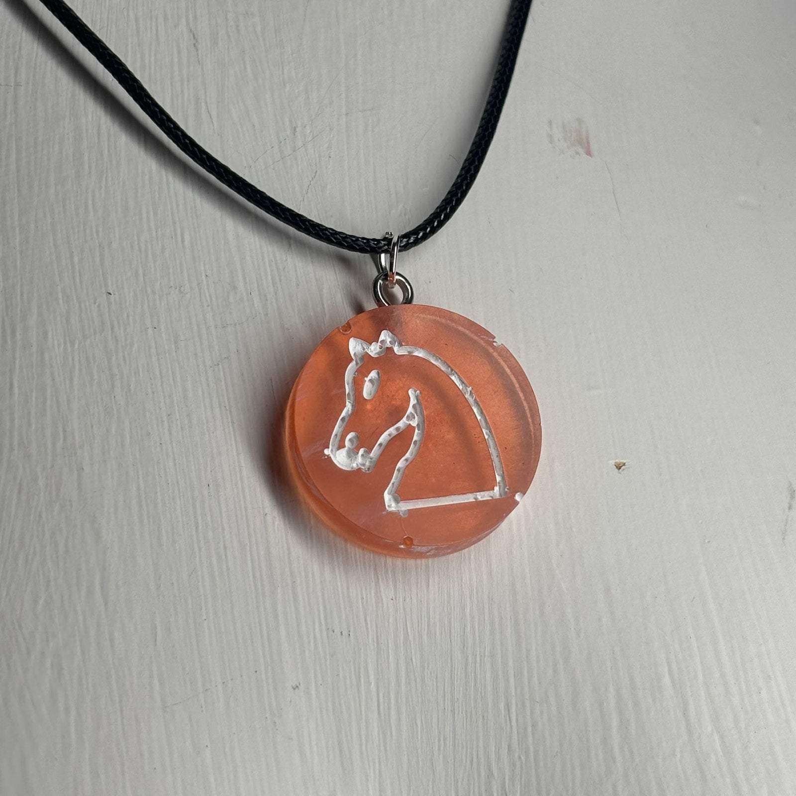 Orange Translucent Knight - Handmade Resin Chess Necklace