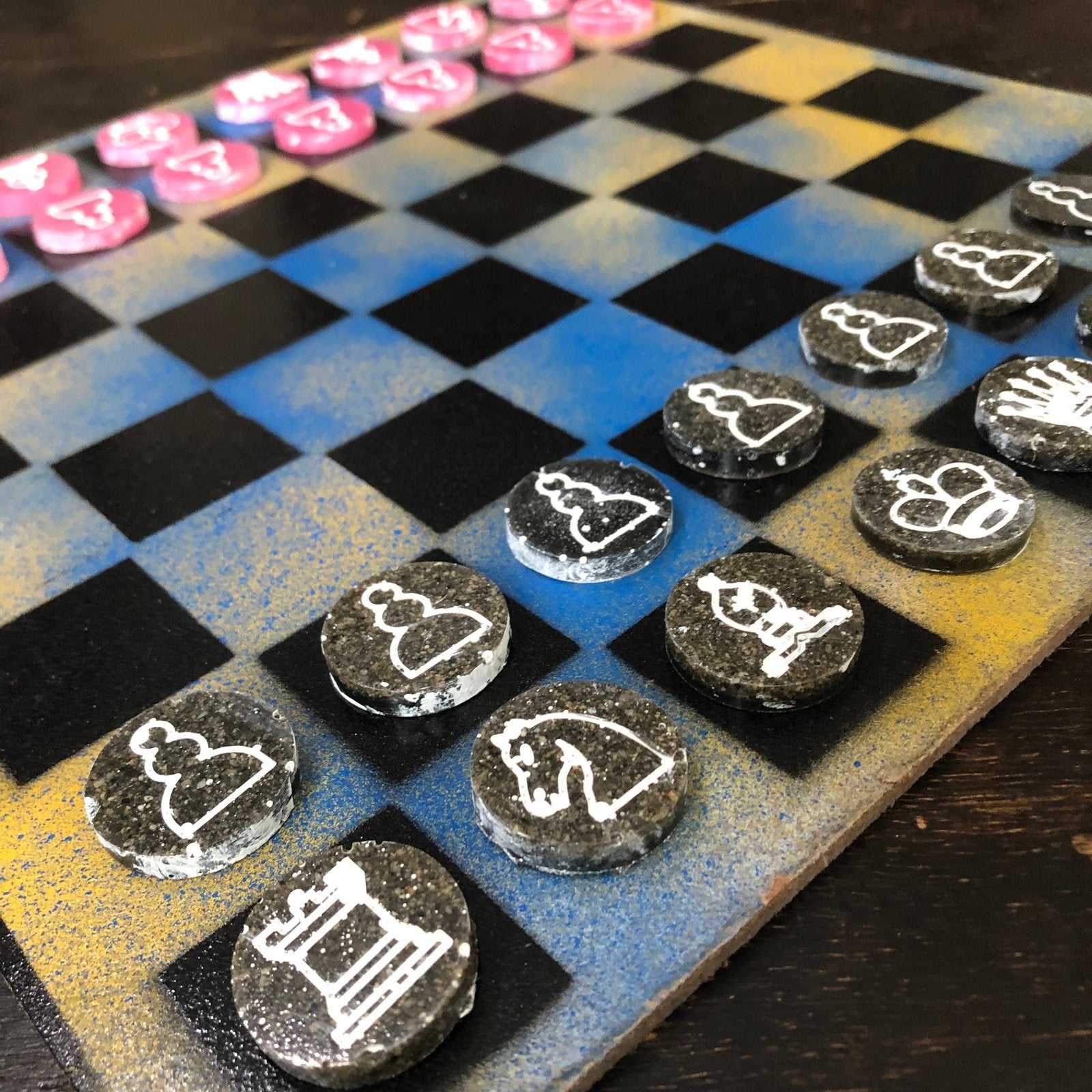 Introducing our exclusive Handcrafted Hardboard Chess Set, meticulously designed with precision and care. Measuring 12 inches by 12 inches, this chess set features a beautifully painted hardwood board that doubles as a work of art. Each set is a unique, one-of-a-kind creation, crafted by hand to ensure that no two sets are alike. Elevate your gaming experience with this exceptional chess set that combines vibrant design with the touch of artisan craftsmanship.