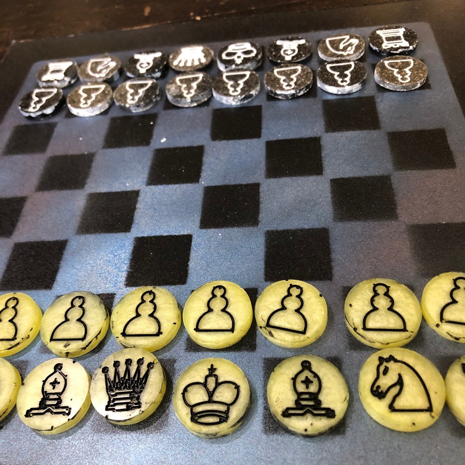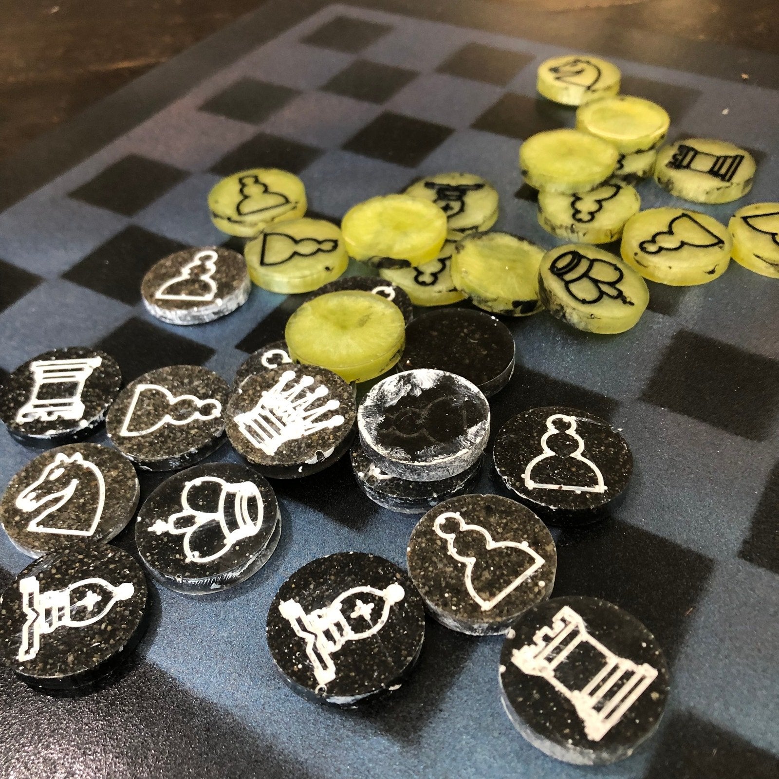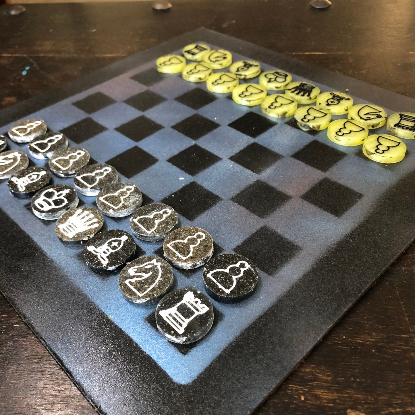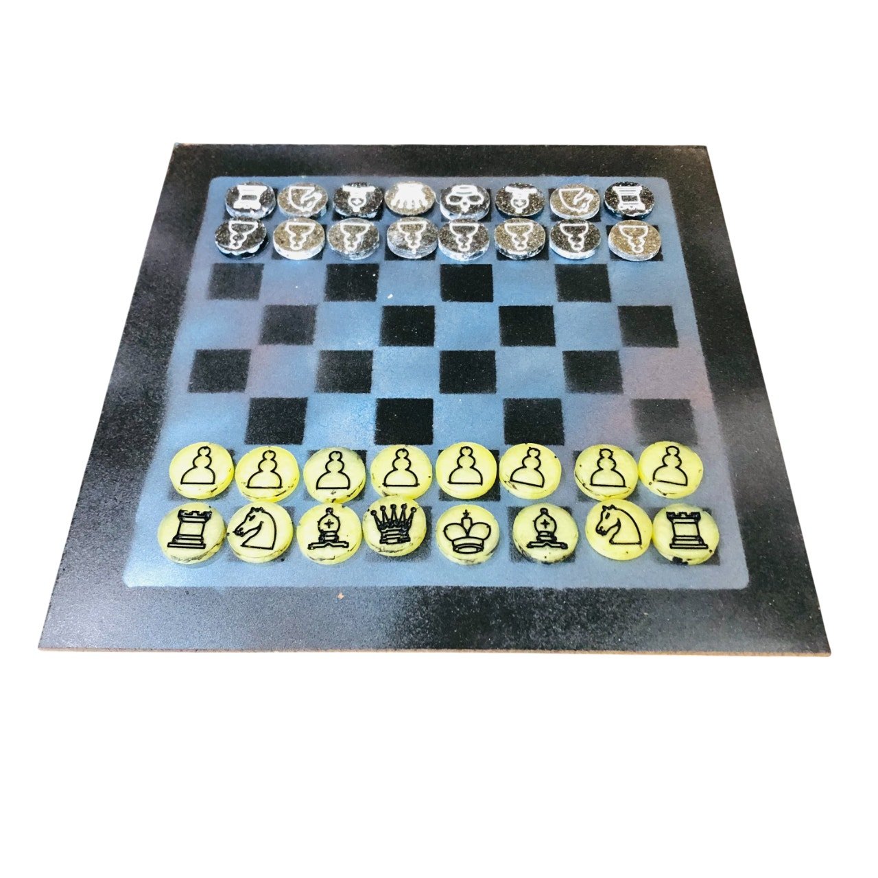 Introducing our exclusive Handcrafted Hardboard Chess Set, meticulously designed with precision and care. Measuring 12 inches by 12 inches, this chess set features a beautifully painted hardwood board that doubles as a work of art. Each set is a unique, one-of-a-kind creation, crafted by hand to ensure that no two sets are alike. Elevate your gaming experience with this exceptional chess set that combines vibrant design with the touch of artisan craftsmanship.