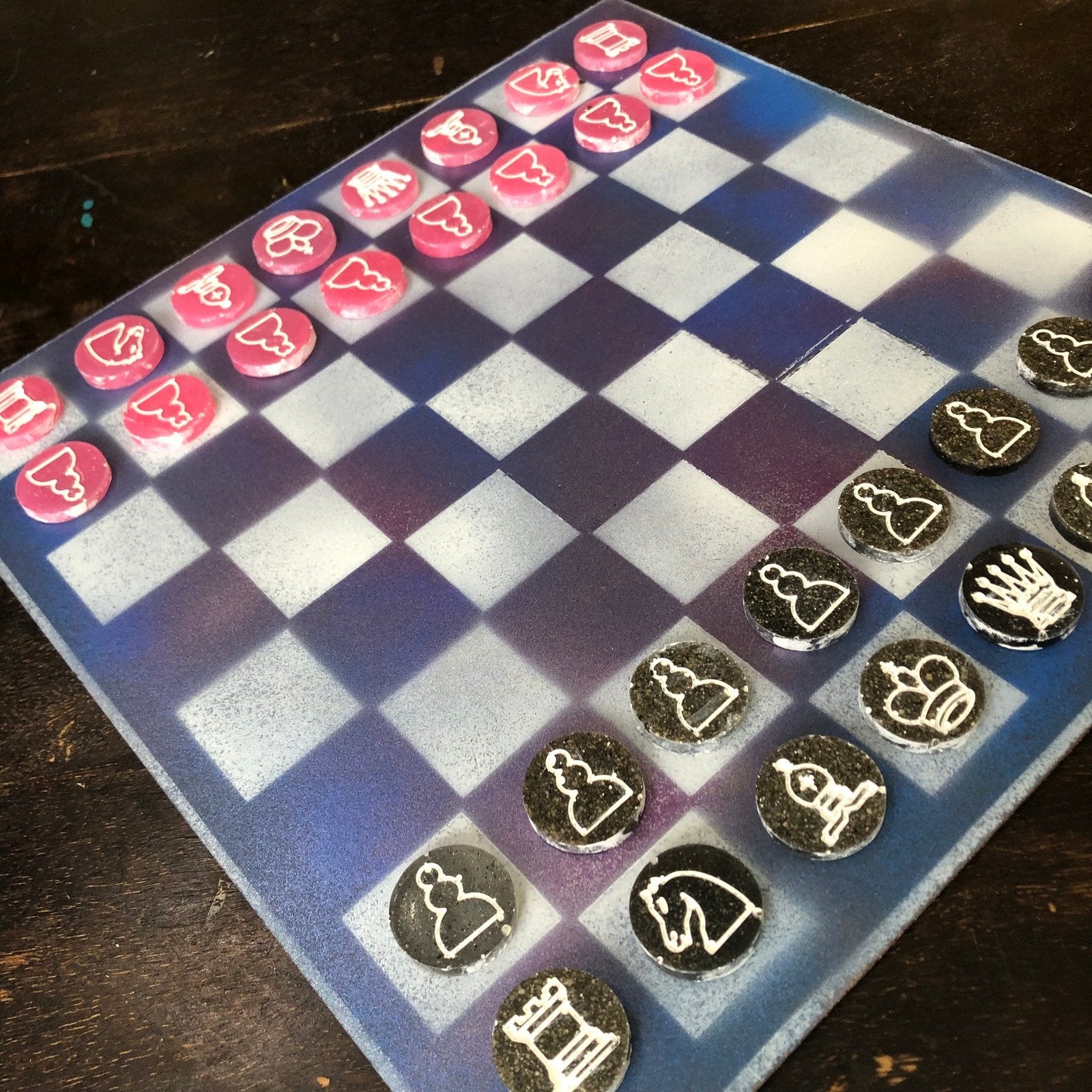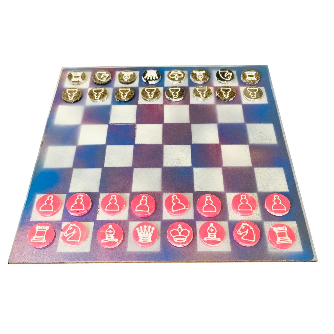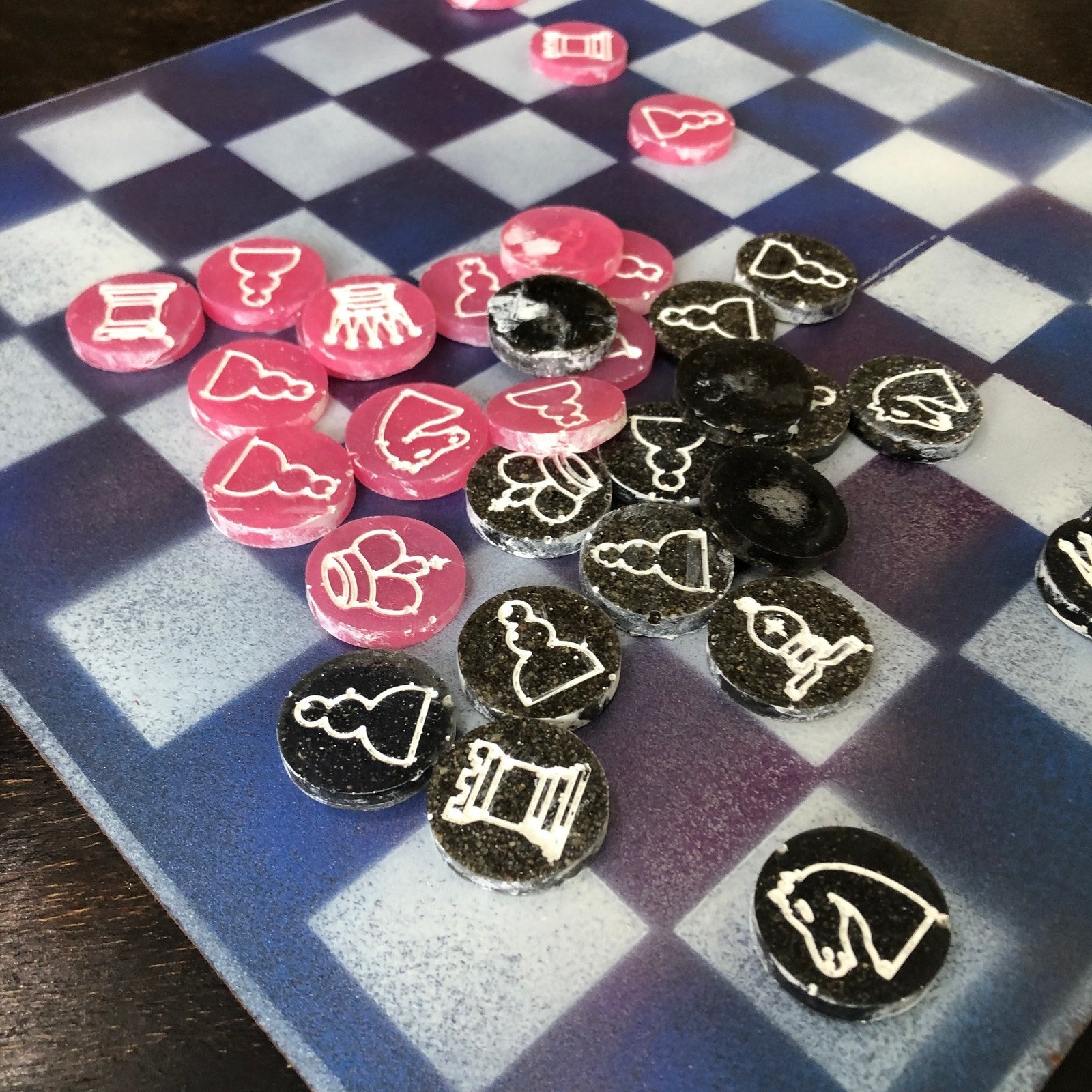Painted Chess Set - Blue Pink Slushy (Resin Pieces)