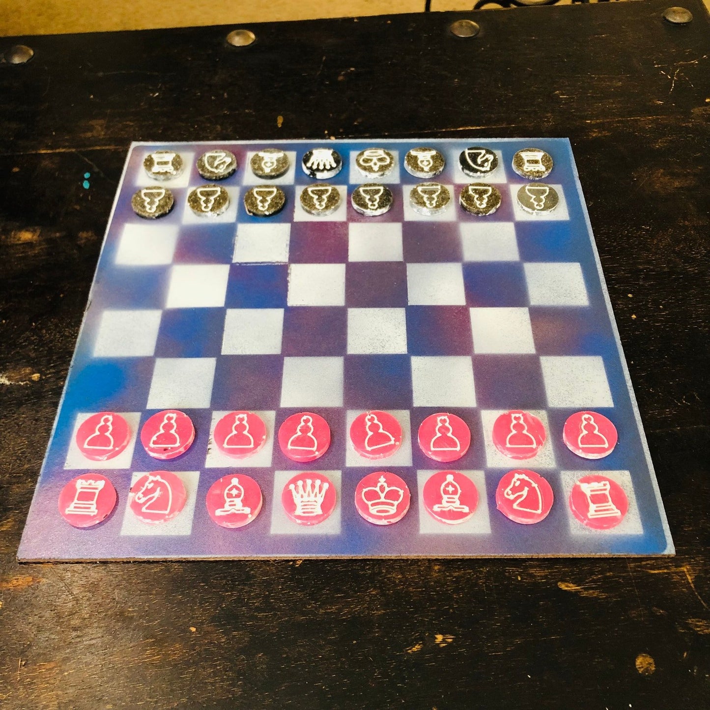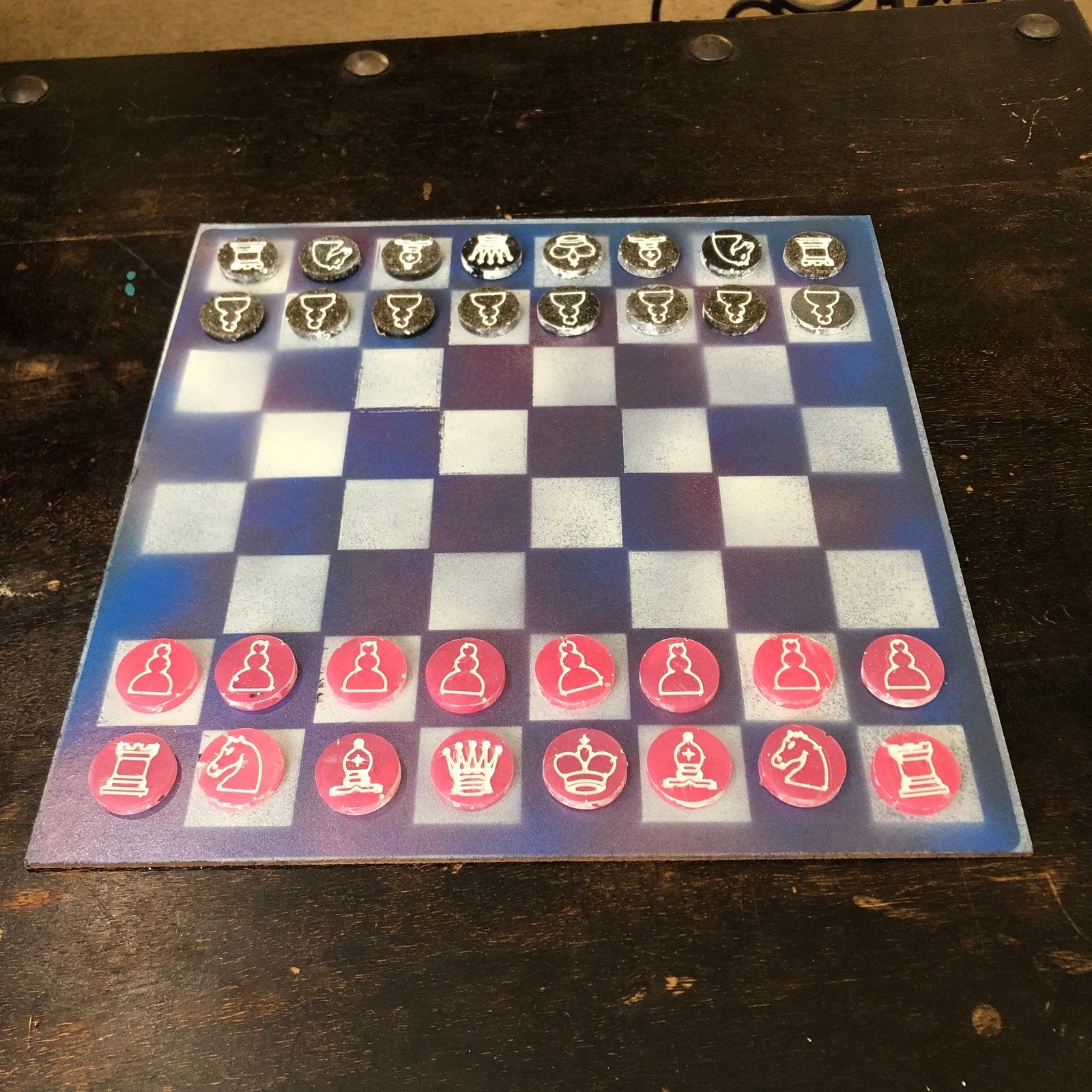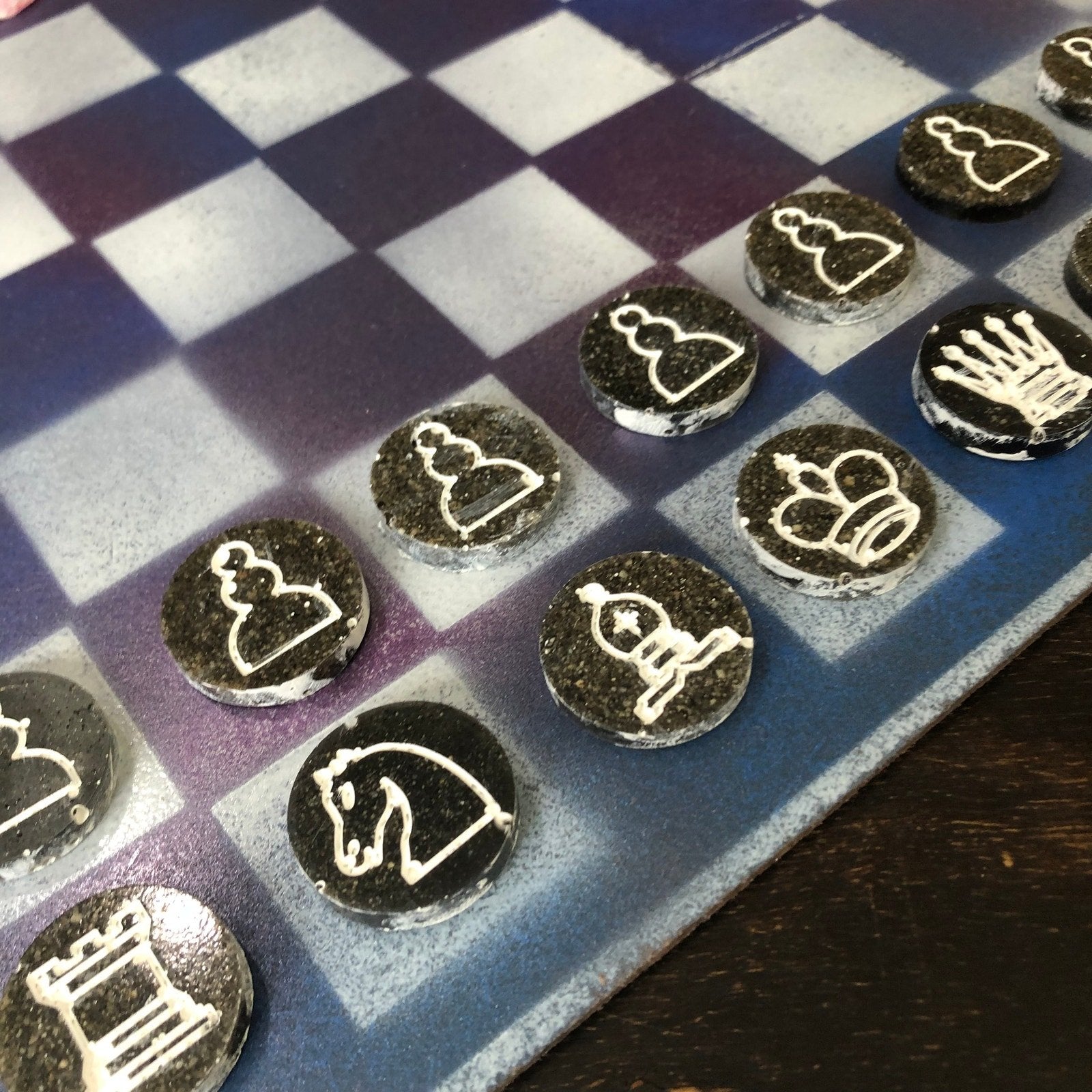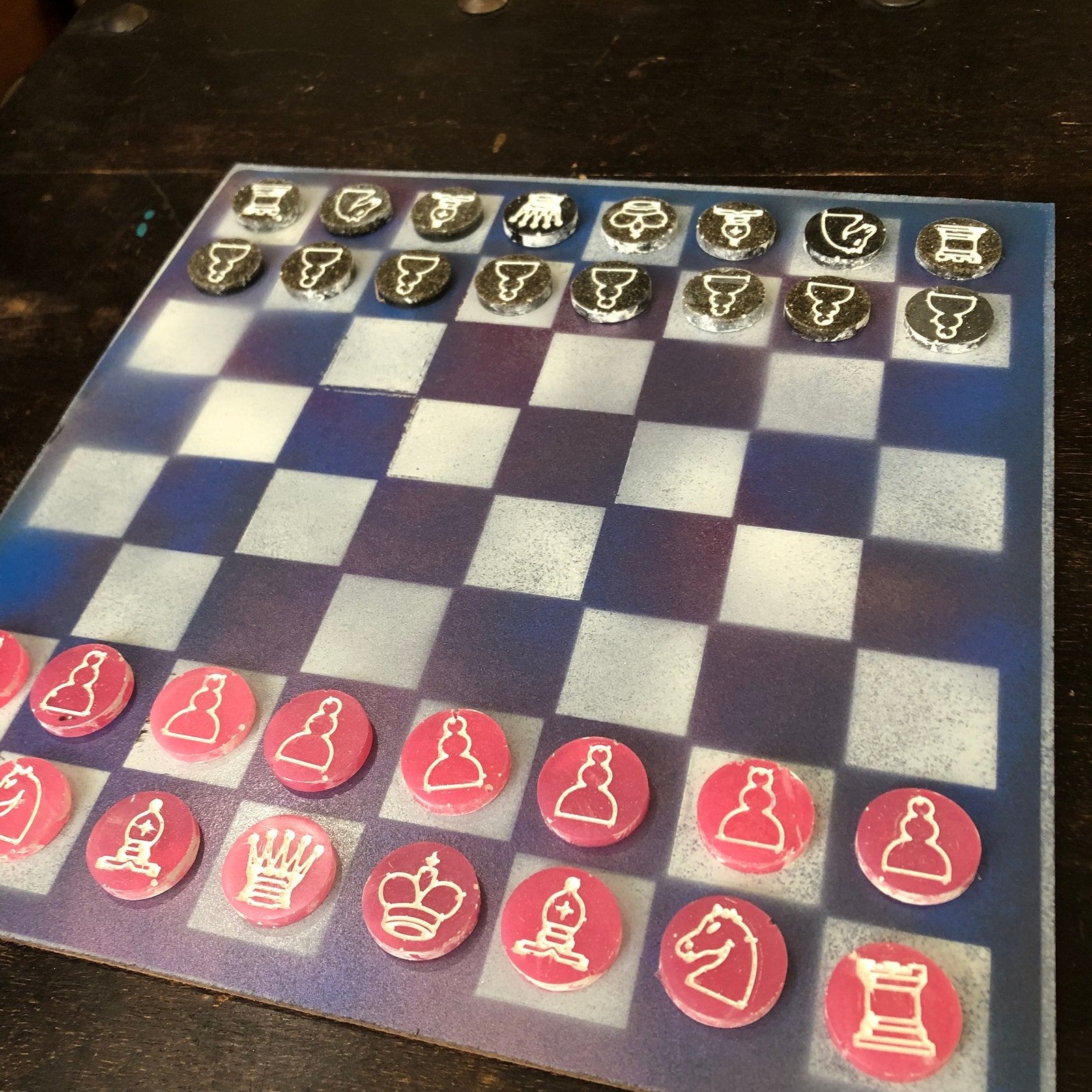 Painted Chess Set - Blue Pink Slushy (Resin Pieces)