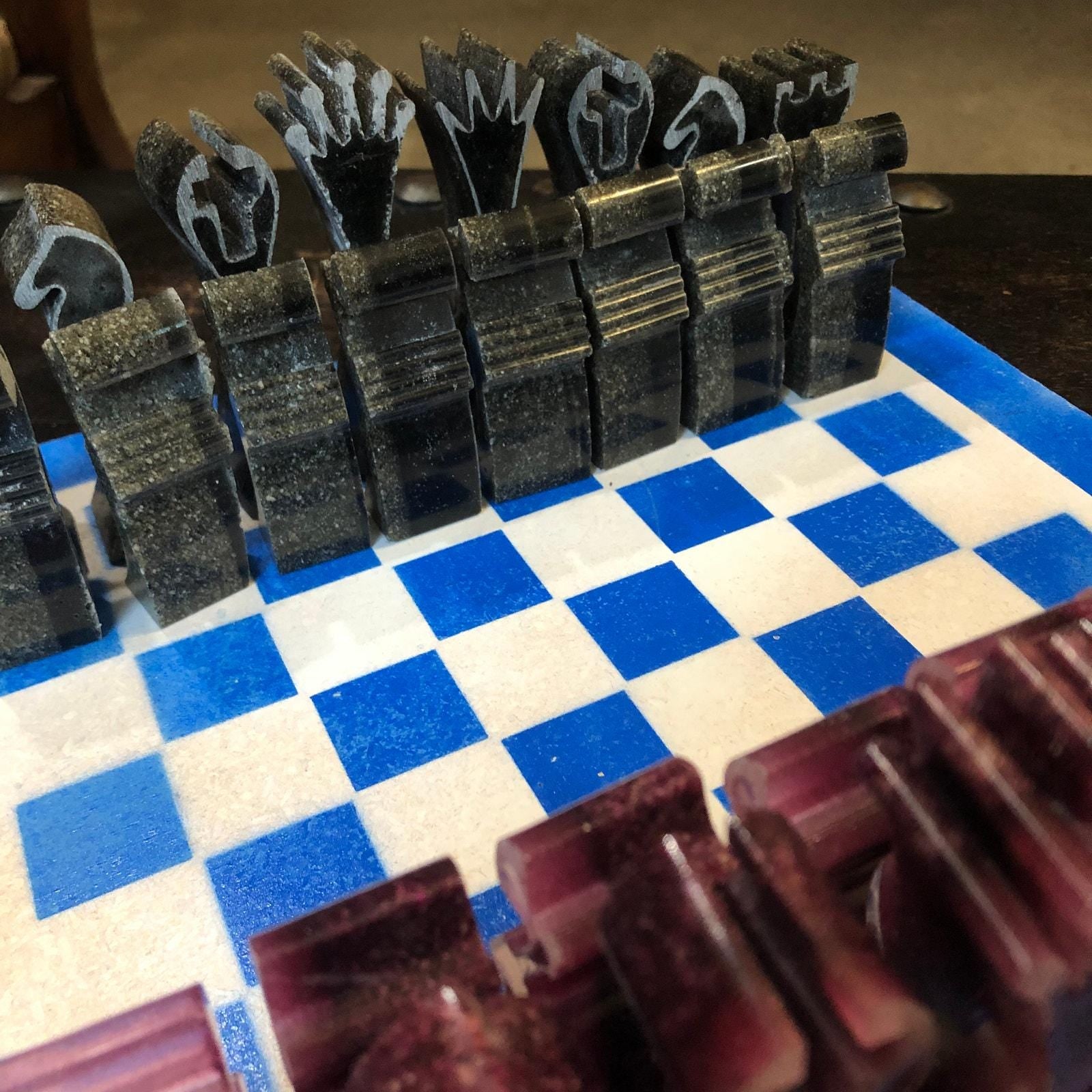 Introducing our exclusive Handcrafted Wooden Chess Set, meticulously designed with precision and care. Measuring 12 inches by 12 inches, this chess set features a beautifully painted Particle Board board that doubles as a work of art. Each set is a unique, one-of-a-kind creation, crafted by hand to ensure that no two sets are alike. Elevate your gaming experience with this exceptional chess set that combines vibrant design with the touch of artisan craftsmanship. This chess board comes with chess pieces.