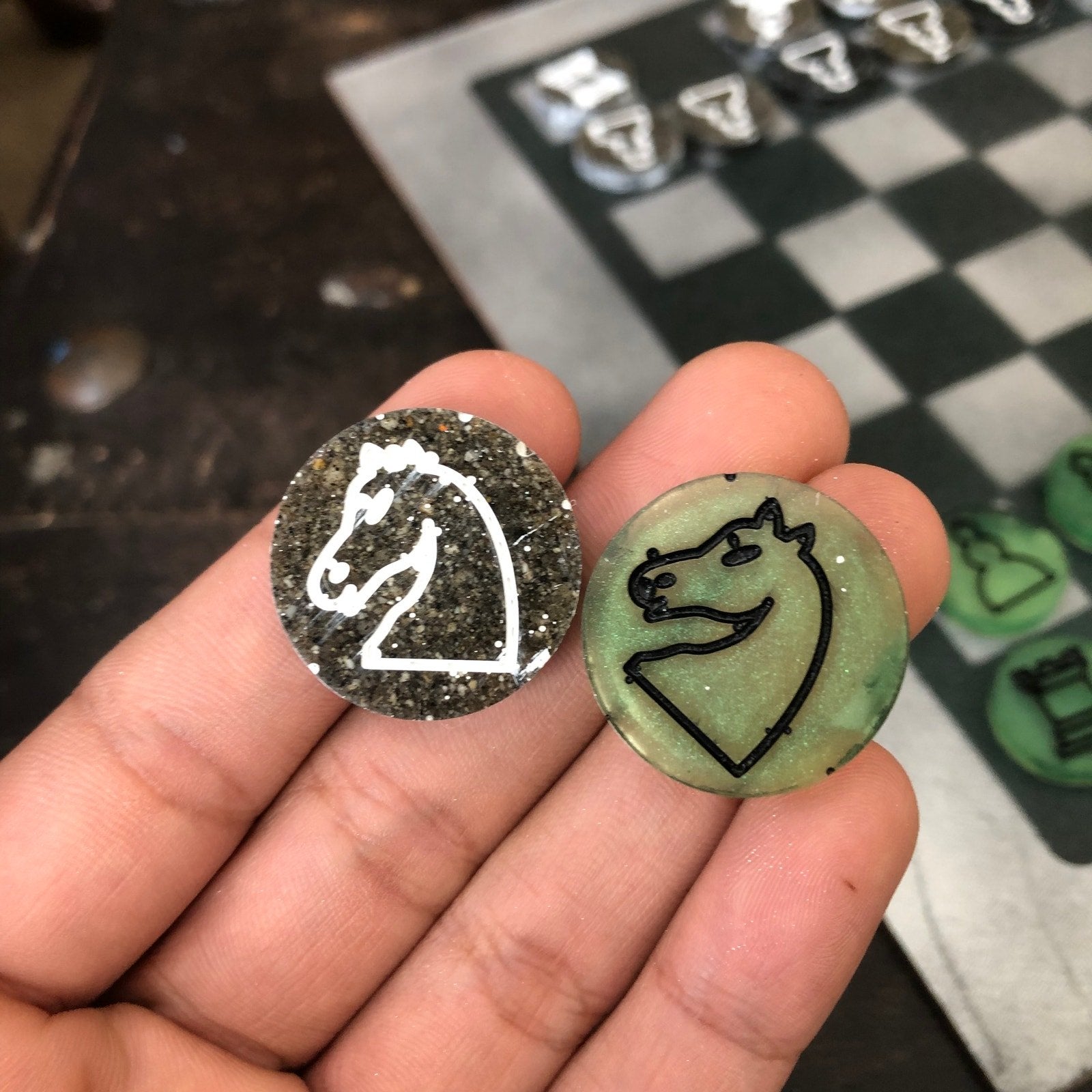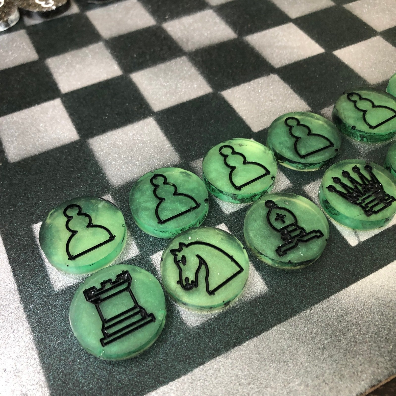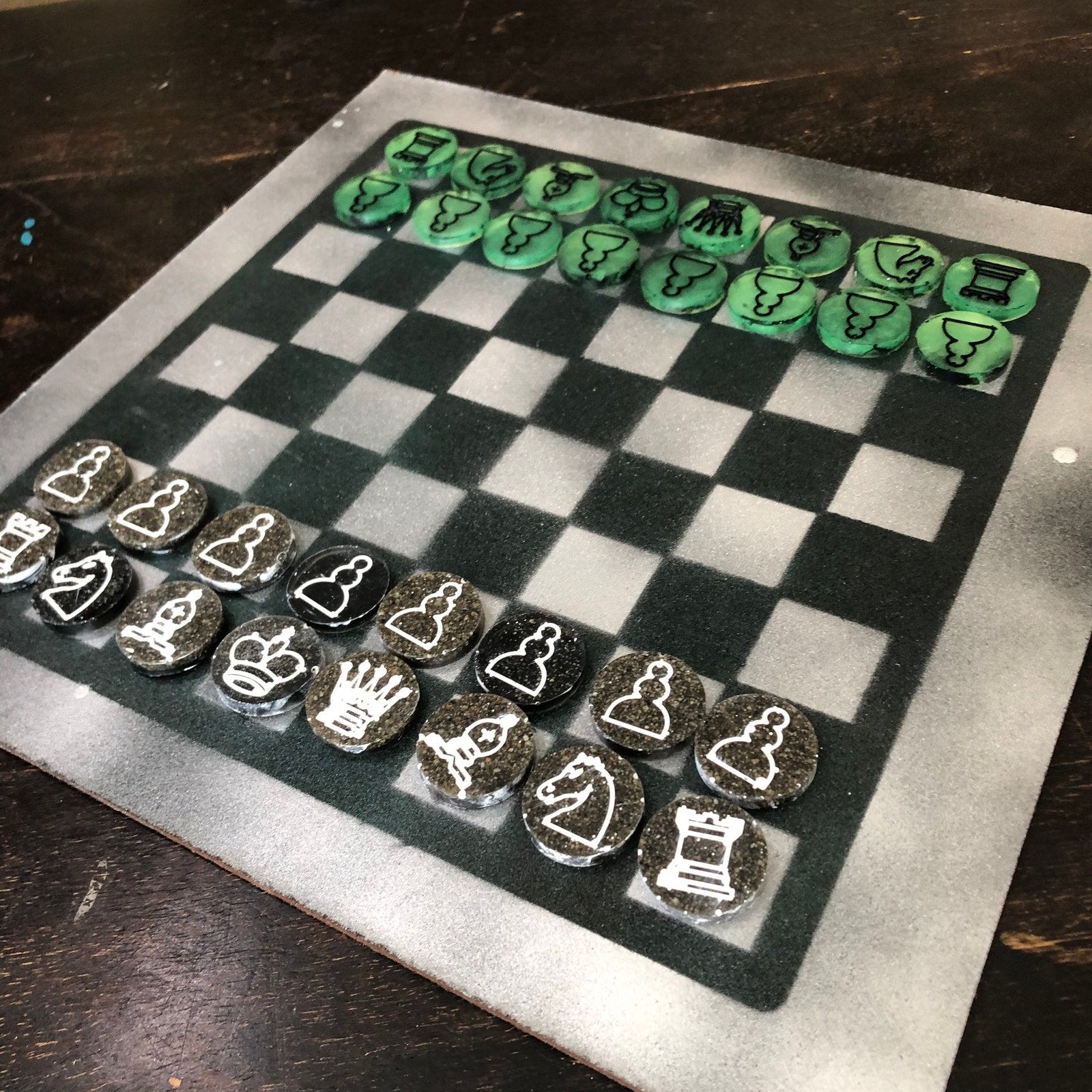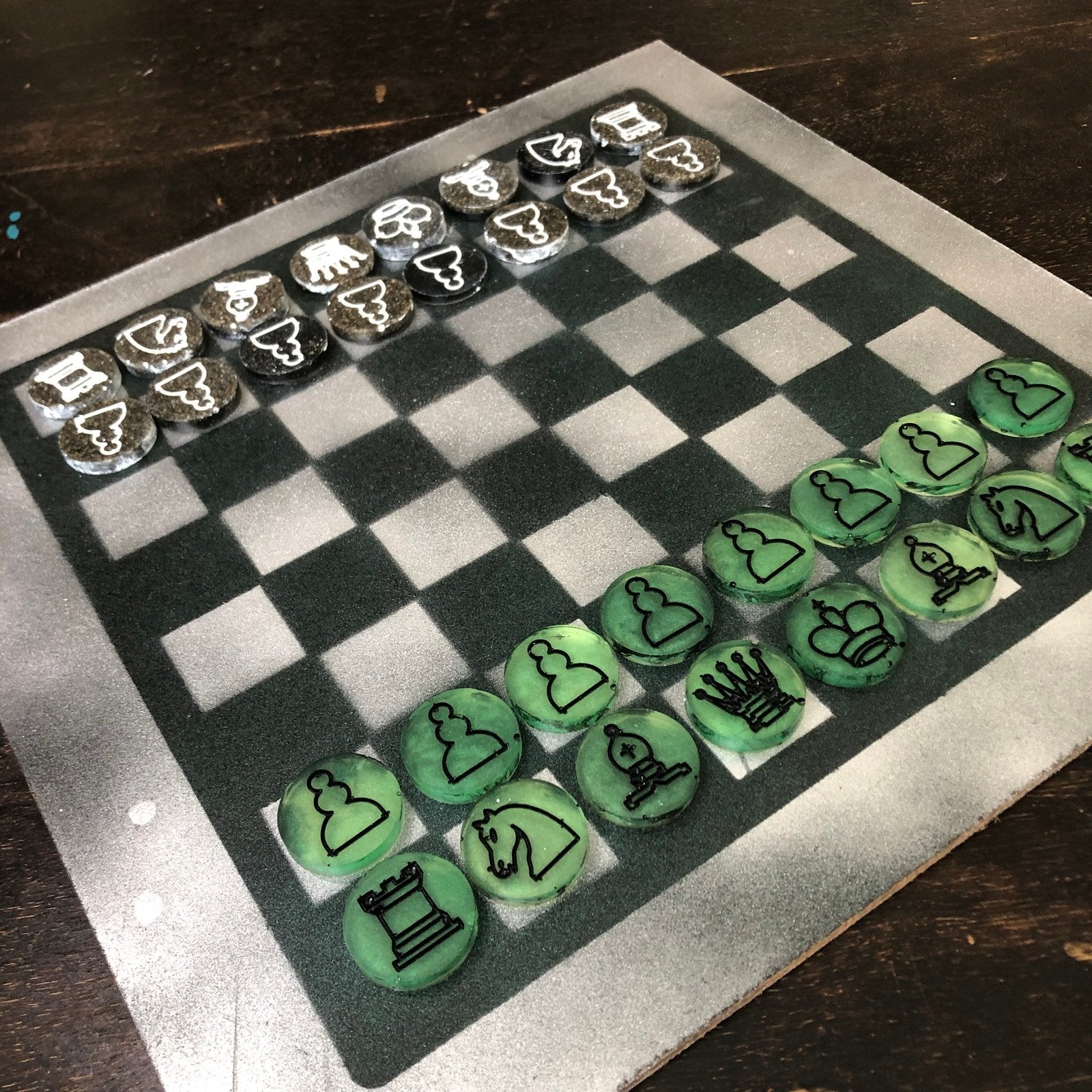 Painted Chess Set - Dirty Green