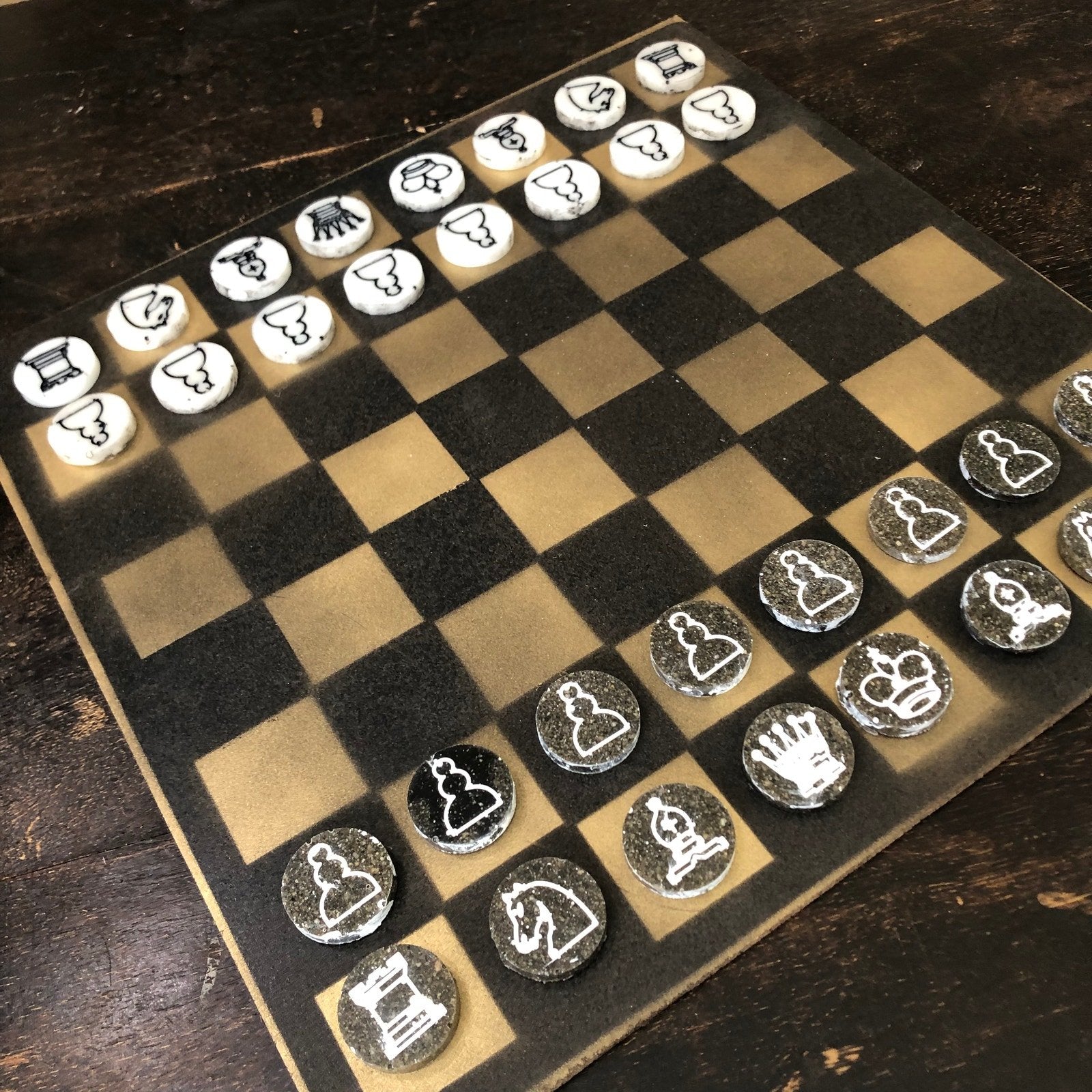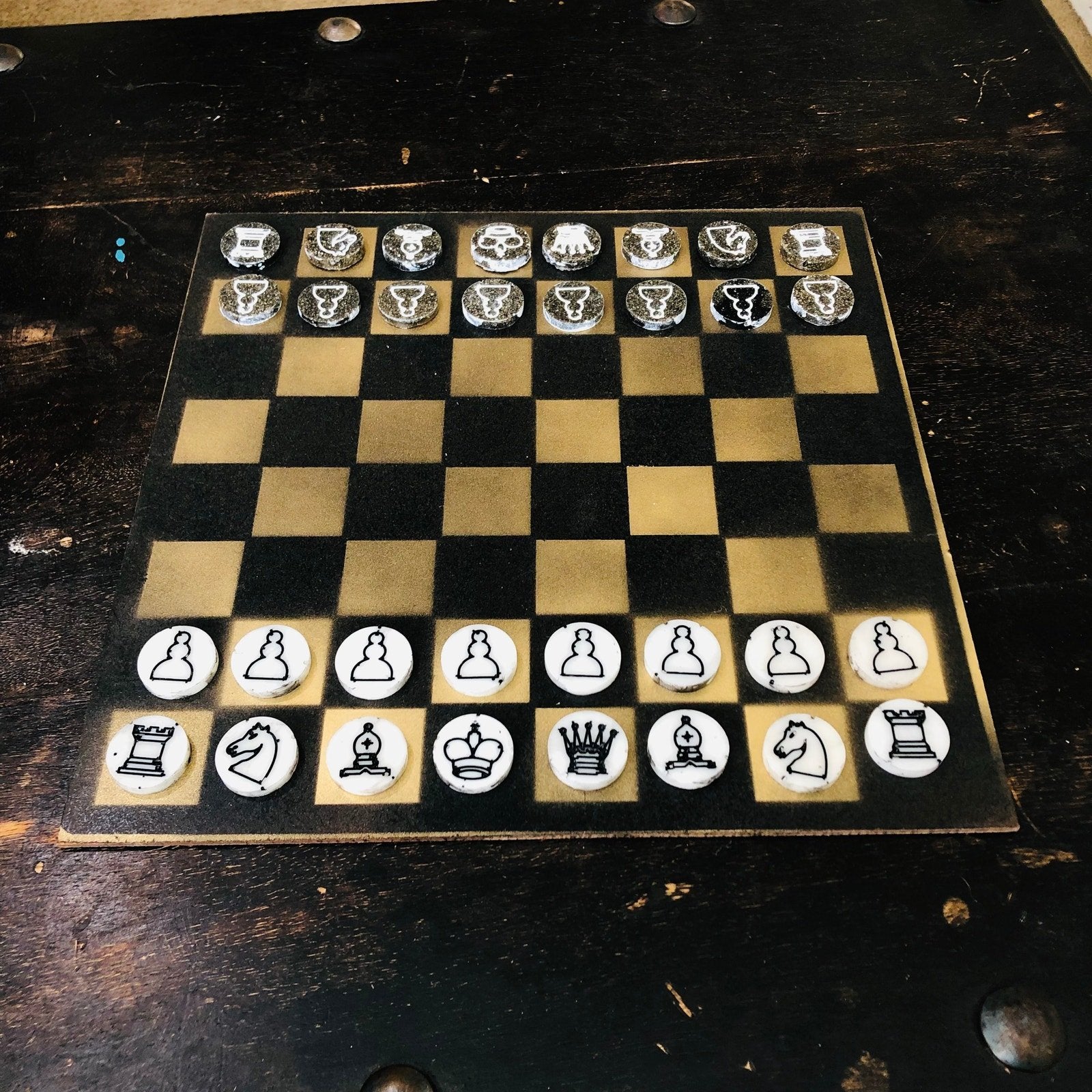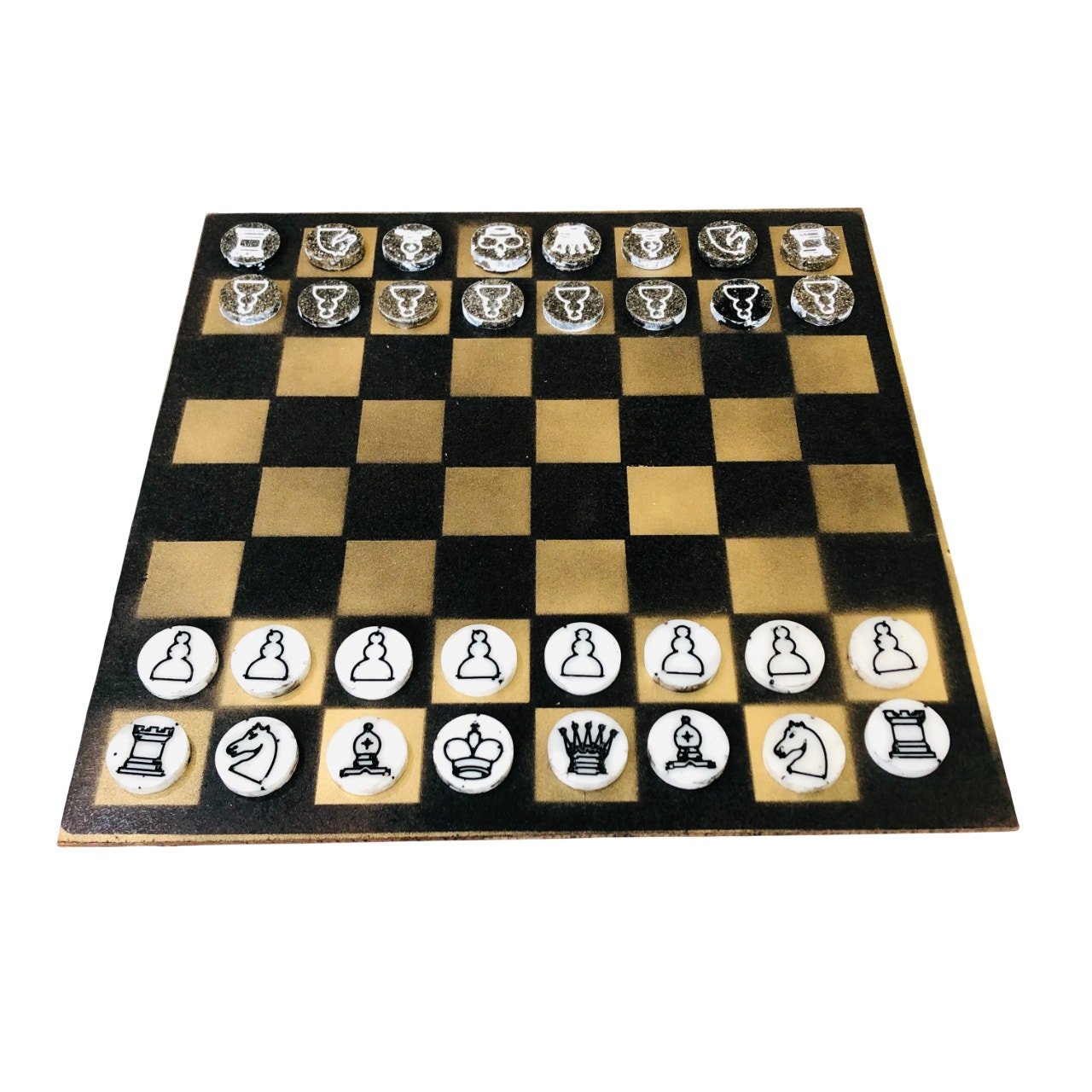 Painted Chess Set - Gold & Black