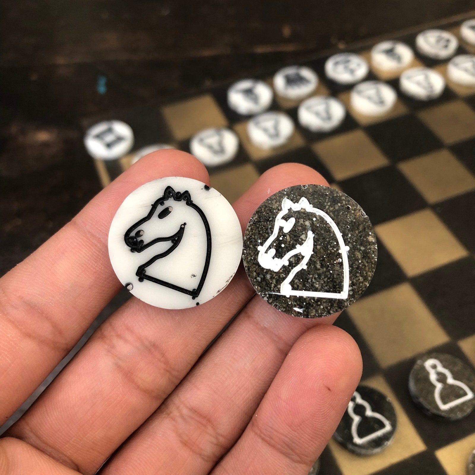 Introducing our exclusive Handcrafted Hardboard Chess Set, meticulously designed with precision and care. Measuring 12 inches by 12 inches, this chess set features a beautifully painted hardwood board that doubles as a work of art. Each set is a unique, one-of-a-kind creation, crafted by hand to ensure that no two sets are alike. Elevate your gaming experience with this exceptional chess set that combines vibrant design with the touch of artisan craftsmanship.